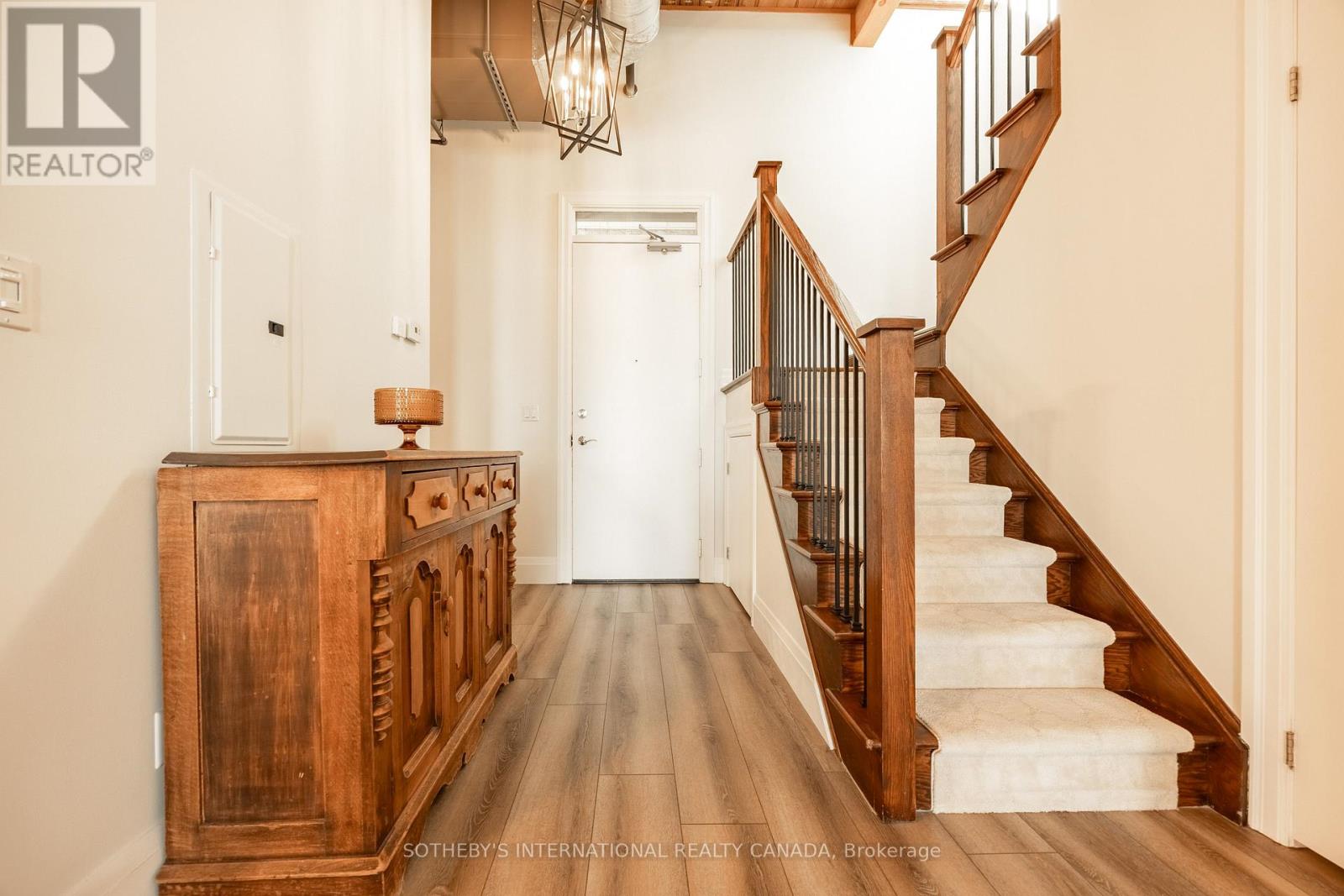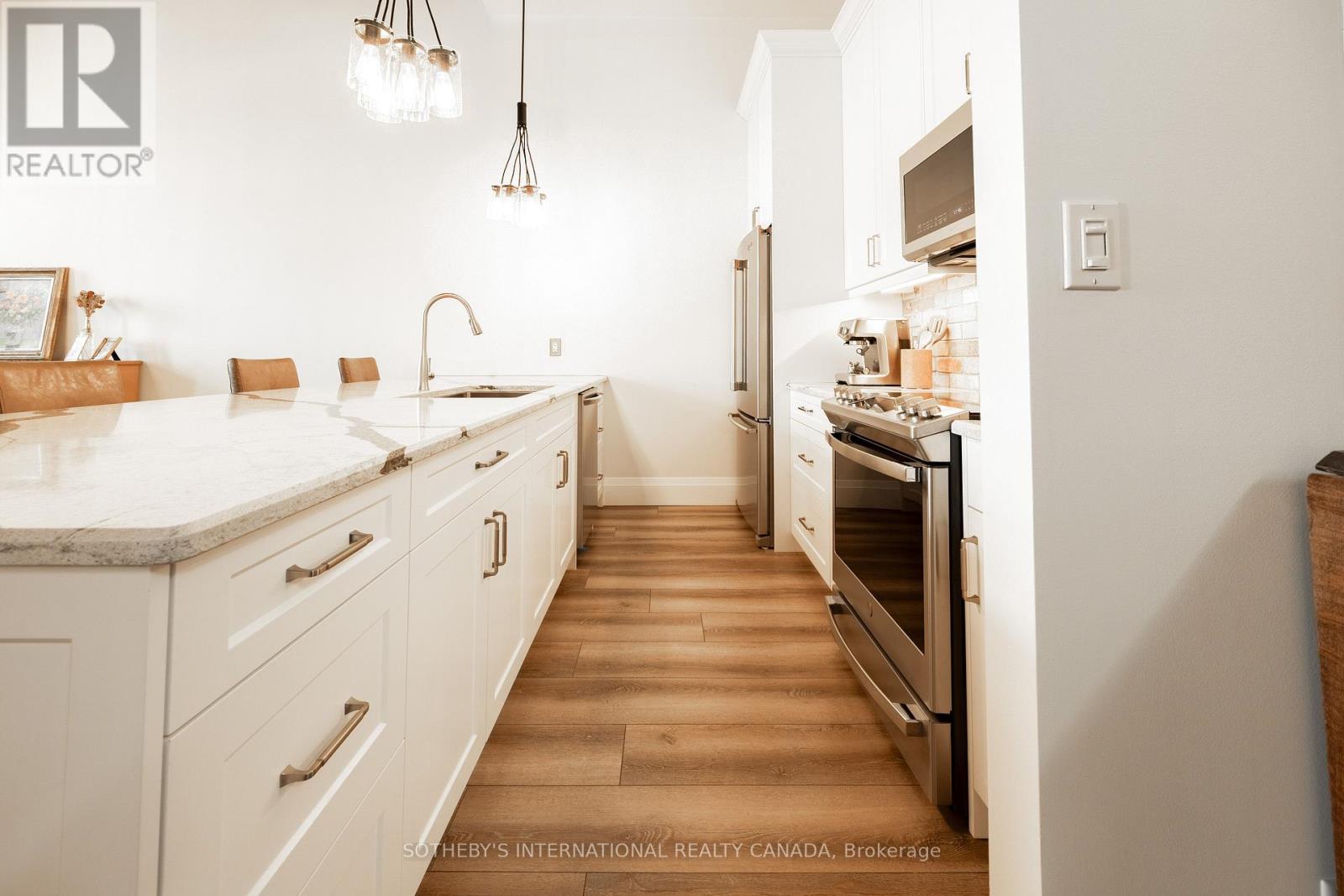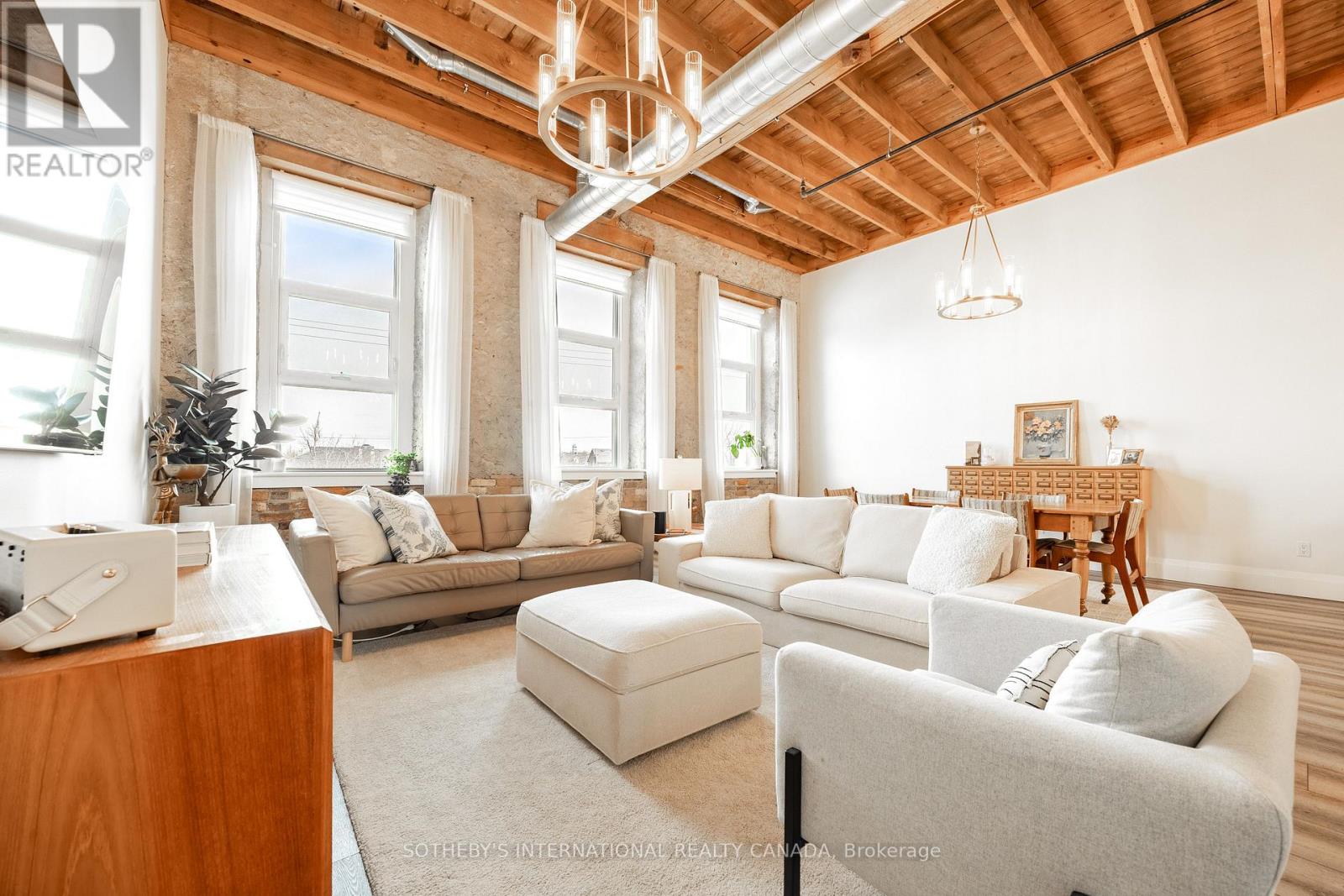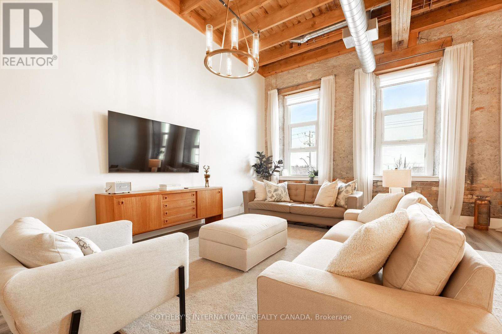 Welcome to 25 Concession Street, Suite 215 in historic Galt of Cambridge. This stunning 1,599 sq. ft. two storey penthouse suite features beautiful large windows, high ceilings, original wood beams, stone walls and exceptional views of the downtown core and riverfront. The open concept main level creates a grand space for the kitchen, dining and living room- perfect entertaining and hosting areas to enjoy with family and friends. The kitchen features Quartz counters, loads of cabinetry for storage and a walk-in pantry. You will also find a two piece powder room and in-suite laundry for your added convenience. The upper level boasts a spacious primary bedroom with extra space for a reading nook and a walk-in closet. Find a secondary bedroom, a full four piece bathroom and den that could work well for an office space or additional living area to complete this floor. This suite offers two side-by-side outdoor parking spaces for you to park your vehicles and walk downtown to the Gaslight District, the Grand River Pedestrian Bridge, and Hamilton Family Theatre, along with the farmers market and charming restaurants and boutiques. Picture perfect views from all rooms, loads of natural light, within a highly desirable location, this suite is completely move-in ready for those who love nearby city amenities. (id:4555)