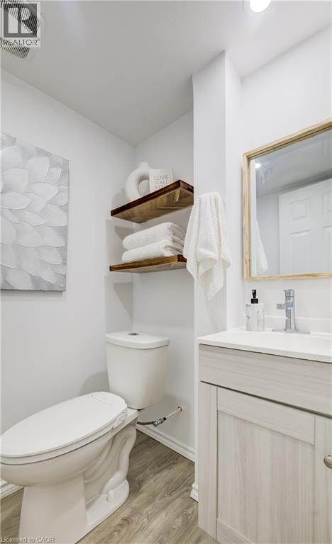 Welcome home to 414 Woods Lane, an elegant and spacious raised bungalow located in a family-friendly neighbourhood, just a short walk to Parkway Public School. With nearly 1900 sqft of finished living space, including a FULLY FINISHED BASEMENT with a SEPARATE ENTRANCE from the garage, this move-in ready home offers excellent flexibility for families or multi-generational living. The main floor includes a bright living room and a beautifully updated eat-in kitchen with quartz countertops, RO system and ceramic backsplash, plus walkout to the back deck (2019) with a gas BBQ line. This level also features 3 bedrooms and a modern 4 piece bath. Neutral decor, large windows and carpet-free living create a bright, welcoming feel throughout the home. The finished basement adds additional living space, including a comfortable family room with a gas fireplace, a 2 piece bath, a potential 4th bedroom or office, and plenty of storage. This home sits on a private lot with NO REAR NEIGHBOURS. Outside you’ll also find a single-car garage with an updated garage door (2018) and driveway, plus a rough-in and slab ready for a hot tub. Notable updates include roof (2018), furnace, air conditioner and water softener (2017), main flooring (2021), basement flooring (2019), windows (2019/2021), pot lighting, two sun tunnels/skylights, along with neutral decor and paint throughout. Located close to parks, walking trails, restaurants, shopping, schools, and public transit. Commuters will appreciate the convenient access to Highway 401, just a 5 min drive away! (id:4555)