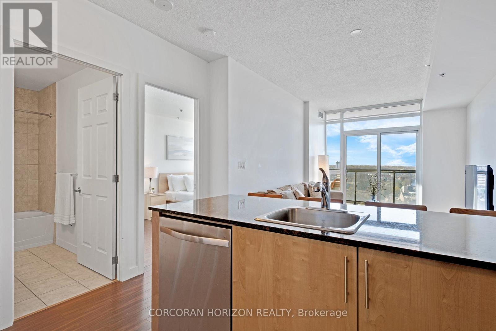 Welcome to Unit 904 at 150 Water Street - where modern comfort meets stunning riverside living. This beautifully designed 1-bedroom, 1-bathroom condo offers breathtaking, unobstructed views of the Grand River and downtown Cambridge right from your private balcony. Step inside to a bright and spacious living area featuring floor-to-ceiling windows that flood the space with natural light and provide seamless access to your balcony, perfect for relaxing or entertaining while enjoying the scenic surroundings. The contemporary kitchen is equipped with stainless steel appliances and a stylish peninsula with bar seating, ideal for casual dining or hosting guests. This unit includes one parking space and a locker for added convenience. Residents enjoy access to premium building amenities, including a fully equipped gym, party room, guest accommodations, and an outdoor terrace complete with BBQ facilities. Perfectly located right along the Grand River, you're just steps from picturesque walking trails, as well as a vibrant selection of restaurants, cafés, and shopping. Experience the best of riverside living in this exceptional condo. (id:4555)