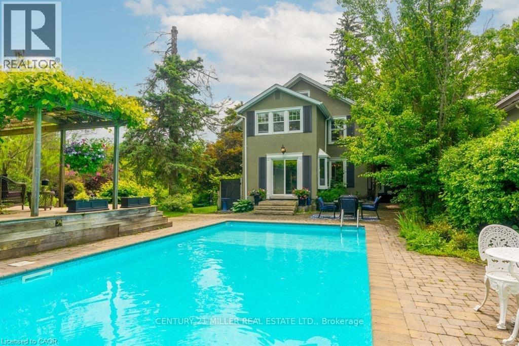 Discover the charm of small-town living in this beautiful home, perfectly situated in a cozy community known for its delightful cafés and restaurants. Imagine starting your mornings with a leisurely walk to pick up freshly baked croissants-famous for being some of the best in all of Ontario.Outdoor enthusiasts will love being just five minutes from stunning conservation areas such as Hilton Falls, Crawford Lake, Mountsberg, and Mount Nemo, offering endless hiking adventures. In winter, Glen Eden is only a 10-minute drive away, with ski hills and lifts that rival Blue Mountain and Horseshoe Resort.In summer, relax by your own swimming pool in a private backyard filled with flowers and tall pine trees. Springtime brings a carpet of blooming daffodils that brighten the garden like thousands of little suns. A charming koi pond with a gentle waterfall, along with fragrant roses and hydrangeas, creates a peaceful, almost magical oasis.Inside, the home features hardwood floors throughout, abundant windows, and multiple inviting sitting areas where you can unwind and enjoy the day. It feels like a countryside cottage-yet you're only minutes from major routes like the 401, Guelph Line, and Highway 6, giving you a quick and easy commute: Toronto in 40 minutes, Niagara-on-the-Lake in 1 hour, Kitchener in 30 minutes.Don't miss your chance to own this rare gem where nature, comfort, and convenience come together in perfect harmony. 2025 Upgrades: full external basement waterproofing, sump-pump installed, hydro service upgrade to 200A with new panel, knob-and-tube replacement with grounded wiring & AFCI, 20kW gas generator & transfer switch, Tesla charger, external outlets, new ELFs, water canister with flow pump, reverse osmosis water treatment, second floor hardwood floors, stairs & crown moldings, vanity in first-floor bathroom, new electric stove, three walk-in closets, hand-painted ceramic light-switch plates. (id:4555)