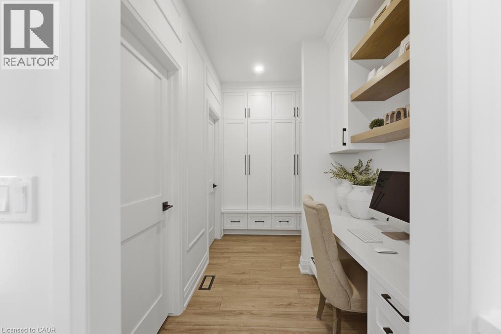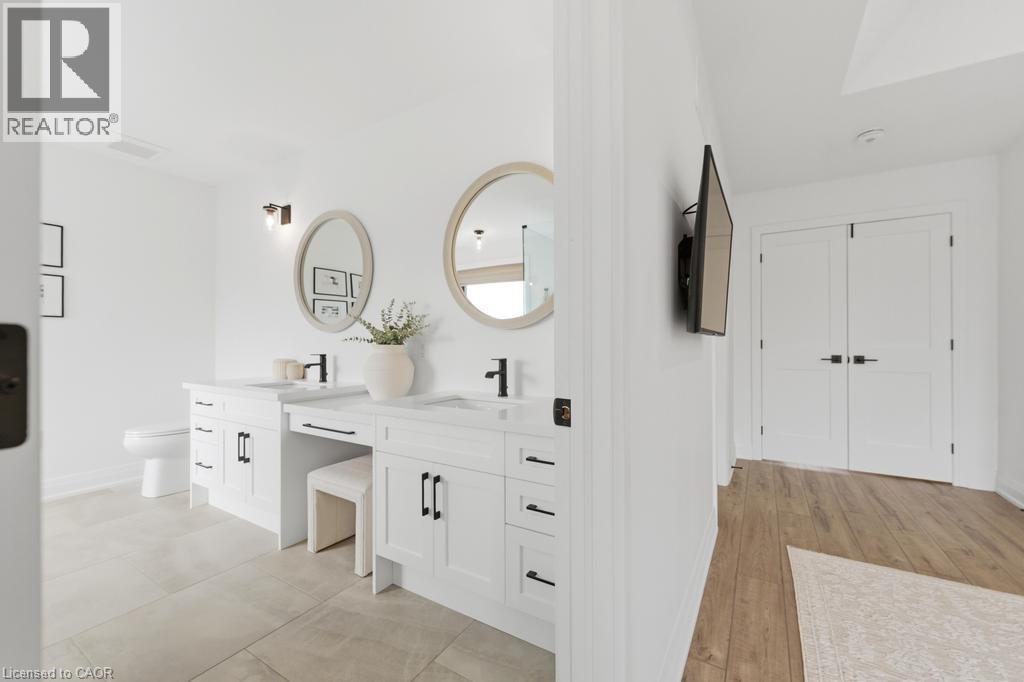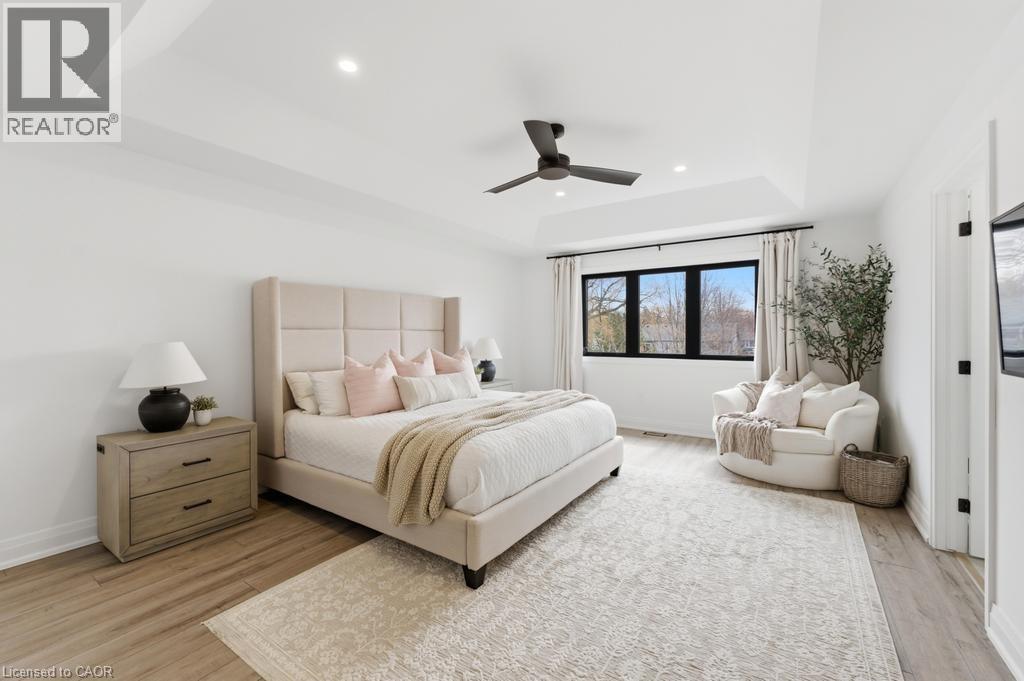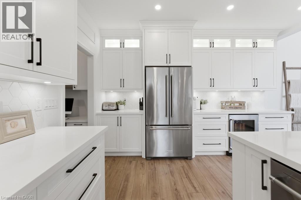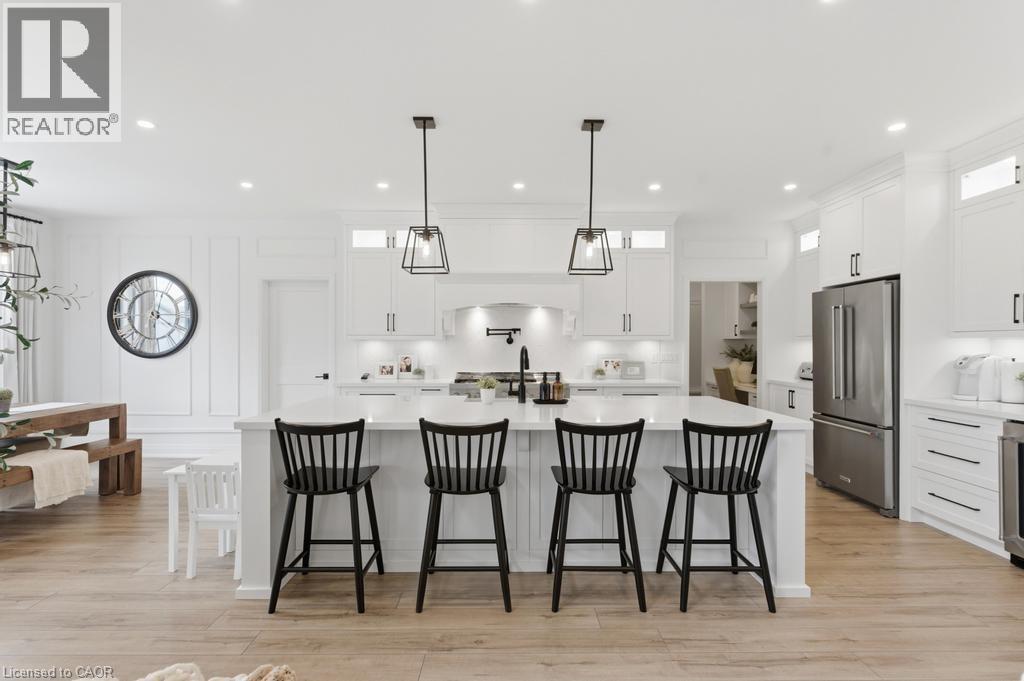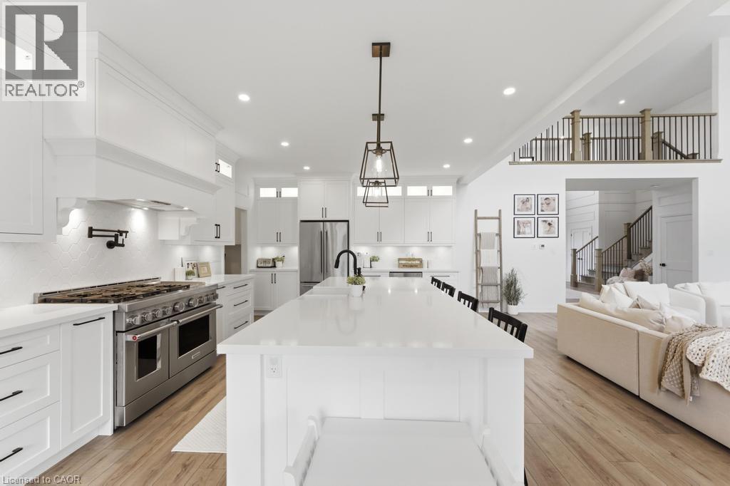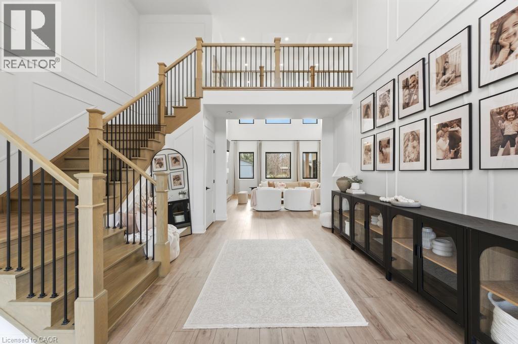 Welcome to this exceptional modern farmhouse masterpiece nestled on a quiet cul-de-sac in one of Campden Estates’ most desirable communities. Thoughtfully designed with luxury finishes and timeless architectural details, this stunning home offers the perfect blend of elegance, comfort, and everyday functionality. Step inside to an impressive open-concept layout where natural light pours through expansive windows, highlighting coffered ceilings, custom millwork, and a soaring stone fireplace that anchors the main living space. The designer kitchen is truly the heart of the home, featuring a large centre island, sleek appliances, walk-in pantry, and abundant cabinetry—ideal for both entertaining and busy family living. The seamless flow into the dining area creates the perfect setting for gatherings, with direct access to the outdoor patio for effortless indoor-outdoor living. Upstairs, a striking catwalk overlooks the main level and leads to spacious bedrooms, each complete with built-in closets. The primary retreat feels like a private escape, featuring French door entry, a spa-inspired ensuite, and generous walk-in closet space designed for comfort and relaxation. Convenient upper-level laundry with additional storage and utility sink adds everyday practicality. Outside, the beautifully landscaped yard offers multiple spaces to relax or entertain—from lively gatherings on the finished patio to peaceful evenings in a private setting. A triple garage and ample parking complete this impressive property. Offering over 3,000 sq ft of thoughtfully crafted living space with luxury finishes throughout, this home delivers refined living in a family-friendly neighbourhood just minutes from local amenities, wineries, and scenic Niagara countryside. Experience the perfect balance of modern design and timeless charm welcome home. (id:4555)