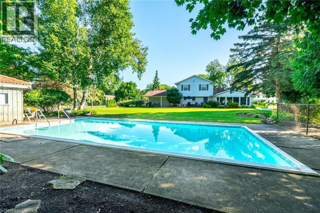 Exceptional Opportunity in the Highly Sought-After Flamborough Hills Community! Nestled on a private half-acre lot, this charming home offers an incredible blend of space, comfort, and style, perfect for family living. Step outside and discover your own personal retreat — a sparkling in-ground pool surrounded by plenty of room for entertaining, all set against a peaceful, private backdrop. Inside, a classic floor plan features a sun-filled living room, perfect for relaxed gatherings. The spacious family room is anchored by a cozy gas fireplace and highlighted by gorgeous beamed ceilings, adding character and warmth. The bright and airy sunroom provides a serene spot to enjoy your morning coffee or unwind while taking in breathtaking sunsets. Upstairs, you'll find three well-sized bedrooms, including a primary suite complete with a private ensuite bathroom. The lower level presents an exciting opportunity to customize and expand, offering potential for additional living space. Conveniently located close to schools, libraries, shopping, and major highways, this home is both private and central. With so much to offer, it’s the perfect blend of value, space, and lifestyle. Don’t miss out — this one won’t last long! Let’s make this house your new home! (id:4555)