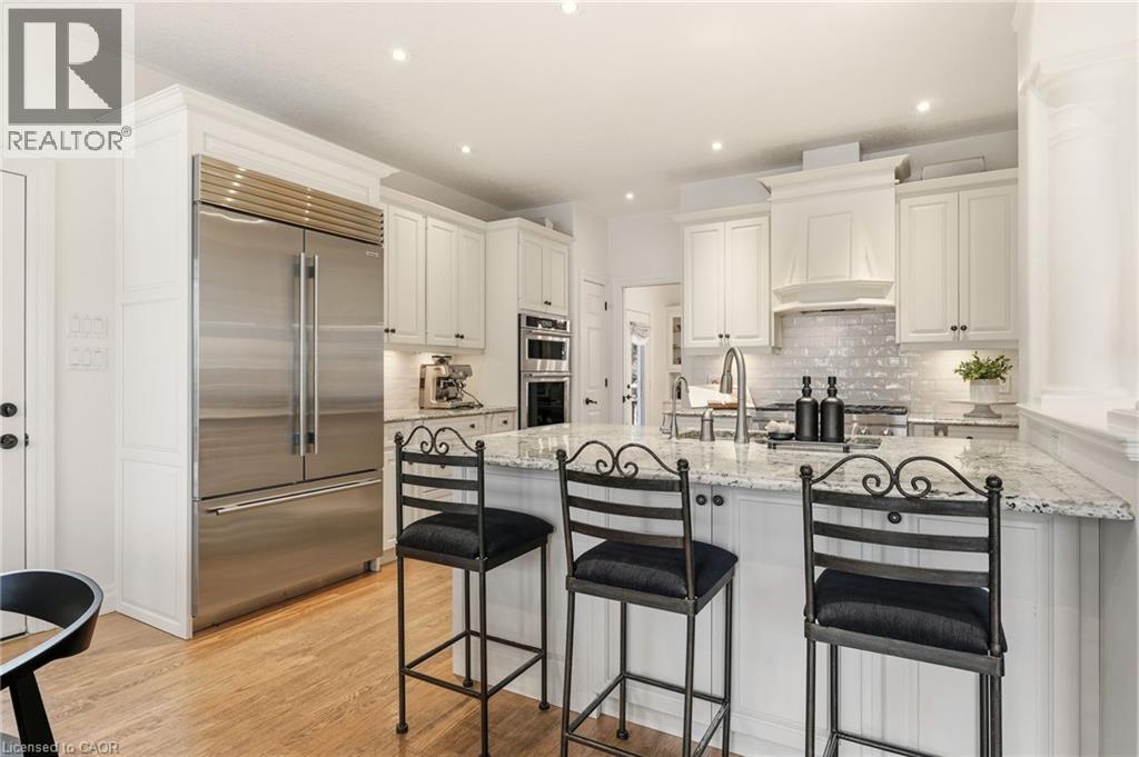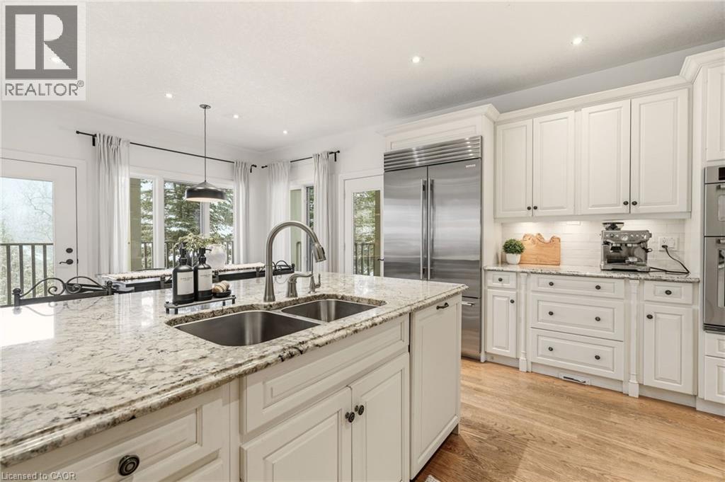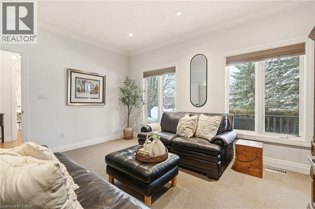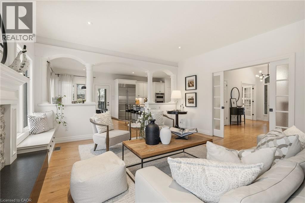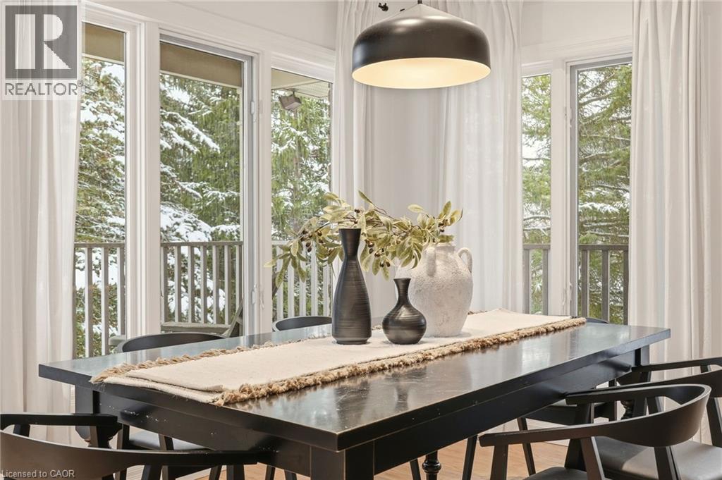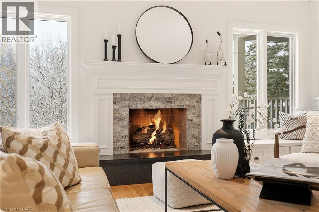 Stately bungaloft located at the end of a quiet cul-de-sac in sought-after Palomino Estates. This well-designed home offers a main-floor primary suite, a bright family room with a fireplace, and a kitchen and dining area overlooking the wrap-around porch and private natural surroundings. Large windows throughout provide excellent light and views of the property. The full walkout lower level adds valuable living space with a self-contained nanny/in-law suite, an additional bedroom, a full bathroom, and a dedicated theatre room. Ideal for multi-generational living or extended stays. The backyard is a standout feature, designed for both relaxation and entertaining. Enjoy a saltwater pool, hot tub, covered pavilion with a gas fireplace and TV, outdoor kitchen, fire pit area, and generous green space. Backing onto conservation land, the setting offers exceptional privacy and a peaceful connection to nature. Located minutes from Waterdown, Burlington, schools, golf courses, hiking trails, Glen Eden, and major highways. A rare opportunity to enjoy country living with convenient access to nearby amenities and recreation. Let's get you home! (id:4555)