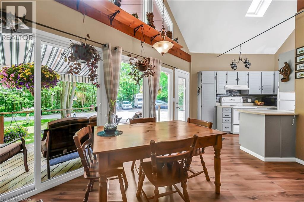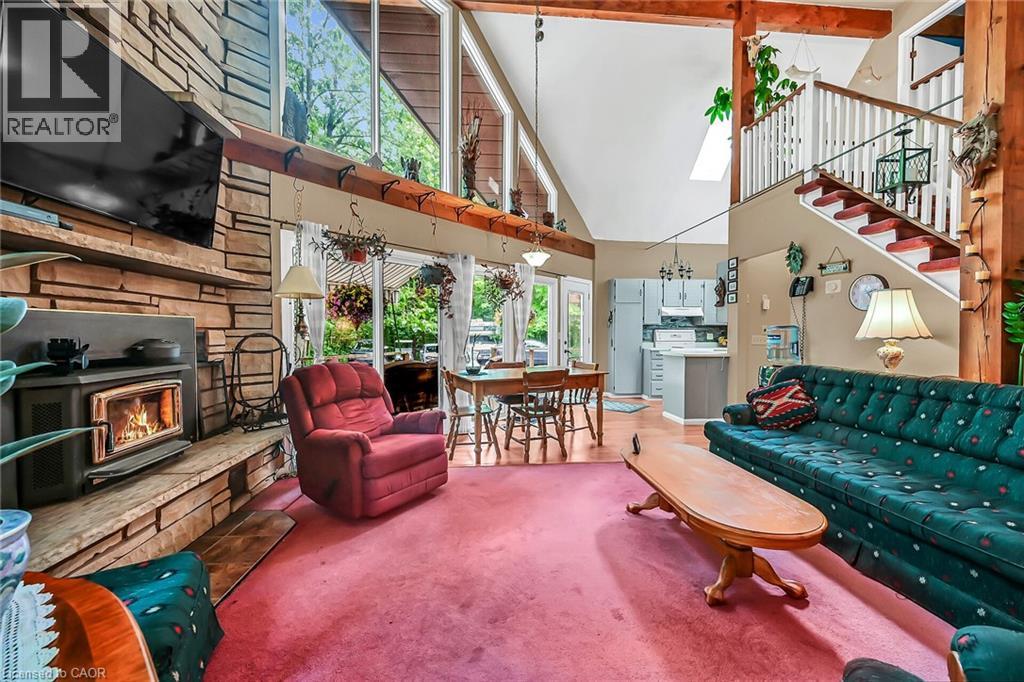 This picturesque property is a true retreat from city life. Experience natural privacy as you enter the winding driveway leading to a secluded 1-acre property that is frequented by deer, wild turkeys, rabbits, squirrels and various bird species. The sturdy chalet construction, with its harmonious blend of natural wood, angel-stone and expansive windows, invites the outdoors inside, creating an atmosphere that is both elegant and inviting. For hobbyists and mechanics, the property features a 24’x36’ heated 3-car garage/workshop and a 10’x15’ storage shed. The open concept main floor is highlighted by a soaring cathedral ceiling, a kitchen w/skylight and ample cabinetry, a dining area with garden door access to a wrap-around deck with awning, a sun-filled great rm w/sliding patio doors, and a 2-sided wood fireplace for both indoor and outdoor enjoyment. There are 2 spacious main floor bedrooms and a 4pc bath with cedar accent wall and an exterior door for bathroom access from the deck. The 2nd floor contains a primary 3rd bedroom, plus a home office area. The upper floor includes a potential 4th bedrm. The partially finished basement houses the laundry/utility rm and provides ample storage space. Notable amenities include a propane furnace, c/air, 15,000-gal cistern, septic system, and 200-amp hydro. Situated on a paved year- round road in a tranquil setting surrounded by a serene forest, vibrant perennial gardens, landscaped grounds, and a large driveway ideal for parking multiple vehicles and a boat/RV. This property appeals to outdoor enthusiasts and offers a cottage-like ambiance. You will be delighted by the 4-season beauty this property offers. Conveniently located near Cayuga and Dunnville, 30-60 min commutes to Hamilton and Niagara. With all the benefits of rural living and the convenience of nearby towns, 35 Little Rd, Cayuga, truly stands apart as a sanctuary where cherished memories are just waiting to be made. (id:4555)