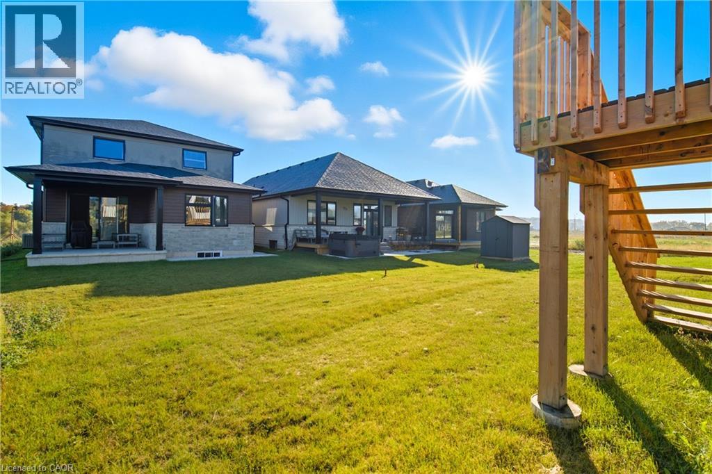 Welcome to this beautifully crafted custom bungalow, where quality construction and thoughtful design shine throughout. Offering nearly 3,000 sq. ft. of finished living space, this home combines comfort and elegance in every detail. The main level features a bright, open-concept layout centered around a stunning floor-to-ceiling fireplace, perfect for cozy evenings. The modern kitchen includes a large island, upgraded white cabinetry, and walkout access to an elevated deck overlooking the picturesque backyard. The primary suite provides a true sense of retreat with a walk-in closet and luxurious ensuite complete with a soaker tub and glass shower. The fully finished lower level adds incredible versatility with a private in-law suite featuring high ceilings, oversized windows, a stylish kitchen, spacious bedroom, and full bathroom — ideal for multi-generational living or guests. Set in a peaceful area near the Grand River and Taquanyah Conservation Area, this property offers a perfect balance of tranquility and convenience, surrounded by nature and outdoor recreation. A must-see for those seeking space, style, and serenity all in one beautiful home! (id:4555)