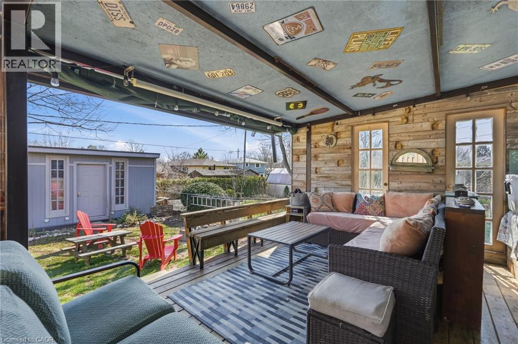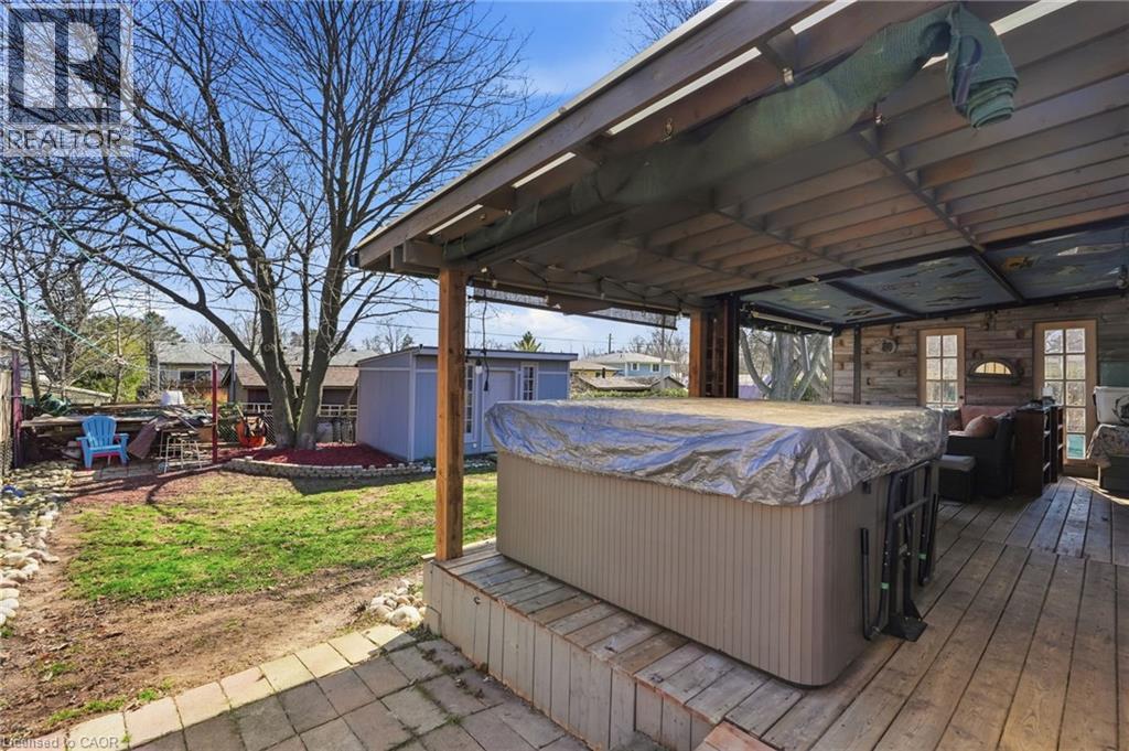 Welcome home to one of Cayuga's most sought after neighbourhoods! Nestled along a quiet, family friendly street, you'll find the one you've been waiting for. This 4 level backsplit is value packed! 4 bedrooms, 2 full bathrooms, tastefully updated galley kitchen featuring granite countertops, 10mm thick granite flooring, tile backsplash, modern cabinetry, beautiful stainless steel appliances and a chef's dream 6 burner gas stove! The added coffee/adult beverage bar offers great storage and is the perfect extension to this stylish kitchen. The open concept living/dining room combo has hardwood flooring throughout, and a very large floor to ceiling bay window, allowing the natural light to flood in. The garage has been partitioned into a storage room in the front, and a mud room in the back, with access to the back yard, over and above the patio doors off of the dining area. A new modern hand railing compliments the surrounding wood accents. 3 sizeable bedrooms with closets and a fully updated 3 piece bathroom wraps up the upper level. The fully finished lower level features an additional updated(2026) 3 piece bathroom with a nostalgic claw foot tub. Snuggle up in the cozy rec room boasting a brick fireplace and 4 year old gas insert. This level offers a 4th bedroom (currently an office). In the basement, you'll find ample storage or even potential to finish additional living space! Furnace and a/c 2 years old, metal roof (2014). The back yard comes fully fenced, and presents a unique extension of living space in the form of a private and sheltered entertaining area with a 2020 6 seater hot tub!! The backyard also offers a 16x10 shed with a steel roof. Parking for 4 cars in the paved driveway! Enjoy your Summer exploring the riverside community! Minutes to the waterfront! 35 minutes to Hamilton! Don't wait! (id:4555)