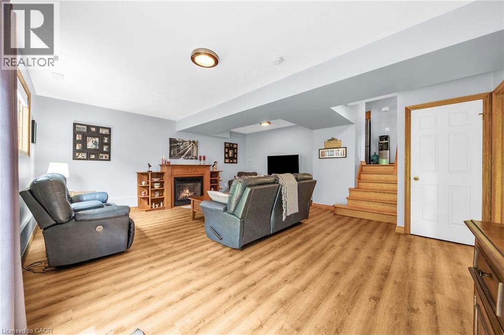 Experience small town Ontario living in this well maintained, tastefully presented, carpet free 4 level back-split fronting on quiet mature, tree-lined street - located in popular neighborhood in Cayuga’s preferred south quadrant. Walking distance to schools, churches, newer arena/walking track complex, ball park, downtown shops/eateries, boat launch & beautiful parks dotting the Grand River shoreline - 30 mins commute to Hamilton, Brantford & 403. Positioned proudly on 0.18ac (59x132) landscaped treed lot is 1994 quality built brick/sided home incs 3 finished levels + unspoiled lowest floor. Welcoming x-wide foyer foyer introduces over 2,000sf of beautifully presented living area ftrs bright living room enjoying street facing picture window, updated oak kitchen sporting convenient island, granite countertops, tile backsplash, newer SS appliances & adjacent dining area. Oak stairs ascend to 3 bedroom upper level ftrs chicly designed 5pc bath-2021 boasting quartz top double sink vanity. Relax or entertain in inviting confines of mid-level family room enhanced w/ambience of n/g fireplace incs garden door walk-out to 12x12 paver stone patio enhanced w/stylish wood pergola - continues w/4th bedroom & tastefully remodelled 3pc bath-2018. Need more space - hi/dry lowest level is ready & waiting for personal finish - requiring minimal monies to renovate & increase living area - currently housing n/g furnace-2018 equipped w/new AC-2024, remaining mechanicals & laundry station. Premium low maintenance flooring compliment the interior's neutral décor w/distinct flair. Paved double driveway, stylish brick frontal façade, paver stone walk-way/front landing & new eaves/gutter guards in 2025 enhance street appeal. Discover GRAND Living - Cayuga Style! (id:4555)
