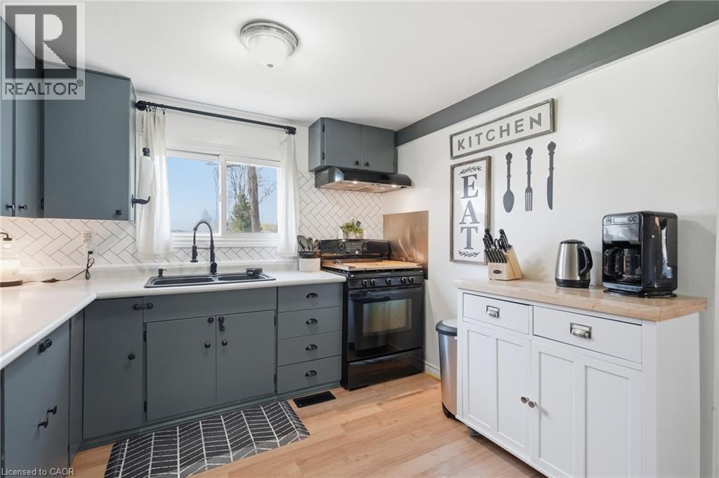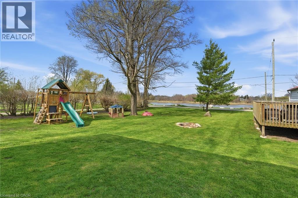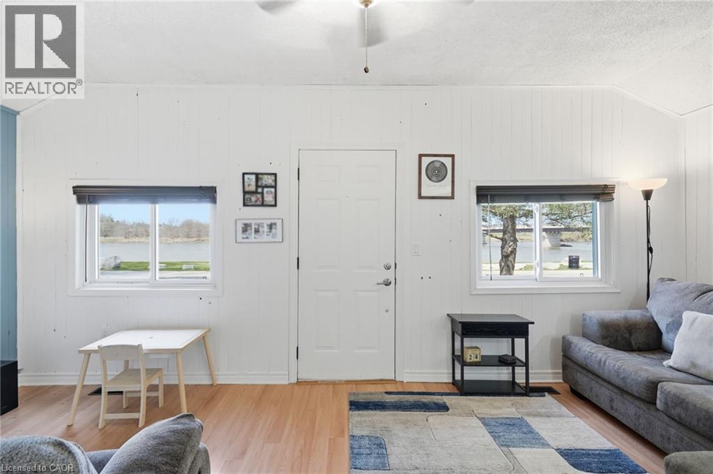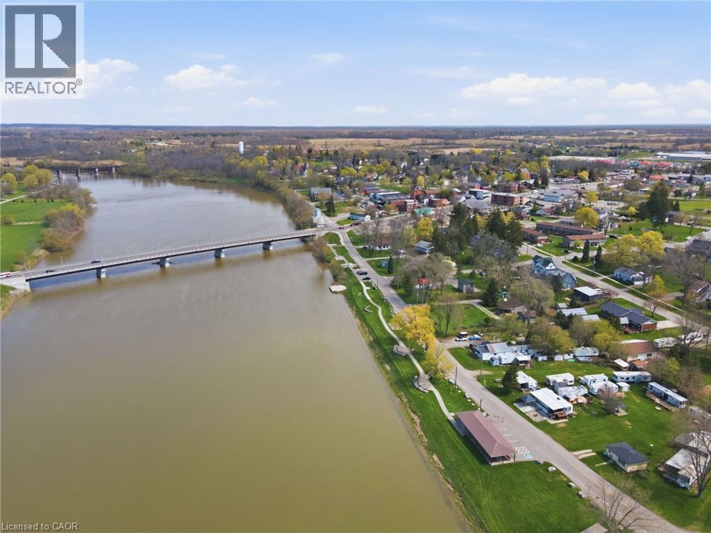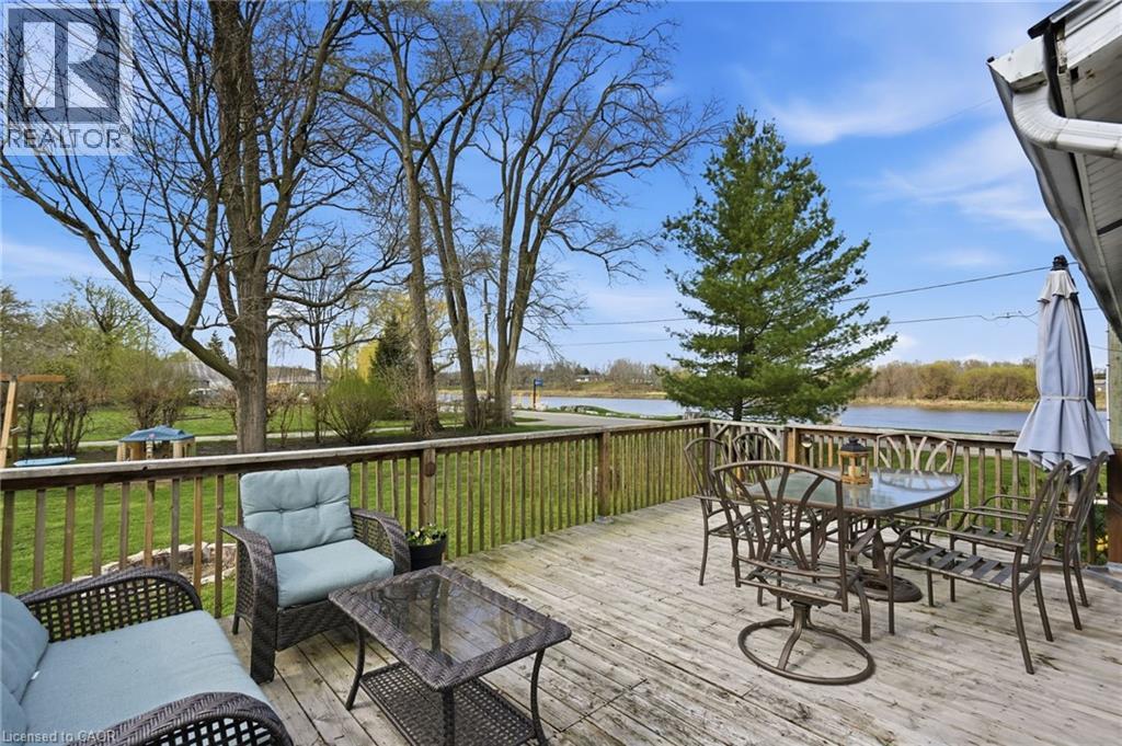 LOCATION, LOCATION, LOCATION! Rare opportunity to own this quaint and lovingly maintained, 2 bedroom bungalow on an immaculately kept oversized lot, featuring a 20x25 detached garage with loft storage and the prettiest, unobstructed views of the Grand River!! Big bonus is municpal services!! The wrap around deck is utilized as an extension of living space all Summer long. Updates include bright 4 piece bathroom, a/c 3 year old, garage roof (2024), refinished kitchen cabinetry and new countertops + sink. Expansive gravel driveway with ample parking. Entertainers dream property with towering trees and the Grand River breeze. Attractively priced, this property has endless potential for first time home buyers, retirees, starter families or even investors! Walking distance to parks, schools, boat launch, trails, great dining options, and the heart of Cayuga. (id:4555)