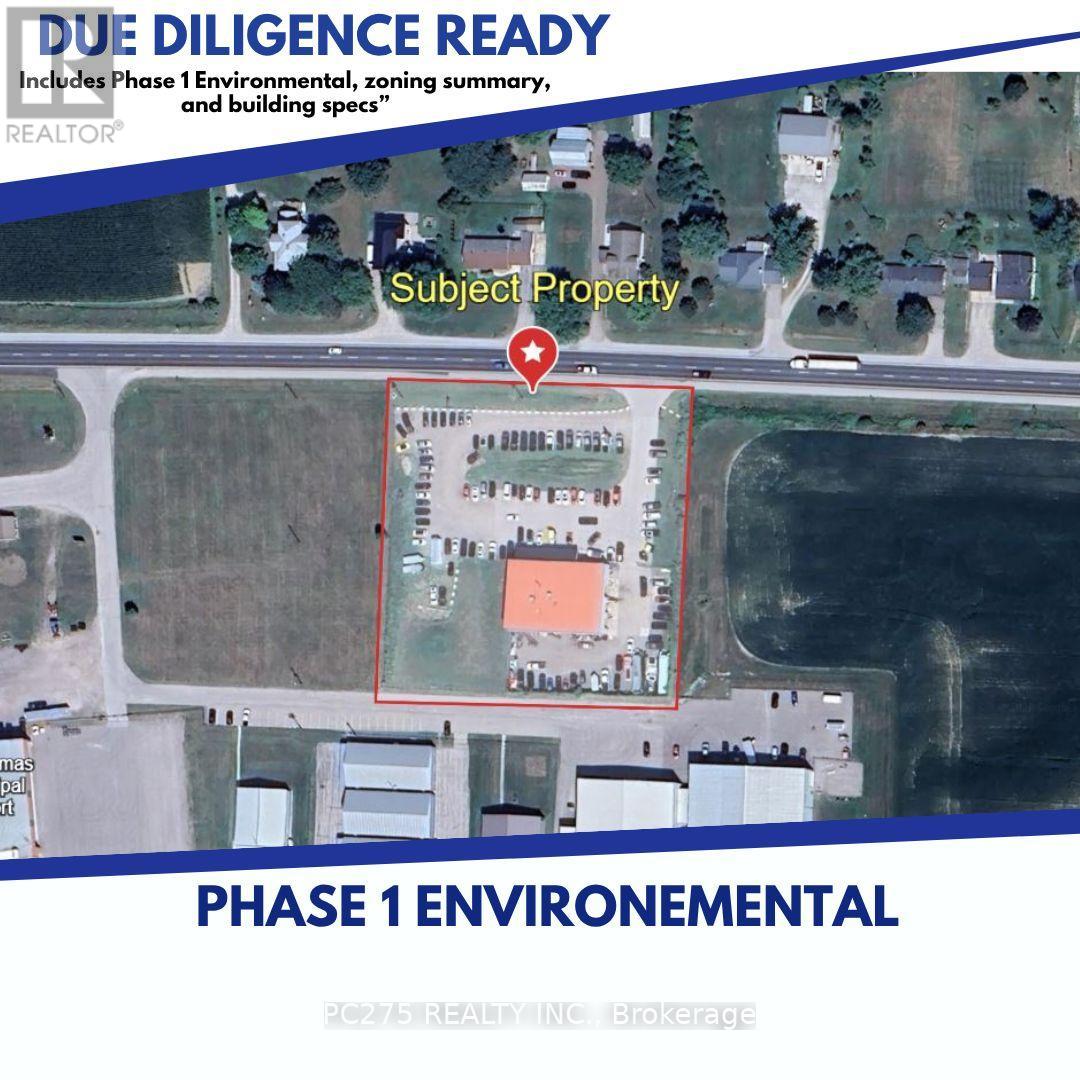 Positioned in the path of one of Canada's largest industrial expansions, this 7,450 sq ft freestanding commercial building on over 2 acres offers a rare opportunity to establish a foothold in the rapidly emerging Southwest Ontario supply chain corridor. Located directly on Talbot Line (Hwy 3), adjacent to the St. Thomas Municipal Airport employment lands, and minutes from the new Volkswagen PowerCo battery plant: a $7 billion development projected to reshape the regional economy. The 2004-built structure is currently configured as a modern automotive facility with multiple drive-in and grade-level bay access points, showroom and office space, and a large service area with mezzanine. The true value lies in its flexibility. C1-19 zoning permits a wide range of commercial and employment uses, making this property ideal for repositioning into a logistics hub, contractor base, parts distribution centre, or light industrial support facility. The expansive lot supports outdoor storage, fleet parking, and future site adaptation - an increasingly scarce feature this close to a major employment growth node. For operators and investors looking to establish early presence ahead of full market maturation, opportunities like this are limited. Full due diligence package available including Phase 1 Environmental, zoning details, and building specifications. (id:4555)