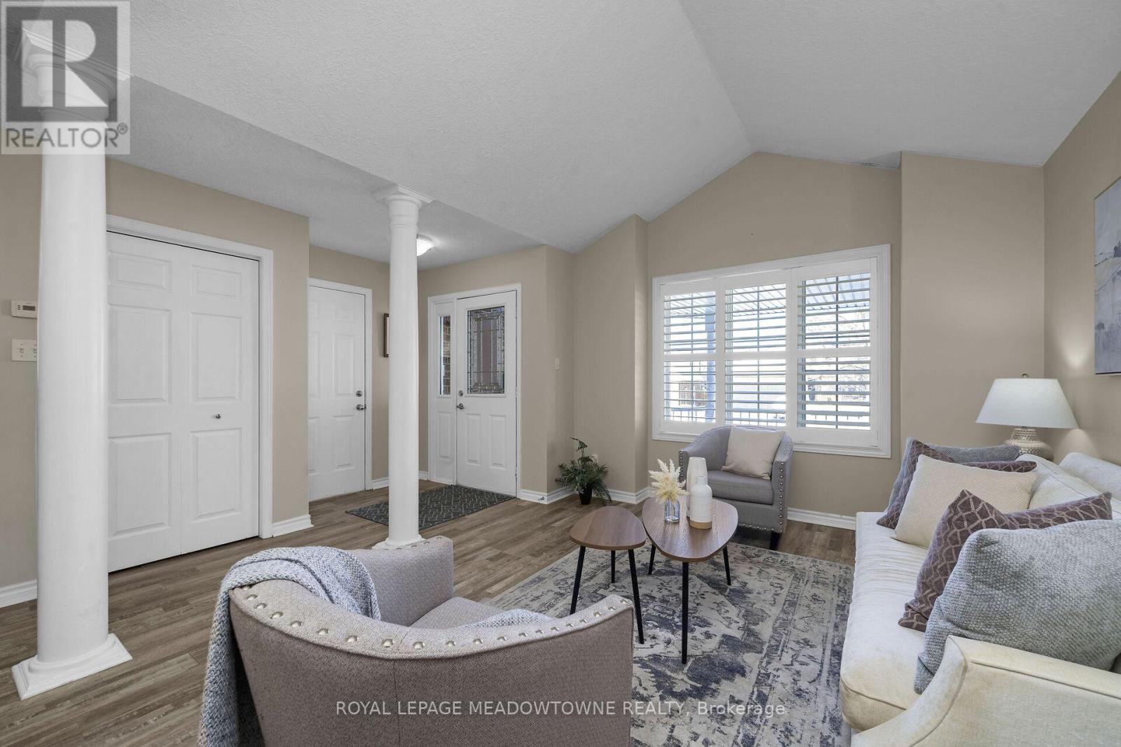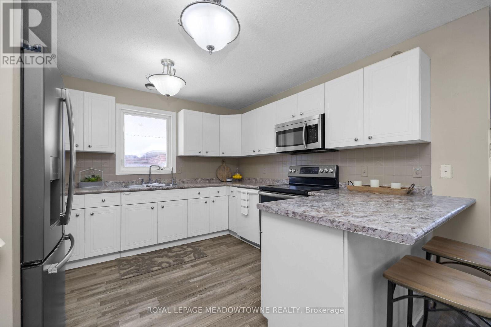 Regardless of whether you are young or young at heart, this wonderful home offers far more than a place to live, it offers a truly exceptional lifestyle in Elora. Situated on a quiet, child and pet friendly cul-de-sac, this well-maintained backsplit is within walking distance to Elora's historic downtown, renowned art studios and artisan shops, restaurants, and scenic trails. The home welcomes you with a large covered front porch, ideal for relaxing and greeting guests. A 4+ car driveway leads to a 1.5-car garage with access into the house. The open-concept main floor features durable laminate flooring and an inviting layout designed for both everyday living and entertaining. The upper level offers 2 bedrooms, including a spacious principal bedroom with double-door entry, a walk-in closet, and semi-ensuite access to a 4 piece bathroom with a soaker tub and separate shower. The lower level features a large alternative principal 3rd bedroom with a 3 piece bathroom and a comfortable family room with a walkout to the covered sideyard. The separate side entrance is ideal for a future in-law suite or teen suite or using the lower area for a home-based business uses. The fully fenced backyard provides ample space for children, pets and outdoor entertaining. The part-finished basement awaits the new owner's vision and offers excellent storage, along with additional living space suitable for a recreation room or home office. Recent updates include most windows, the garage and exterior doors, and many appliances. Elora is home to the iconic Elora Gorge, limestone quarry, Gorge Falls, and an extensive network of trails both within and beyond the Gorge Conservation Area. The village remains lively year-round, offering fine and casual dining, cultural events, and attractions such as the Grand River Raceway and Casino. The Seller offers a flexible closing, allowing you to immediately begin enjoying this exceptional Elora lifestyle. (id:4555)