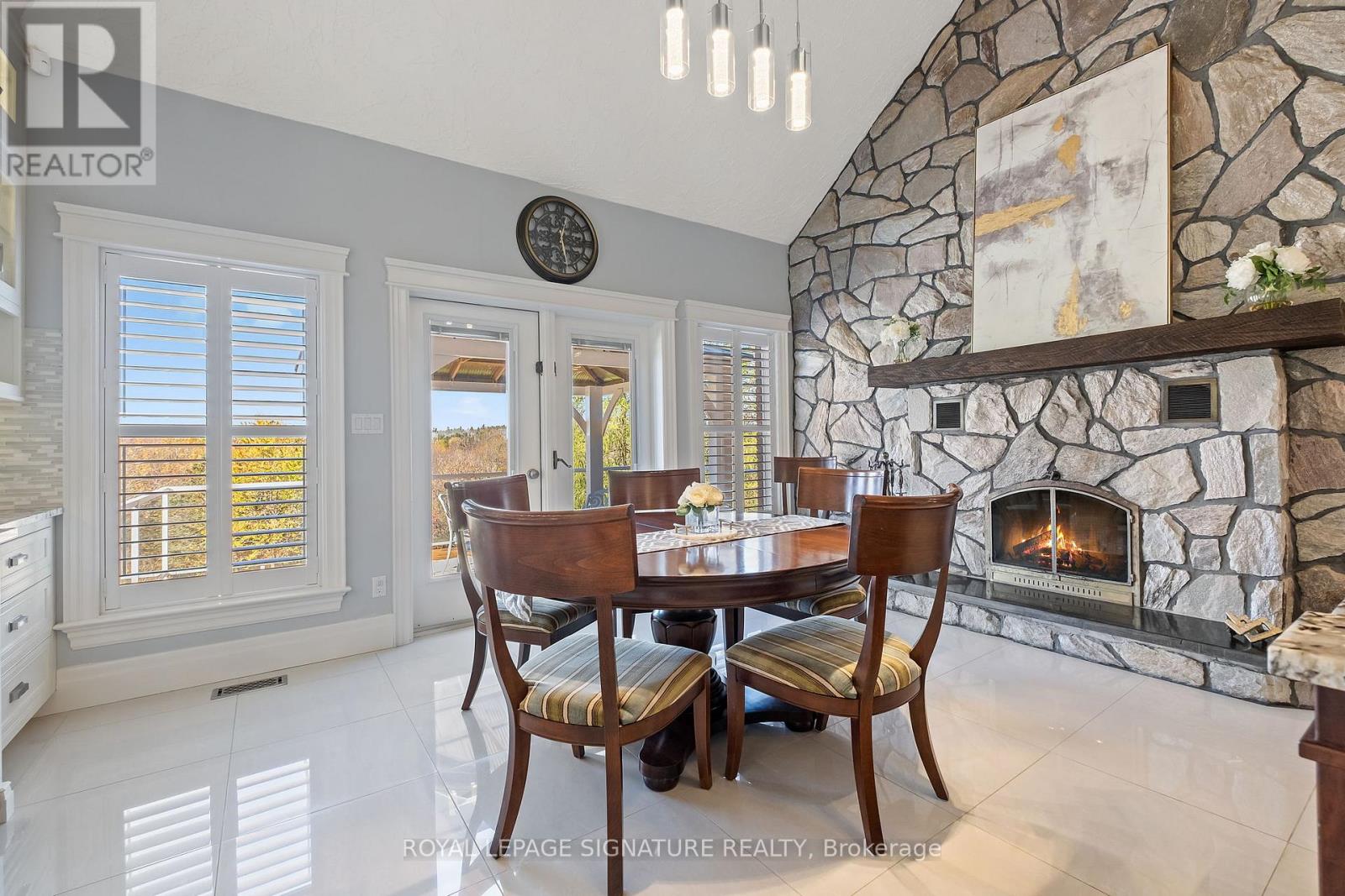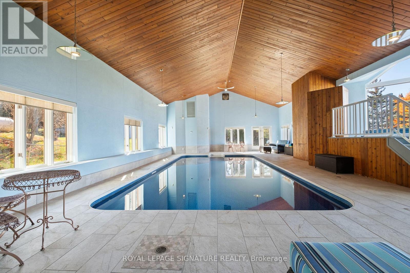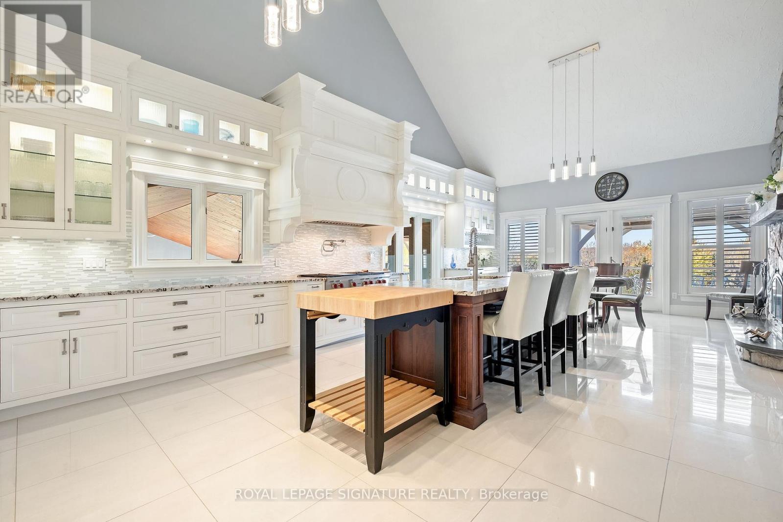 Set on nearly 2.5 acres of beautifully landscaped waterfront grounds, this fully renovated lakeside estate offers over 9,200 sq. ft. of luxurious living space. Thoughtfully designed for both entertaining and everyday living, the home features 6 bedrooms and 6 bathrooms, including a private guest, nanny, or in-law suite. The stunning 19' x 32' chef-inspired kitchen opens to expansive living and dining areas, all capturing breathtaking lake views. A resort-style indoor pool wing provides year-round enjoyment with a 16' x 32' concrete saltwater pool, Dectron Dry-O-Tron dehumidification system, cedar ceiling, textured concrete walls, custom lighting, hot tub, and sauna. Exceptional craftsmanship is evident throughout, with 18'-21' vaulted ceilings on the main level, 10'-11' ceilings on the lower walkout, custom plaster crown mouldings, architrave-trimmed millwork, a Mediterranean-style metal roof, and two waterproof decks overlooking the lake. The property offers a 3-car attached garage plus an oversized 2-car detached garage, ideal for vehicles, boats, or recreational equipment. Energy efficiency and reliability are delivered through two ground-source heat pumps with 14 drilled wells, a 35 kW whole-home standby generator, propane backup pool heater, multi-zone forced-air heating and cooling, and in-floor radiant heating. Enjoy four-season waterfront living with boating, fishing, waterskiing, snowmobiling, and nature trails at your doorstep. Ideally located minutes to Fergus, Elora, and Guelph, this is a rare offering combining refined luxury with serene lakeside living. See attached feature sheet for full details. (id:4555)
