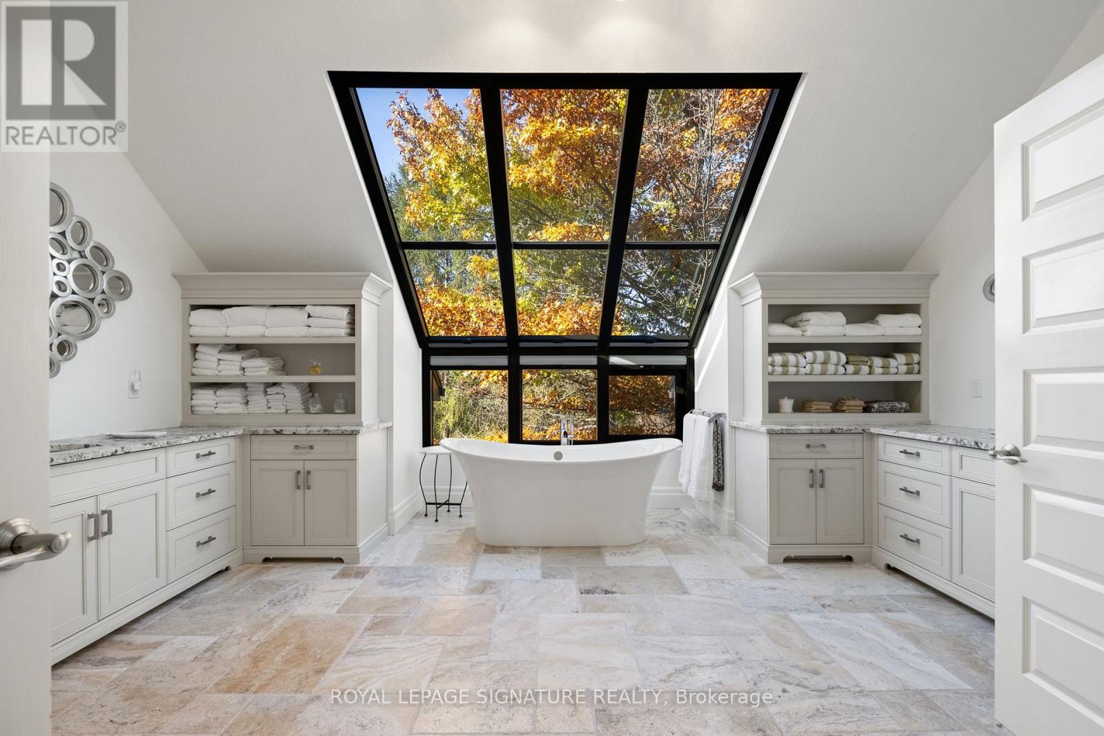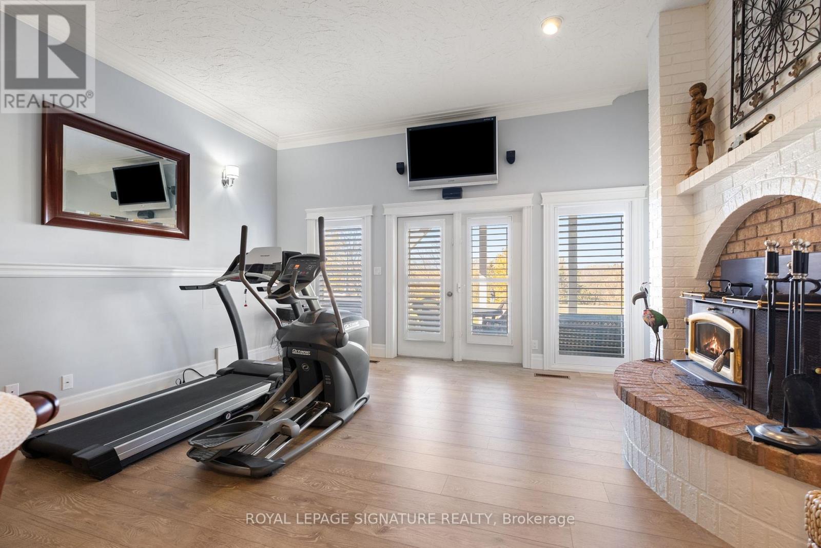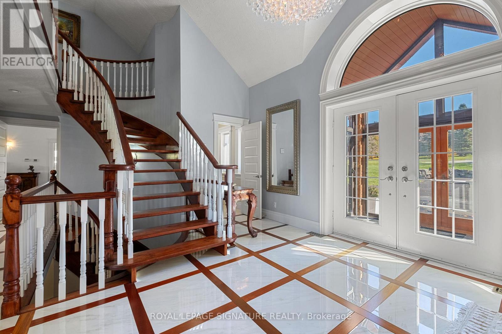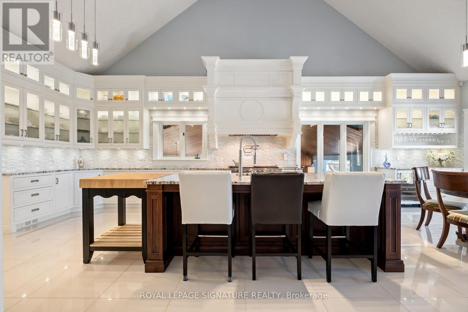 Set on nearly 2.5 acres of beautifully landscaped waterfront grounds, this fully renovated lakeside estate offers over 9,200 sq. ft. of luxurious living space. Thoughtfully designed for both entertaining and everyday living, the home features 6 bedrooms and 6 bathrooms, including a private guest, nanny, or in-law suite. The stunning 19' x 32' chef-inspired kitchen opens to expansive living and dining areas, all capturing breathtaking lake views. A resort-style indoor pool wing provides year-round enjoyment with a 16' x 32' concrete saltwater pool, Dectron Dry-O-Tron dehumidification system, cedar ceiling, textured concrete walls, custom lighting, hot tub, and sauna. Exceptional craftsmanship is evident throughout, with 18'-21' vaulted ceilings on the main level, 10'-11' ceilings on the lower walkout, custom plaster crown mouldings, architrave-trimmed millwork, a Mediterranean-style metal roof, and two waterproof decks overlooking the lake. The property offers a 3-car attached garage plus an oversized 2-car detached garage, ideal for vehicles, boats, or recreational equipment. Energy efficiency and reliability are delivered through two ground-source heat pumps with 14 drilled wells, a 35 kW whole-home standby generator, propane backup pool heater, multi-zone forced-air heating and cooling, and in-floor radiant heating. Enjoy four-season waterfront living with boating, fishing, waterskiing, snowmobiling, and nature trails at your doorstep. Ideally located minutes to Fergus, Elora, and Guelph, this is a rare offering combining refined luxury with serene lakeside living. See attached feature sheet for full details. (id:4555)