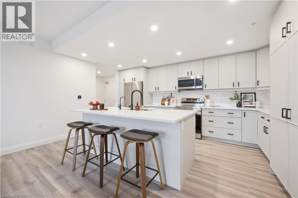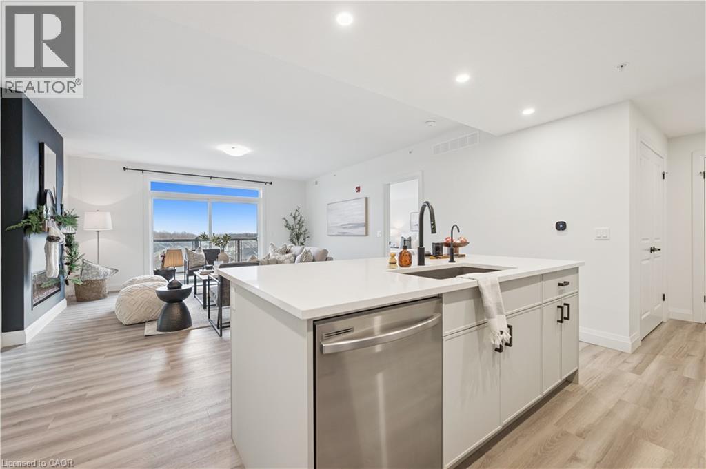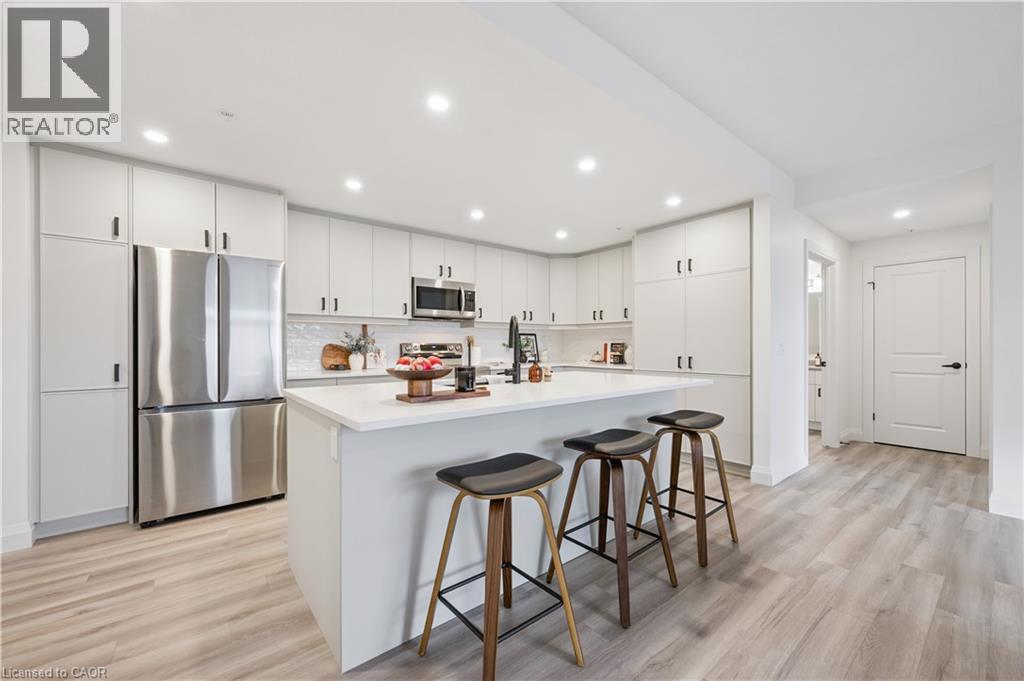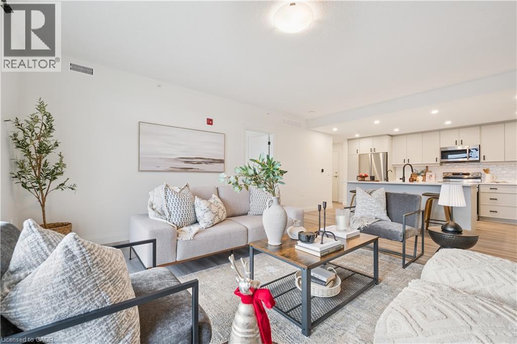 Arguably one of the nicest condo units within 99B Farley Rd., for it's top floor location with elevator access, privacy, south-west exposure, spacious floor plan and storage offerings. This 1275 square foot condo offers 2 generous bedrooms, 2 full baths and an underground parking spot with exclusive locker space. Quality built in '2024 by Keating, this condo has been designed with high quality finishes, ample parking, storage and an eco-friendly Geothermal climate control system for ease of utility costs. It's functional open-concept floor plan offers a very generous kitchen with centre island and breakfast bar, elegant granite countertops and waterfall off island, complete with stainless steel appliances. A seamless flow to the large bright living room, with built-in fireplace and beam mantle, leads out sliding doors to the large balcony overlooking the rear of building (opposite the parking). This sought after layout offers two generous bedrooms, primary bedroom with it's own full ensuite bath and walk-in closet. Second bedroom enjoys it's own use of another full bathroom. In-suite laundry room offers additional storage within unit. Various tasteful updates added throughout this unit, make it a wonderful home for luxury and comfort. The underground parking is right next to elevator and alongside has exclusive large storage unit. Located close to the new Groves Hospital and medical clinics, new public school, parks and walking trails and just a short drive to downtown Fergus and Elora for all they have to offer. You will want to make this a 'must see' and look forward to this holiday season in your new home. (id:4555)