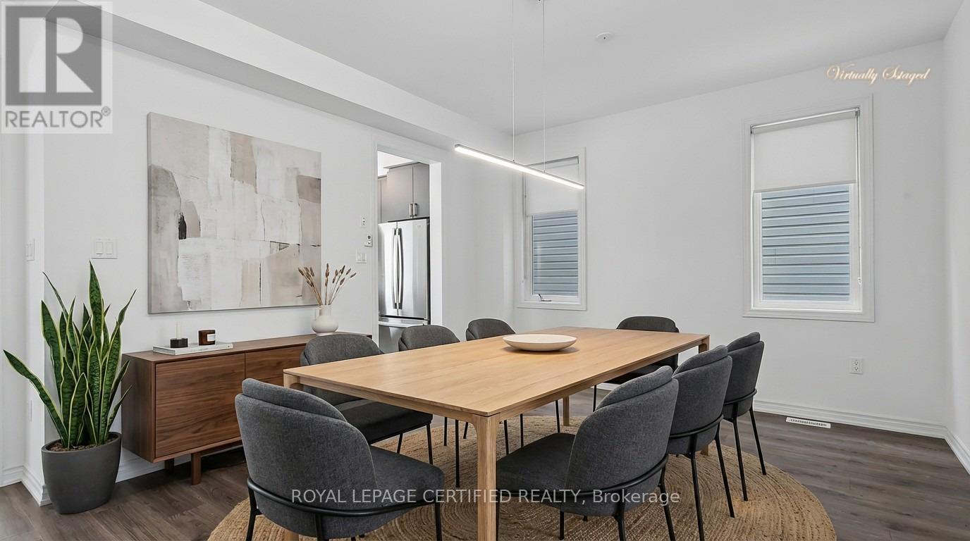 Set in the charming community of Fergus, this impressive 3,000+ sq ft two-storey residence offers a rare combination of space, design, and convenience. Less than 30 minutes to the University of Guelph, approximately 35 minutes to the University of Waterloo, and about 25 minutes to the Guelph Central GO Station. An ideal opportunity for families, professionals, and commuters seeking refined living outside the city. From the covered front porch step into a grand foyer that immediately impresses with soaring ceilings and an open, airy staircase overlooking the elegant dining and living area. The expansive open-concept main floor is thoughtfully designed for both everyday living and hosting, featuring an upgraded kitchen with centre island, seamlessly connected to a spacious family room with gas fireplace. Wide walkout sliders lead to the deck, creating an effortless indoor-outdoor lifestyle. The main level is completed by a convenient powder room, mudroom/laundry room, and direct access to the garage-where functionality meets upscale design. Upstairs, the home offers four generously sized bedrooms, three with private ensuite bathrooms. The spacious primary retreat features a his and her walk-in closets and a luxurious five-piece spa-inspired ensuite, providing a true private escape. The walkout basement features a separate entrance and presents excellent potential for an in-law or multi-generational living setup, with rough-in plumbing for a bathroom, large windows, and an open layout ready to be customized to suit your needs. A remarkable home that balances elegance, comfort, and location. This is a standout opportunity to own a truly impressive property in one of the most desirable neighbourhood in Fergus. (id:4555)