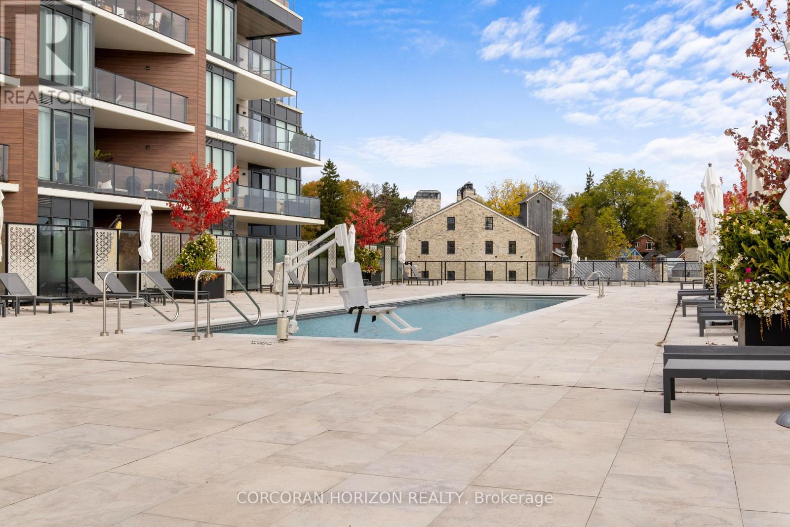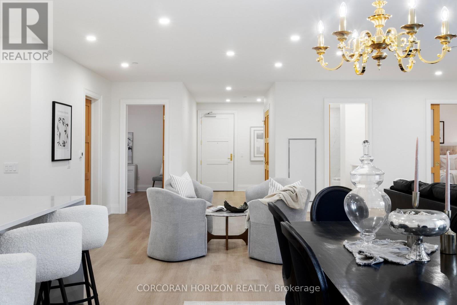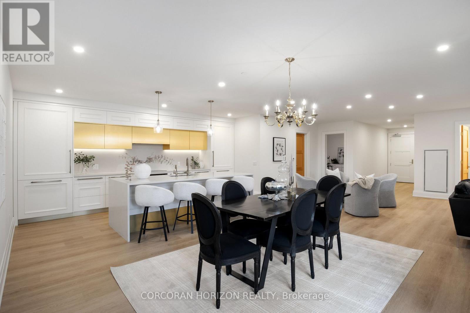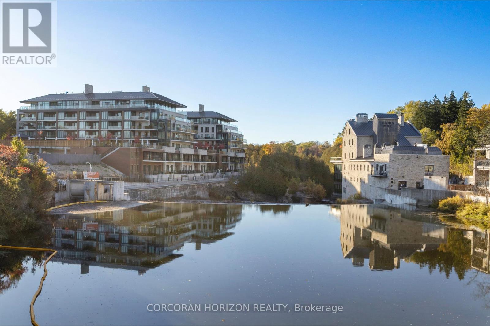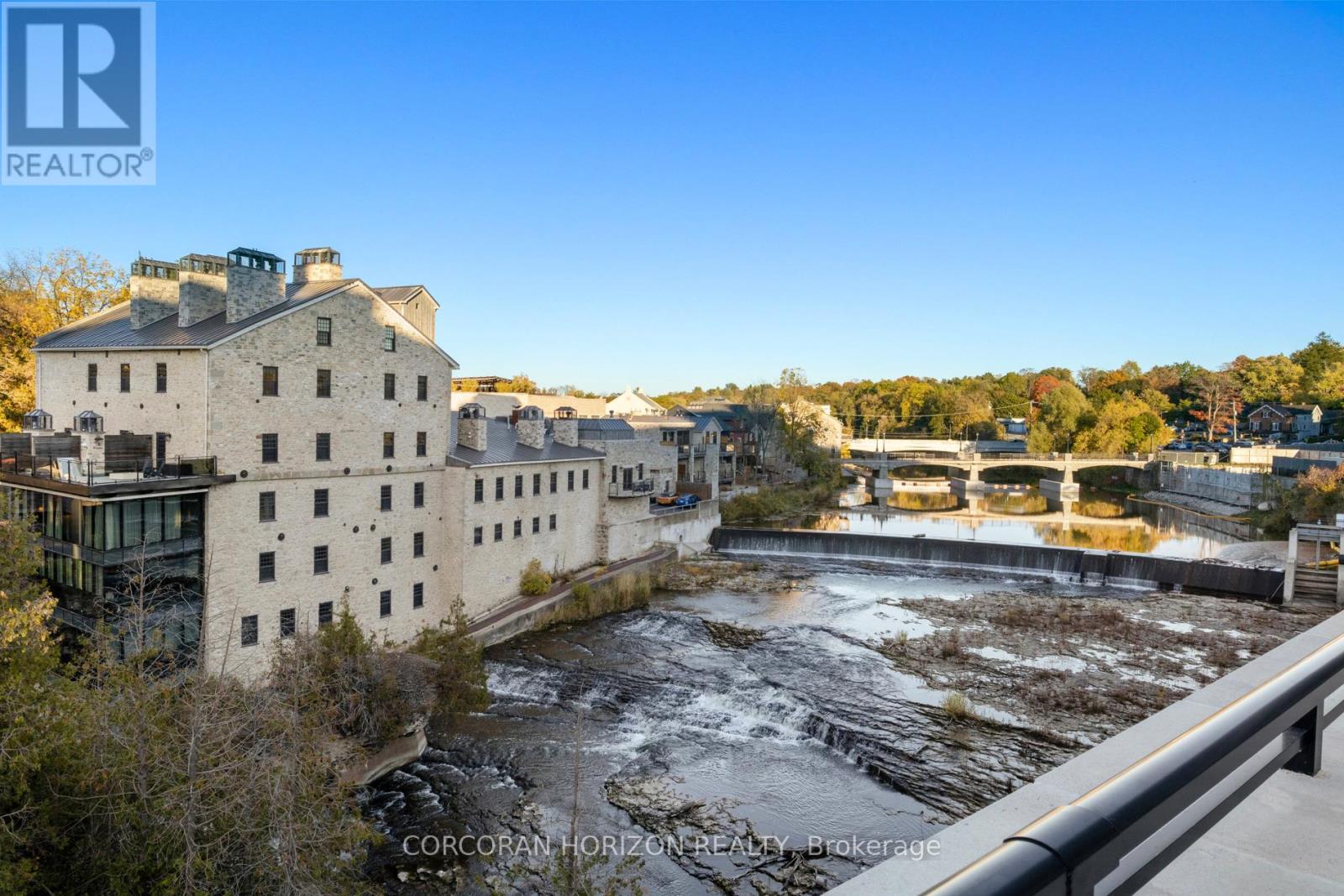 This Luxury suite was designed for those looking to downsize without compromise. 2,098 Sqft of thoughtfully designed living space, this stunning first-floor residence combines the ease of Condo Living with the space and comfort of a Detached Home. This open concept layout has incredible flexibility, allowing you to tailor the space to suit your needs. The expansive dining area comfortably accommodates a full sized dining table, perfect for hosting dinner parties or cherished family gatherings, with room to bring your heirloom set. The living room is ideal for entertaining or relaxing with multiple seating areas and direct access to a sprawling 247 sqft Terrace, perfect for outdoor dining or enjoying your morning coffee. The designer kitchen, complete with an oversized island, with seamless integration into the living and dining areas. Tucked away the primary suite is a true retreat, accessed by a separate hallway and features a spa-inspired ensuite bath and generous walk-in closets. A second spacious bedroom, ideal for family or guests with a large closet & the 3rd bonus room provides added versatility, easily used as a home office, media room or even a 3rd bedroom for visitors. The full-size laundry room offers additional storage and convenience. Located on the ground floor, this suite offers direct views of the Terrace and across the river to the Elora Mill. Perfect for pet owners or those who prefer to avoid elevators. Start your mornings with a short stroll to the resident lounge to enjoy coffee and fresh pastries from the Elora Mill. This suite includes one underground parking space, a locker, and offers access to resort-style amenities: Fitness centre, Yoga studio, Lounge and Lobby Coffee Bar, Outdoor Terrace, and a Pool with Spectacular River Views!! Experience refined living in one of Ontario's most charming and walkable communities. Just steps away from award winning restaurants, artisan shops, cafes and the natural beauty of Elora. (id:4555)