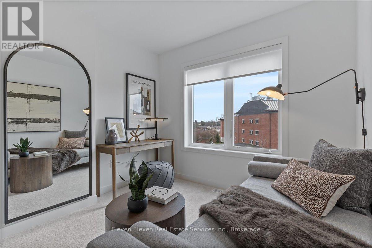 Design your perfect lifestyle at Sunrise Grove with this premium 2-bedroom, 2-bathroom executive end-unit by award-winning Reid's Heritage Homes. Spanning 980 sq. ft. of bright, open-concept space, this corner residence features oversized windows that flood the home with natural light, complemented by signature quartz countertops and stainless steel appliances. Purchasing directly from the builder offers the unique advantage of choosing your own layout and closing timeline to suit your needs. Perfectly positioned just steps from the shops and trails of downtown Fergus-and only 5 minutes from the world-class dining of Elora-this home includes one parking space and a full Tarion Warranty. First-time home buyers may be eligible for Federal GST rebate. Photos are of furnished Model Home. Actual Finishes may vary. Open House March 28/29, 2026 - 12pm to 3pm (id:4555)