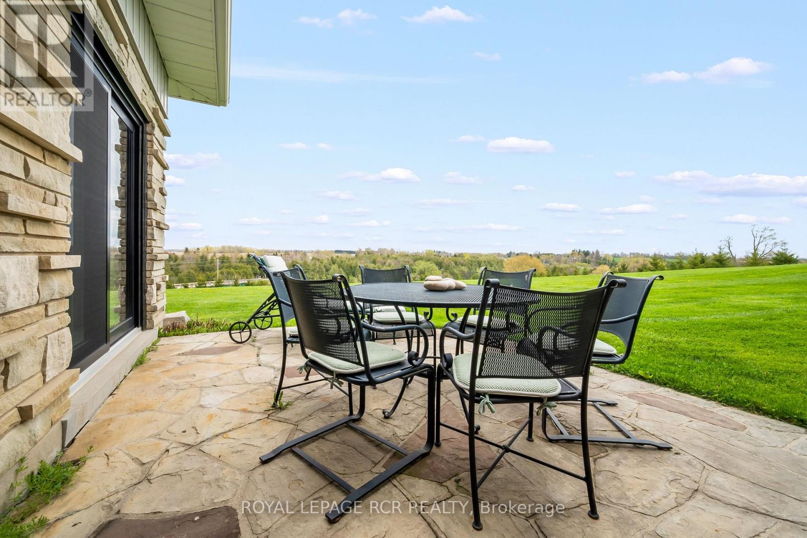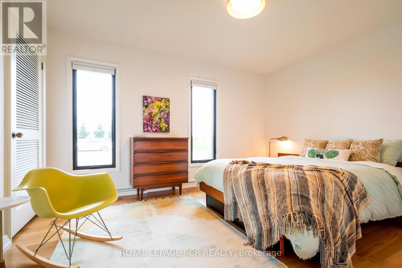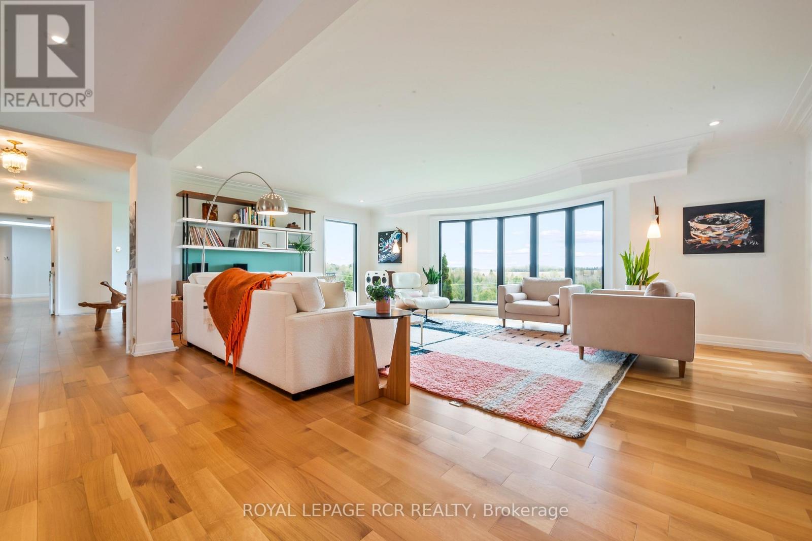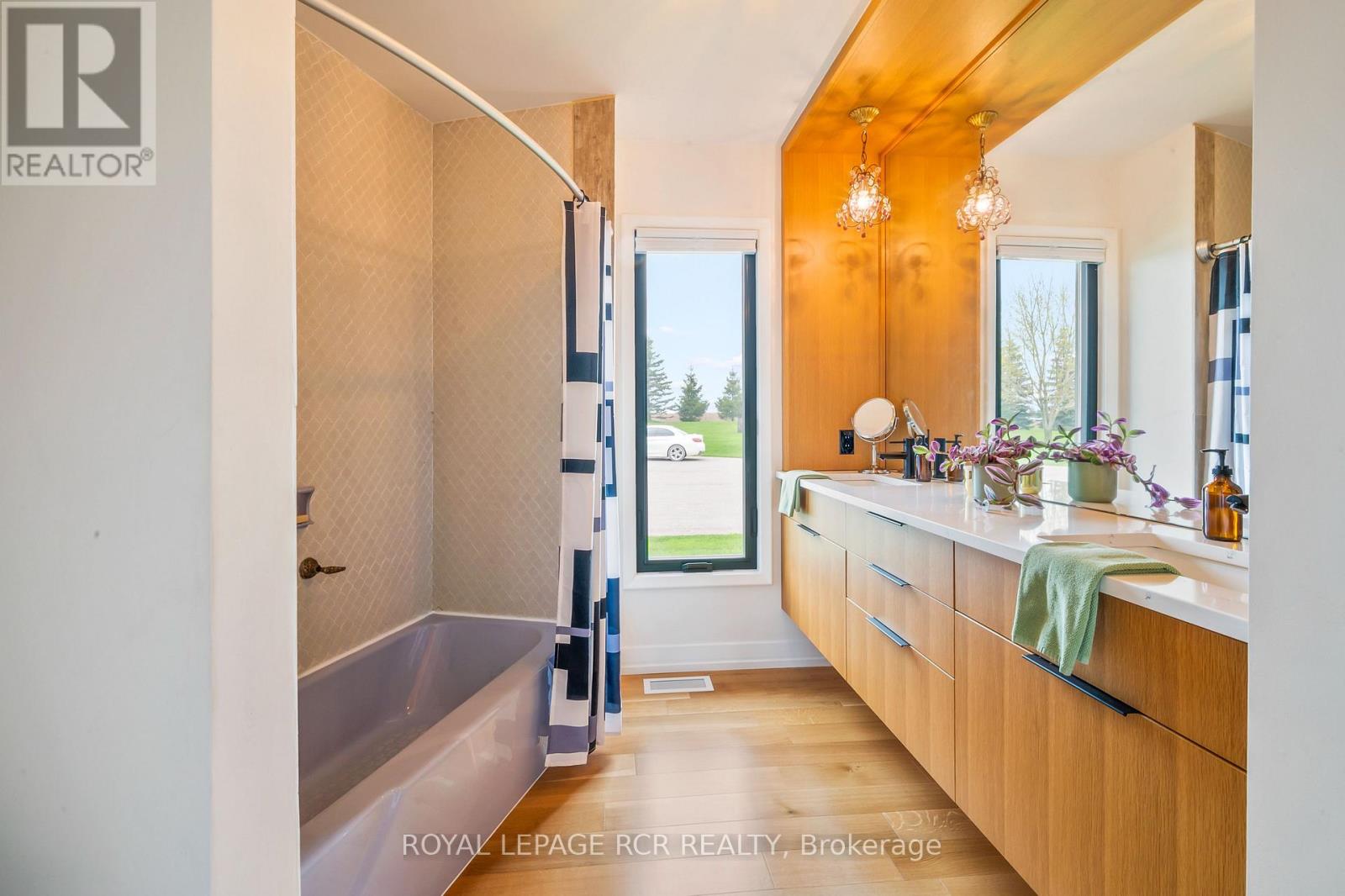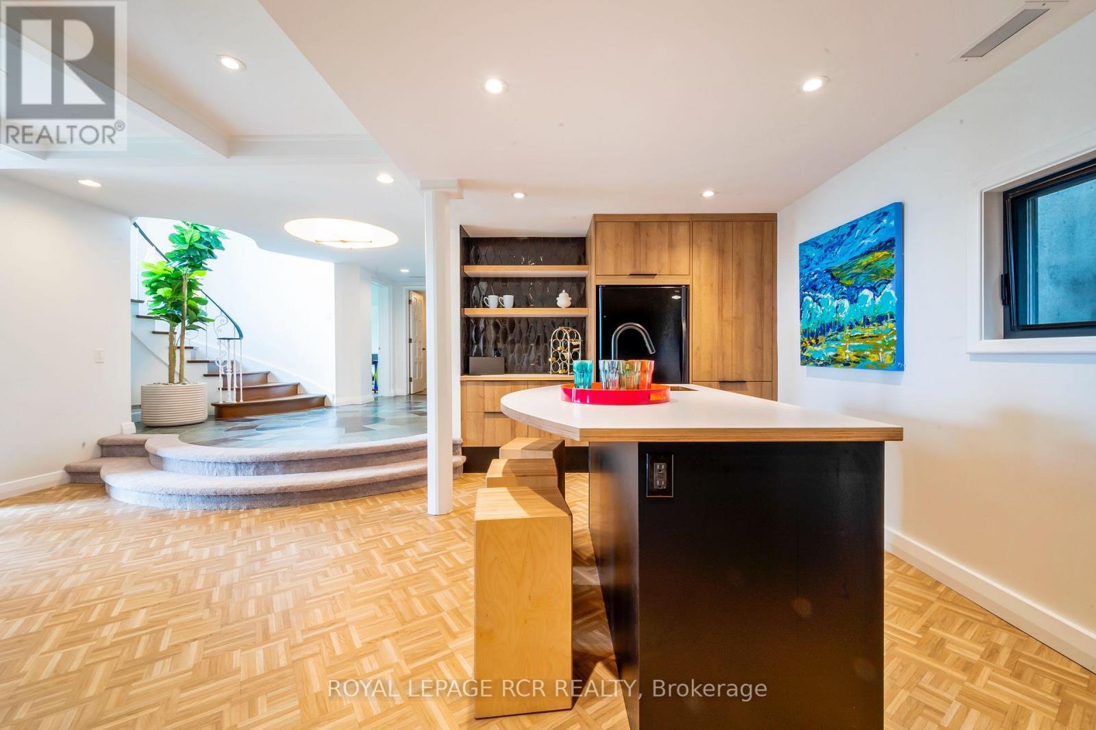 A winding driveway draws you toward The Riverlands, a spectacular top-of-the-line modern estate offering over 7,000 sq ft of total space. Nestled on 3.67 acres with commanding views of the Grand River, this architectural gem underwent an extraordinary full-scale renovation from '20 to '22. Today, it stands as a seamless fusion of timeless design and forward-thinking sustainability, boasting carbon- neutral, net-zero-ready systems. The main level features a stunning chef-inspired kitchen with quartz countertops, custom cabinetry, and an impressive suite of appliances. Sliding doors lead to a stone patio with a fireplace and BBQ, perfectly positioned to enjoy the sights and sounds of one of Ontario's premier fly fishing destinations. The open-concept living and dining area is enhanced by natural light, bespoke walnut built-ins, and sweeping river views. The primary suite is a private retreat, complete with a five-piece ensuite, custom dressing room with integrated laundry, and access to a versatile den or office with a wood-burning fireplace and access to the rooftop terrace. Two more bedrooms offer walk-in closets and share a beautifully updated bath. A curved staircase leads to the lower level featuring a second kitchen with an indoor charcoal grill, a family room with fireplace, a billiards room, a guest suite, a wine room, and a walk-in fridge. Thoughtfully designed to function seamlessly as a multi-generational home, this level offers independent yet connected living spaces ideal for extended family or guests. The showstopping indoor saltwater pool has dedicated HVAC and solar-powered heating, plus a sauna, change room, and adjoining sunroom with walkout to the backyard. Rooftop solar panels, geothermal systems, upgraded electrical, smart home features, and plans for a detached 3-car garage complete this one-of-a-kind package. Just minutes from Belwood Lake and downtown Elora, The Riverlands is a rare blend of modern luxury, natural beauty, and sustainable living (id:4555)