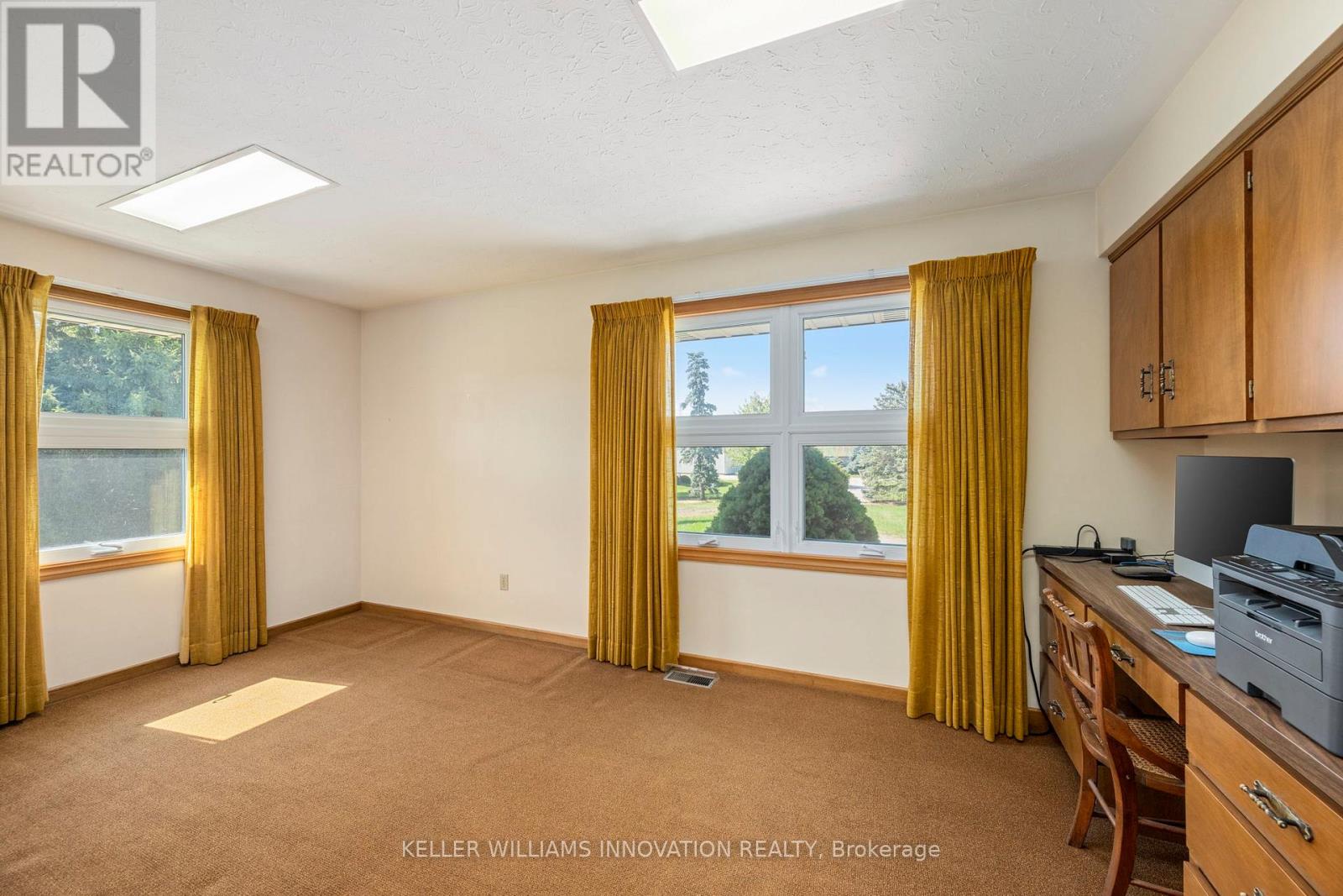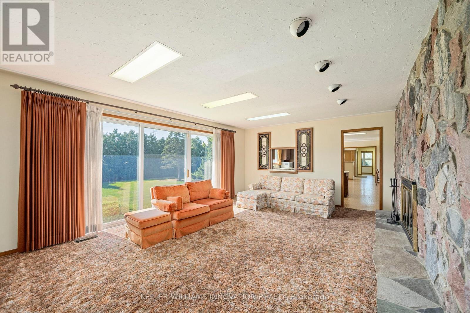 29-Acre Farm with Spacious Bungalow & Outbuildings. Situated on 29 acres of A1-zoned land, this well-built 3,171 sq. ft. bungalow offers generous living space and a functional rural setting close to the town of Chatham. The home features 3 bedrooms and 2.5 bathrooms, along with an attached double garage. The main floor offers a large eat-in kitchen with ample wood cabinetry, a centre island, and plenty of space for family dining. Separate family and living rooms provide flexible living areas, each highlighted by a wood-burning fireplace. The layout is well suited for both everyday living and entertaining. A full basement extends the living space and offers excellent future potential, with rough-in plumbing already in place for a full bathroom, as well as rough-in for an additional fireplace. The home is serviced by a geothermal heating and cooling system with electric backup, offering efficient and reliable comfort. High-speed internet is available. The property includes a large timber-frame barn, a metal-clad driveshed, and two small vacant hog barns. Additional farm features include four grain storage bins, including a 6,000-bushel dryer bin. An excellent opportunity for agricultural use, hobby farming, or those seeking a spacious rural residence with extensive infrastructure. (id:4555)