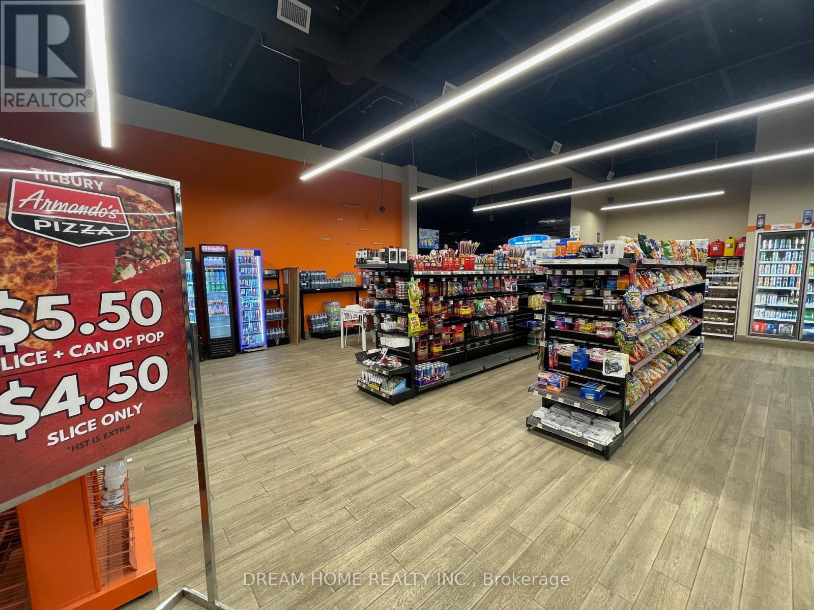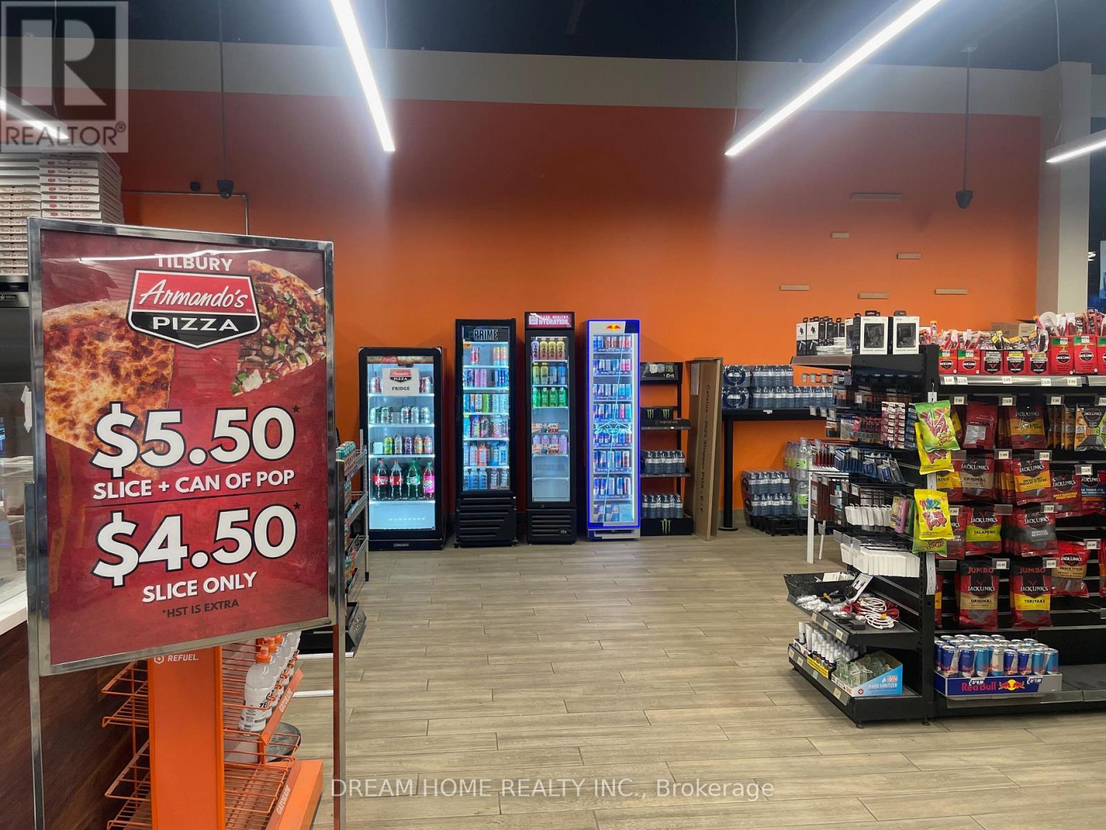 Gas station , gas station ! Ultramar Gas Station + Amando Pizza | Prime Corner Commercial Investment Stable, Diversified Income Streams | Fuel Convenience Food Vape Fully Upgraded and Modernized (2021): New building construction and equipment installed in 2021, ensuring low ongoing maintenance and reduced environmental risk. 2008 double-wall fiberglass (DWFG) fuel tanks with supporting environmental report. Contemporary layout designed for efficient operations. Prime Corner Location in Tilbury: Situated on a high-visibility major town intersection along the main commercial corridor. Strong annual fuel volume (approximately 4-6 million litres based on recent trends). Direct north-south access route connecting to local lakefront recreation areas. Minutes from Highway 401, benefiting from consistent commuter, traveler, and seasonal traffic. Strong Brand Portfolio and Built-In Traffic: Ultramar branded fuel station. Amando Pizza popular local food tenant providing stable rental income and drawing additional customers. Adjacent to Tim Hortons, forming a high-traffic service hub that enhances overall footfall. Multiple Resilient Revenue Sources: Fuel sales (including diesel). High-margin convenience store items. Profitable vape retail component. Pizza operation contributing steady rent plus synergistic customer flow. Turn-Key and Versatile Opportunity: Fully equipped, operational, and ready for immediate takeover. Ideal for hands-on owner-operators in fuel/convenience retail. Also suitable for passive investors seeking diversified, essential-service cash flow in a small-town setting. Property Overview: Corner lot configuration. Approximate lot size: 18,800 sq ft. Building size: ~2,800 sq ft. Zoning: Commercial. Fuel infrastructure: Canopy with 3 islands, 6 pumps (including 1 dedicated diesel island). Fuel storage tanks: Regular: 63,000 L Premium: 10,000 L Diesel: 15,000 L (id:4555)