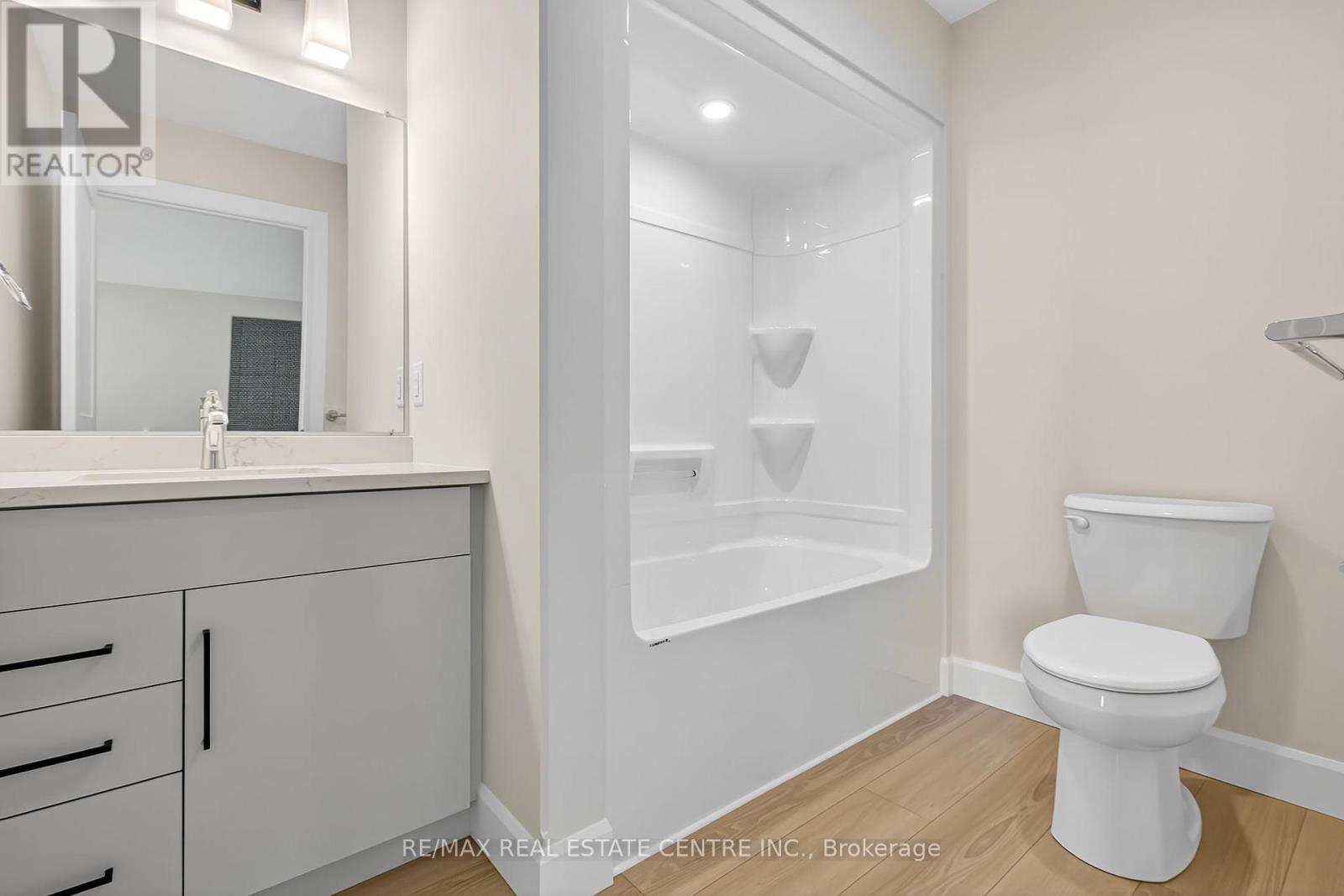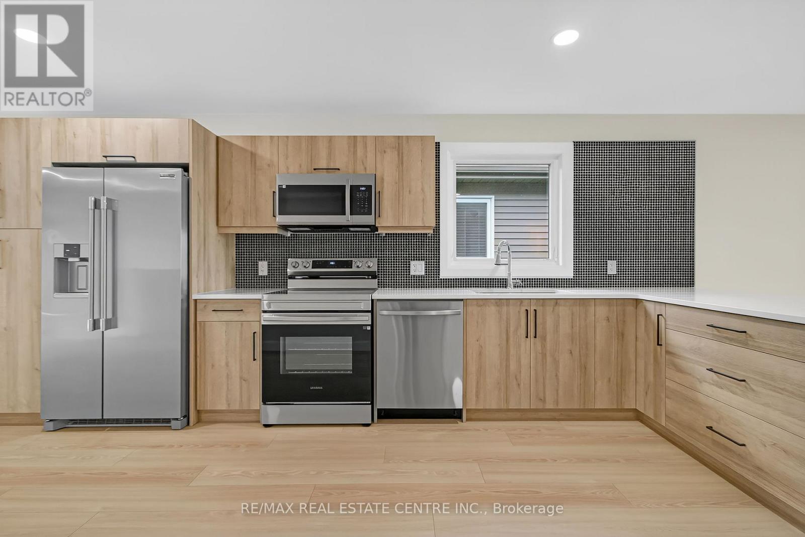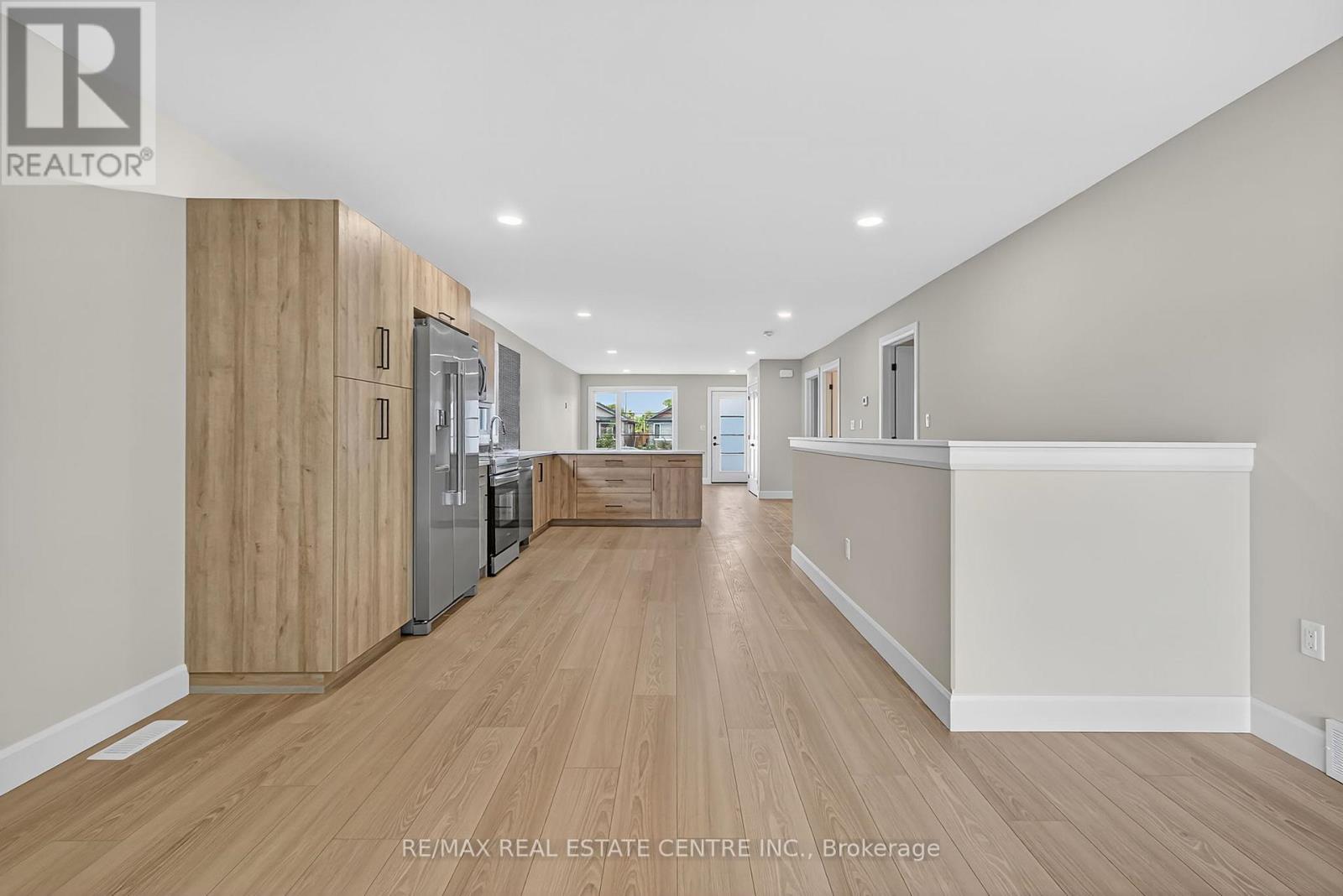 Newly built! Welcome to this beautiful detached bungalow! Offering 3 bedrooms and 2 bathrooms, the home combines modern design with every day comfort. The main level boasts an open-concept layout with a bright living and dining space, complemented by a stylish kitchen with brand-new stainless steel appliances. Bathrooms and kitchen both feature quartz countertops. The primary bedroom is complete with its own ensuite and walk-in closet, while the additional bedrooms are filled with natural light and each include a closet. Direct access to the drywalled garage is convenient and enhances functionality. Step outside from the dining area to a covered patio overlooking a fenced backyard-ideal for gatherings or quiet evenings. The large basement with oversized windows is waiting for your personal touch and has tons of potential for additional living space and the large concrete driveway offers plenty of parking. Located near Highway 401, schools, parks, shops, trails and all amenities, this home is move-in ready within a fantastic community! (id:4555)