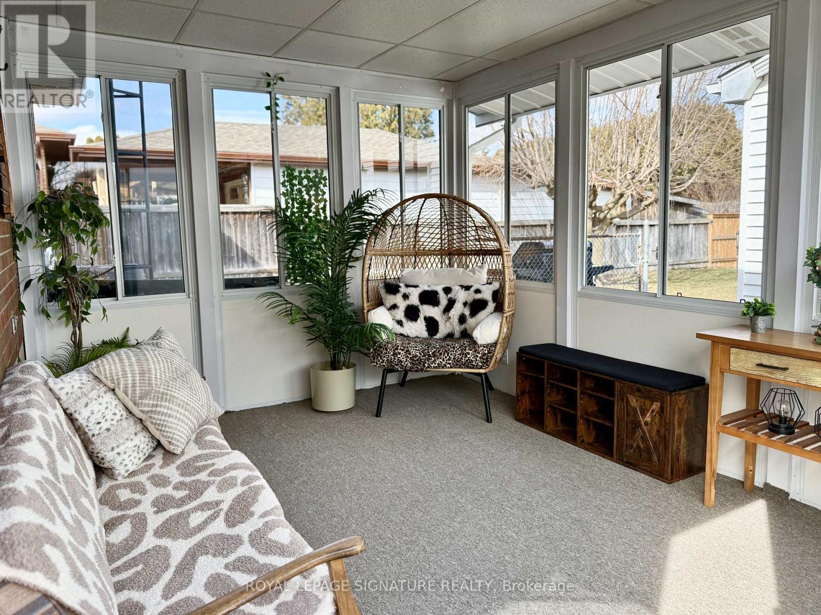 Located on a quiet cul-de-sac, this 3 Bedroom 1.5 Bath Bungalow sits on an expansive lot at 148 ft deep. Main floor is bright with large windows letting all of the natural light in. The Eat In Kitchen with oak cabinetry creates a nice flow of space amongst the Kitchen and Living Room area. Potential In-law Suite with a Side Entrance down to the Finished Basement of similar square footage as upstairs. A good amount of useable space to arrange as you will. The Sunroom is a perfect, peaceful spot to take in the sunshine while admiring your gardens, nature and the wildlife. With a Detached Double Garage that is heated, you have a good amount of space to park the vehicle while getting creative in a comfortable workspace. This home feels like home and that, is a great feeling. (id:4555)
