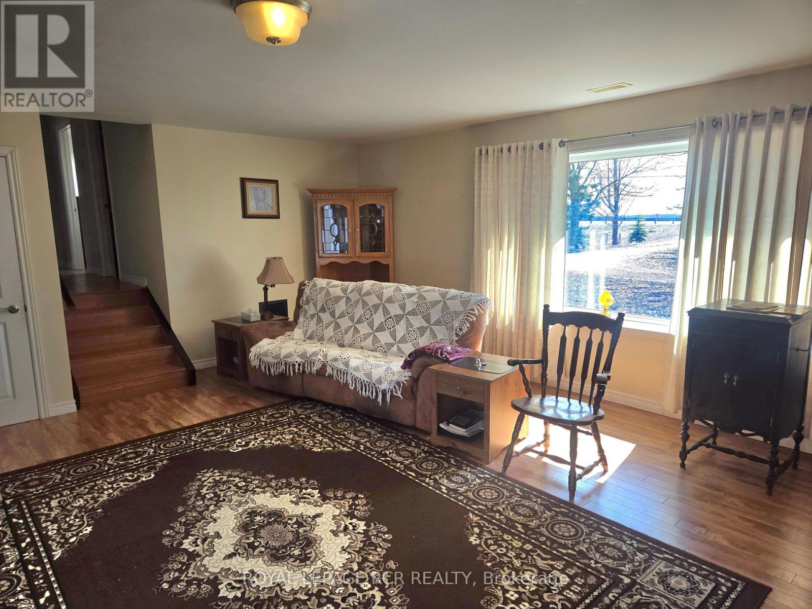 Great little 'Hobby Farm' on 2.5 acres just 4 klms north of Markdale. Private treed setting with a 3 bedroom side split (means just a few stairs!) Main floor laundry. Good sized primary bedroom w/ensuite. Attached 2 car garage with entrance to house. Very efficient hot water 'in floor' heat, and also a cozy woodstove. Trailer included (formerly antique shop!) Separate barn/shed for your furry friends and fully fenced property with gates! (id:4555)