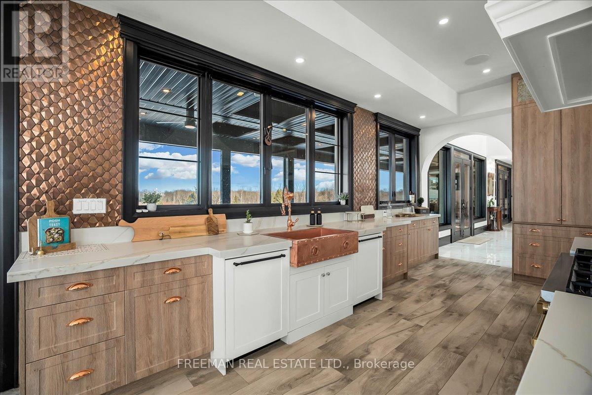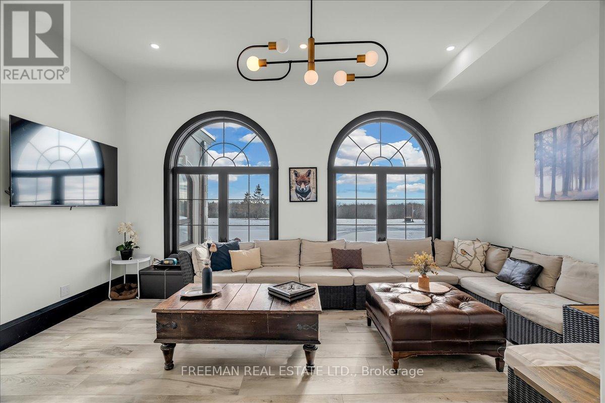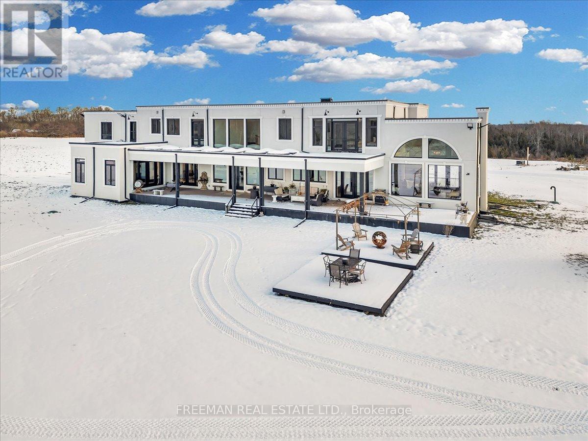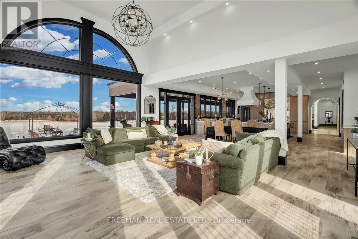 A once-in-a-lifetime opportunity to own one of Durham Region's most remarkable modern country estates. Set on 52 acres of rolling countryside, forested walking trails, & a peaceful pond that glistens in summer, transforming into a skating rink in winter, this architectural masterpiece combines timeless design, privacy, & connection to nature in every direction. Inside, more than 8,500 sq. ft. of finished living space unfolds with soaring ceilings, walls of glass, & sunlit interiors that frame the surrounding landscape like art. Expansive principal rooms flow effortlessly, creating an atmosphere that feels open, refined, & entirely at ease. The gourmet kitchen is a showpiece of form & function with top-tier appliances, designer finishes, & a generous island that anchors gatherings of family & friends. The west-wing primary suite offers a private sanctuary with a dressing room or nursery, large walk-in closet, fitness room, & a spa-inspired ensuite featuring dual vanities, a two-person steam shower, & a freestanding tub perfectly placed to take in serene views of the trees. Upstairs, each bedroom enjoys its own ensuite & walk-in closet, while a self-contained guest wing with a full kitchen, living area & bath provides comfort & independence for guests or extended family. Eight years new, this home was built with lasting quality & modern innovation in mind, featuring geothermal heating, radiant floors, multiple fireplace rough-ins, a pet spa, & a heated three-car garage. The 1,150 sq.ft. covered terrace invites year-round outdoor living & endless sunsets. The lower level adds another 5,700 sq. ft. of potential with exceptionally high ceilings & large windows ready to be finished as a theatre, gym, studio, or wine cellar. Privately situated at the end of a quiet cul-de-sac, yet only minutes from top schools, shops, & community amenities. A rare blend of modern architecture, natural beauty, & quiet sophistication that must be seen to be fully appreciated. (id:4555)