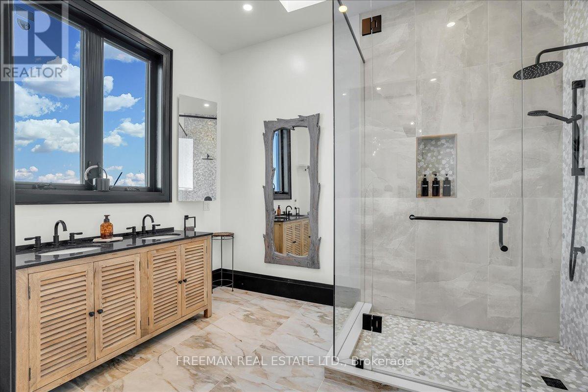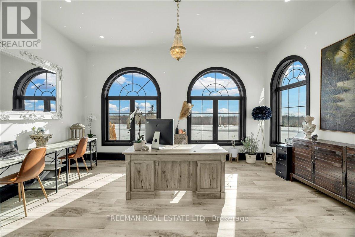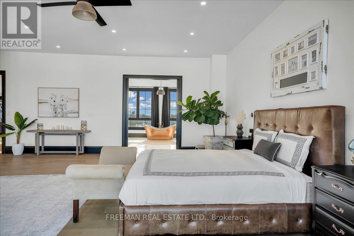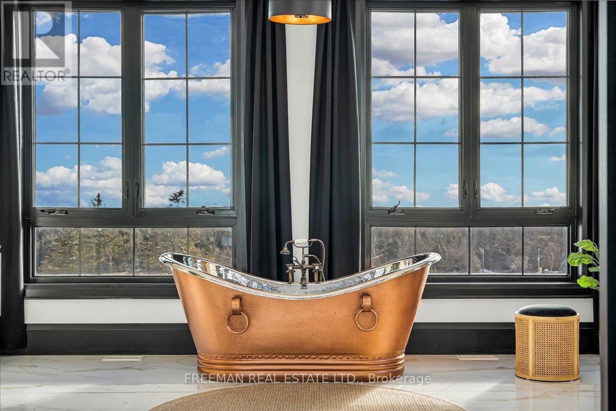 A once-in-a-lifetime opportunity to own one of Durham Region's most remarkable modern country estates. Set on 52 acres of rolling countryside, forested walking trails, & a peaceful pond that glistens in summer, transforming into a skating rink in winter, this architectural masterpiece combines timeless design, privacy, & connection to nature in every direction. Inside, more than 8,500 sq. ft. of finished living space unfolds with soaring ceilings, walls of glass, & sunlit interiors that frame the surrounding landscape like art. Expansive principal rooms flow effortlessly, creating an atmosphere that feels open, refined, & entirely at ease. The gourmet kitchen is a showpiece of form & function with top-tier appliances, designer finishes, & a generous island that anchors gatherings of family & friends. The west-wing primary suite offers a private sanctuary with a dressing room or nursery, large walk-in closet, fitness room, & a spa-inspired ensuite featuring dual vanities, a two-person steam shower, & a freestanding tub perfectly placed to take in serene views of the trees. Upstairs, each bedroom enjoys its own ensuite & walk-in closet, while a self-contained guest wing with a full kitchen, living area & bath provides comfort & independence for guests or extended family. Eight years new, this home was built with lasting quality & modern innovation in mind, featuring geothermal heating, radiant floors, multiple fireplace rough-ins, a pet spa, & a heated three-car garage. The 1,150 sq.ft. covered terrace invites year-round outdoor living & endless sunsets. The lower level adds another 5,700 sq. ft. of potential with exceptionally high ceilings & large windows ready to be finished as a theatre, gym, studio, or wine cellar. Privately situated at the end of a quiet cul-de-sac, yet only minutes from top schools, shops, & community amenities. A rare blend of modern architecture, natural beauty, & quiet sophistication that must be seen to be fully appreciated. (id:4555)