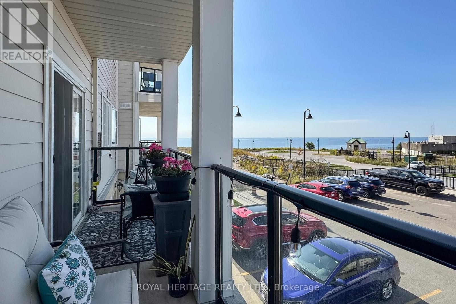 Wake up to uninterrupted views of Lake Ontario in this bright and beautifully maintained 2-bedroom, 2-bathroom condo offering true lakefront living. Featuring an oversized balcony with direct lake views, this open-concept suite is filled with natural light and designed for both everyday comfort and relaxed entertaining. The unit shows like new and includes stainless steel appliances, granite countertops, a stylish backsplash, updated lighting, and fresh carpeting throughout. Thoughtfully laid out with generous living space, this condo also includes underground parking and a private locker for added convenience. Step outside and enjoy immediate access to the waterfront trail, perfect for walking, cycling, or simply taking in the lakeside scenery, with nearby entry to Wilmot Creek Nature Preserve - 77 hectares of protected forest and scenic trails. Residents enjoy exclusive membership to the Admirals Clubhouse, offering exceptional resort-style amenities including an indoor pool, hot tub, exercise room, movie theatre, lounge, games room, and more. Whether you're seeking a peaceful full-time residence or a low-maintenance lakeside retreat, this condo delivers the ultimate blend of nature, comfort, and community. A rare opportunity to enjoy carefree lakefront living with outstanding amenities in an unbeatable setting. (id:4555)