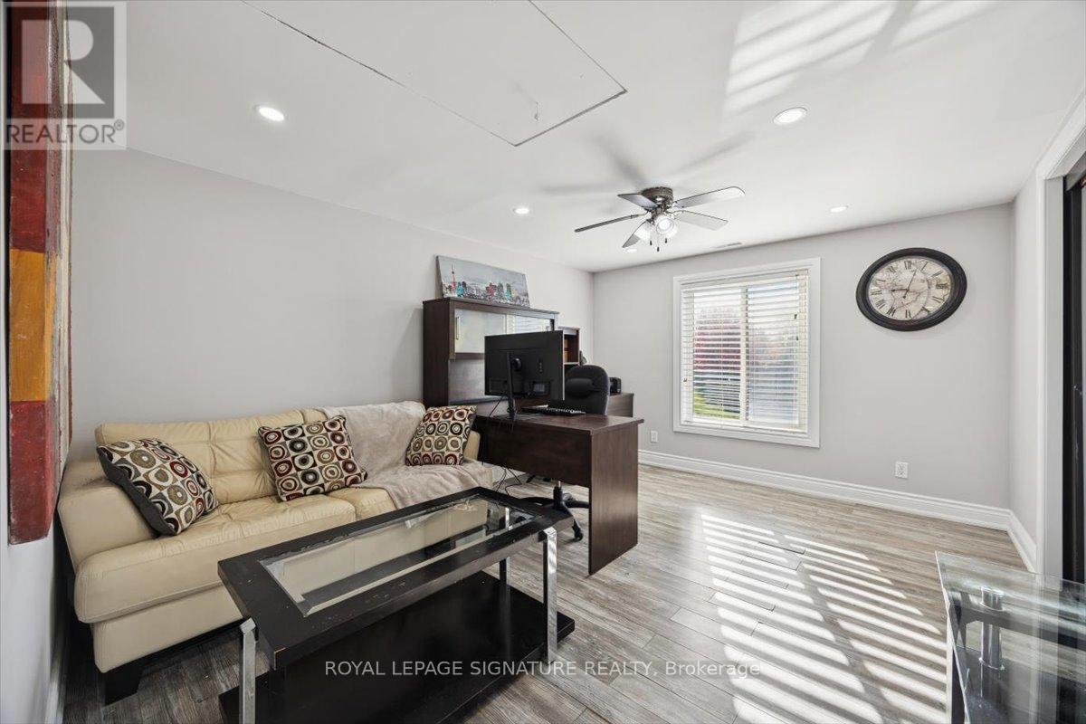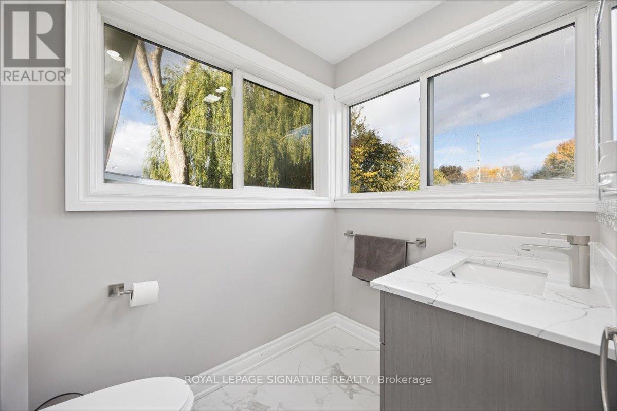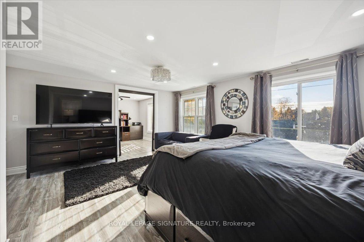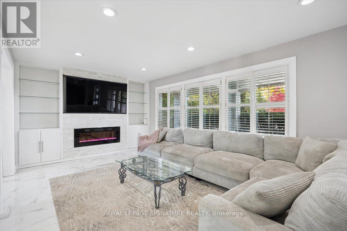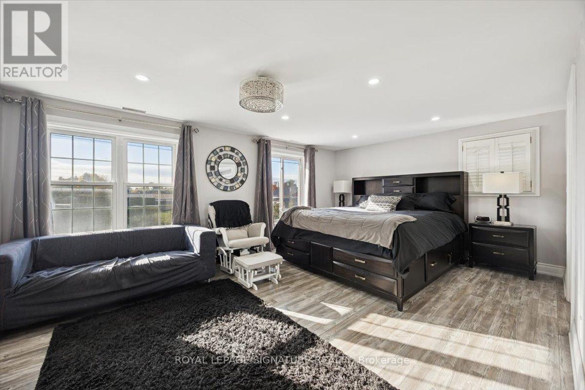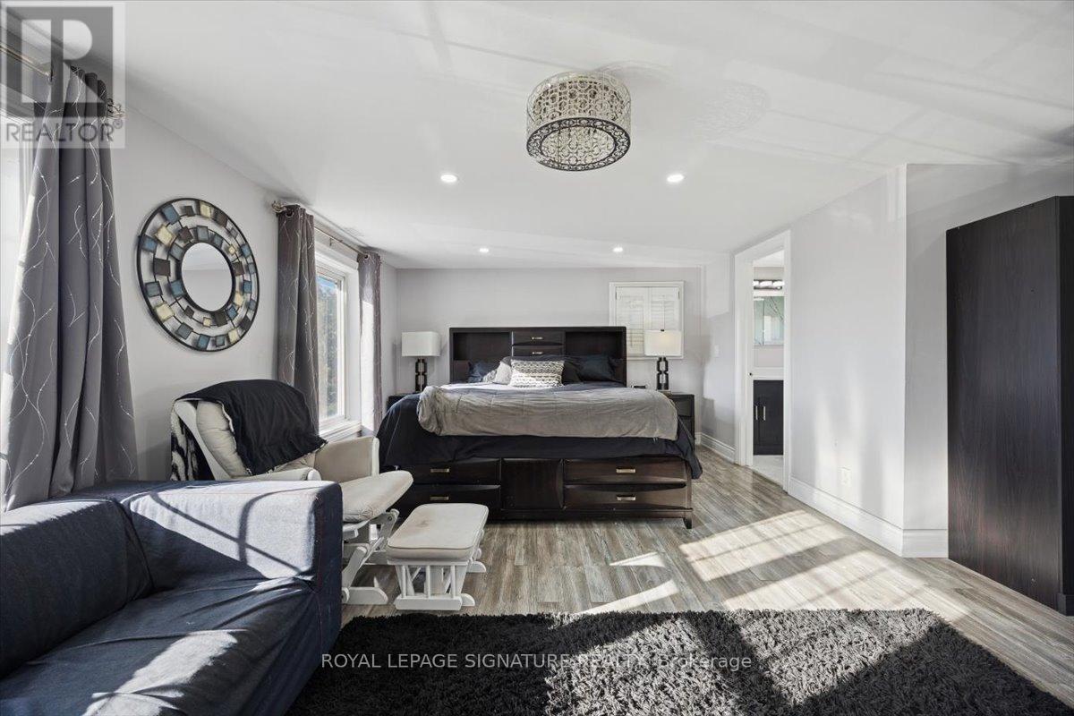 Welcome to Mitchell Corners in the heart of Clarington - where modern luxury meets timeless country charm. This beautifully renovated 5+1 bedroom, 4-bathroom home is tucked away on a quiet side street, offering the perfect blend of sophistication,functionality, and serene living. From the moment you arrive, the oversized wrap-around driveway - with space for 12+ vehicles- and stamped concrete walkway and porch create a warm, inviting first impression. Step inside to discover a pristine, open-concept main floor that seamlessly connects the kitchen, dining, and living areas - ideal for everyday living and effortless entertaining. At the heart of the home is the brand-new (2025) chef's kitchen, a true showstopper featuring an oversized quartz island with seating for eight, matching quartz countertops and backsplash, soft-close cabinetry with glass display panels, a built-in beverage centre and microwave, and sleek pot lighting to accent every detail. The spacious dining and living areas are anchored by a custom-designed TV wall unit, while 24x24 luxury tiles flow throughout the main level, transitioning to new vinyl flooring in the fully finished basement - offering style and durability. Upstairs, a striking glass-panel staircase framed by a fluted accent wall and crowned with a grand chandelier adds a touch of refined elegance and warmth. All four bathrooms have been thoughtfully renovated with contemporary fixtures and quality finishes, and a fresh coat of paint throughout enhances the home's bright, airy ambiance. Enjoy peace of mind with a new furnace and AC (2022), upgraded lighting throughout the home,convenient upper-level laundry, and ample space ideal for large or multi-generational families. This move-in-ready home is a rare gem in Mitchell Corners - offering the best of both worlds: elevated, modern design in a peaceful, country setting just minutes from highways, amenities, and top-rated schools. (id:4555)