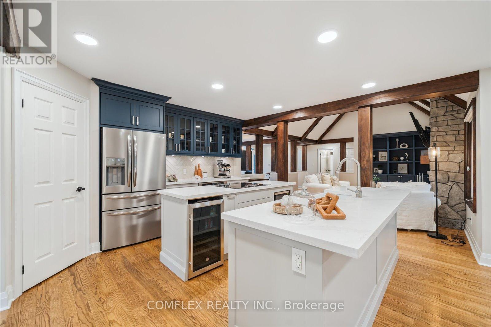Gorgeous Custom Bungaloft on 1.16 Acres in Prestigious Bowmanville Neighbourhood. Welcome to this exceptional, custom-built bungaloft, located on a court and serviced by natural gas. From the moment you arrive, the attention to detail is unmistakable. The exterior showcases timeless craftsmanship with custom stonework, copper accents, marble sills, and soaring rooflines that combine to create stunning curb appeal. Step inside to discover a bright and airy open-concept layout that perfectly balances elegance with comfort. The main living space features solid hardwood floors, recessed lighting, and a great room with cathedral ceiling and nat gas fireplace. The freshly renovated gourmet kitchen is a true centerpiece, complete with full-height glass cabinetry, Corian countertops, walk-in pantry, and stainless steel appliances. A sunny breakfast area opens to a charming sunroom, ideal for your morning coffee or a quiet retreat. Main floor also includes a beautifully updated laundry/mudroom and well-appointed bedrooms, each offering private or shared access to ensuite bathrooms for optimal convenience. Upstairs, the spacious loft is a standout feature, offering endless flexibility. With vaulted 10-foot ceilings, a skylight, gleaming hardwood floors, natural gas fireplace, and its own 3-piece ensuite. This large space is perfect as a family room, home office, or private in-law suite! Property offers ample space for children to play, room to build a shop or pool, gardening, or simply enjoying the outdoors. The covered patio provides a perfect spot for year-round entertaining. Freshly finished basement adds custom glass office, Wet bar, Engineered hardwood flooring, huge bedroom, and fitness space. Located just minutes from Bowmanville's vibrant urban center, two golf courses, and the Bowmanville Valley Conservation Area, this home offers the ideal balance of serenity and accessibility. Quick access to Highways 401 and 407/418. Roof 2018, Furnaces 2016, A/C 2019. (id:4555)