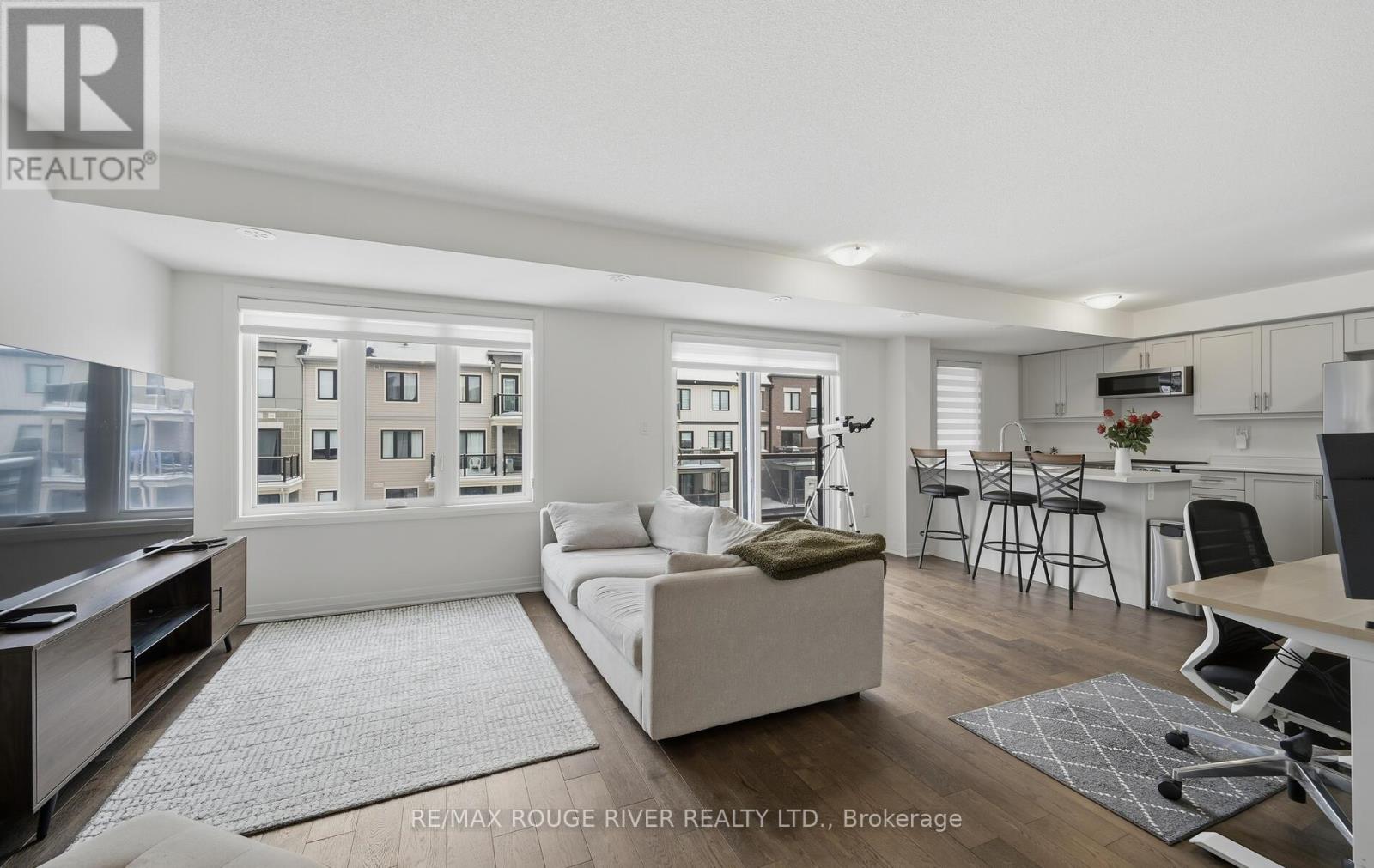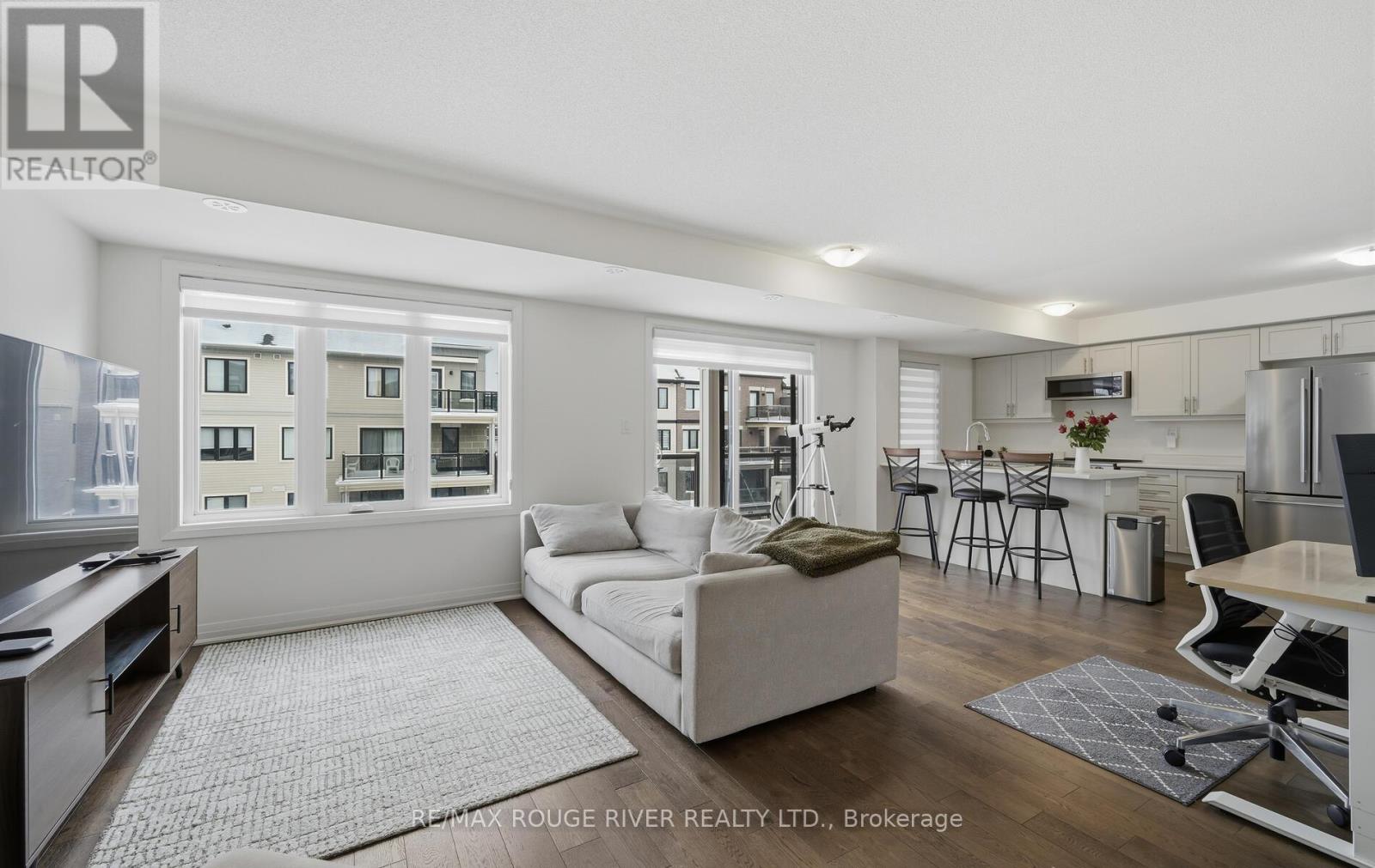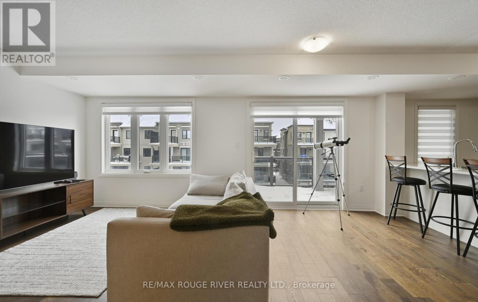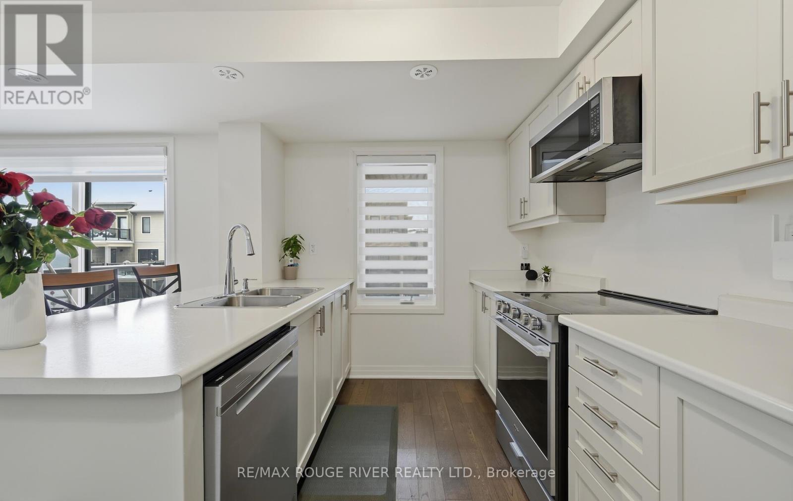 Welcome to this lovely Bowmanville lakeside community with walking/biking trails, views of Lake Ontario and convenient highway access nearby. This newly built stacked condominium townhouse features two walk-out balconies. A spacious kitchen with stainless steel appliances, breakfast bar and a pantry to flow with the open concept floor plan. The living room area is a bright and comfortable space with gorgeous hardwood floors, large windows and sliding door access to your first balcony. Come upstairs to the primary bedroom with a walk in closet and 3 piece ensuite. A second bedroom with access to your second balcony. 4 piece third level main washroom. This condominium also provides two parking spaces. One in the garage and one in the driveway. (id:4555)