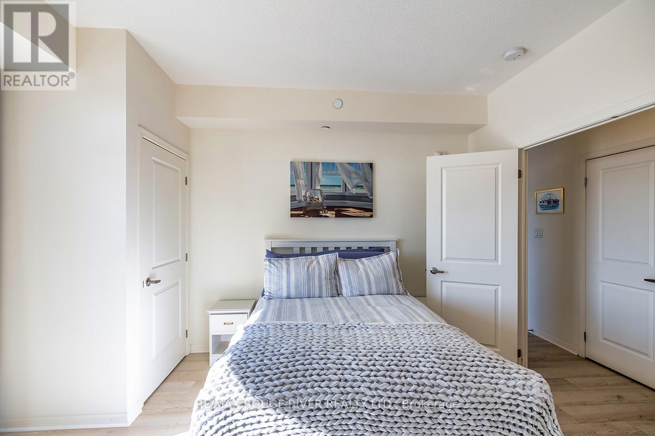 Welcom Home To This Stunning Executive 1 Bedroom 1 Bathroom Condo In The Desirable Aspen Springs Area! This Unit Is Clean and Bright And Features An Immaculate Kitchen With Granite Counters, Island Breakfast Bar, And Newer Stainless Steel Fridge, Stove, And Built In Microwave!! Upgraded Luxury Vinyl Plank Flooring!! French Doors Lead Into A Large Primary Bedroom With His And Hers Closets, Walk Out To The Balcony, And Semi-Ensuite Access To The Bathroom!! Bask In The Majestic South West Views Of Lake Ontario While Sitting On Your 22 Foot Balcony! Gorgeous Sunsets!! Plenty Of Natural Light With The South/Western Exposure! Elevator Access! Exclusive Parking Space Close To The Main Entrance! Amenities Include: Gym, Party Room, Library, Hobby Room. Courtyard Park! This Unit Is A Must See! OPEN HOUSE SAT FEB 14TH 2-4PM (id:4555)