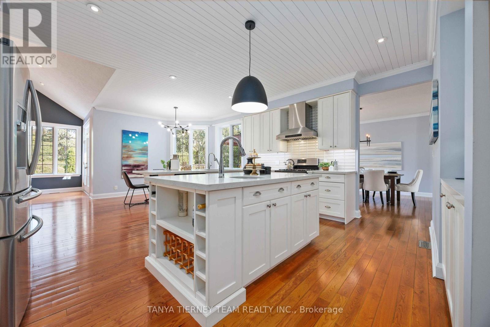 Truly one-of-a-kind, this custom 4+2 bedroom, 5-bathroom estate offers over 6,500 sq ft of luxurious living space on a spectacular 245-ft deep treed ravine lot-an opportunity that is nearly impossible to replicate today, as you could not build a home of this size or acquire a property like this for under $2 million. Designed with multi-generational living in mind, this home features a spacious open-concept layout, a fully finished walkout basement with separate entrance, and flexible living areas ideal for extended family or in-law accommodation.The gourmet kitchen is the heart of the home, complete with quartz countertops, oversized island, walk-in pantry, built-in coffee bar, and breakfast area overlooking a private backyard retreat. The upper level includes 4 large bedrooms and a media room, while the basement offers 2 additional bedrooms, a large rec room, office, spa-like bathroom, and cozy in-floor hydronic heating-perfect for independent living with comfort and privacy.Step outside to your own resort-style oasis: an elevated deck with ravine views, covered walkout patio, in-ground pool, jacuzzi hot tub, built-in fire pit, gas BBQ hookup, and a handcrafted wood-burning pizza oven. Whether entertaining or unwinding, this backyard has it all.An attached 882 sq ft 3-car garage with heated workshop, garden door access, and ample parking adds function to elegance. Located minutes from Hwy 407 and steps to top schools, parks, big box stores, Cineplex, and more, this exceptional home blends space, style, and multi-generational living in one of Clarington's most desirable settings! (id:4555)
