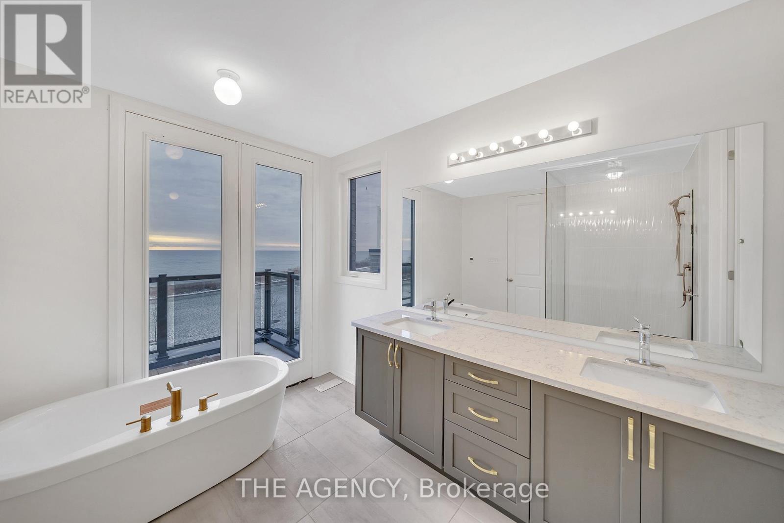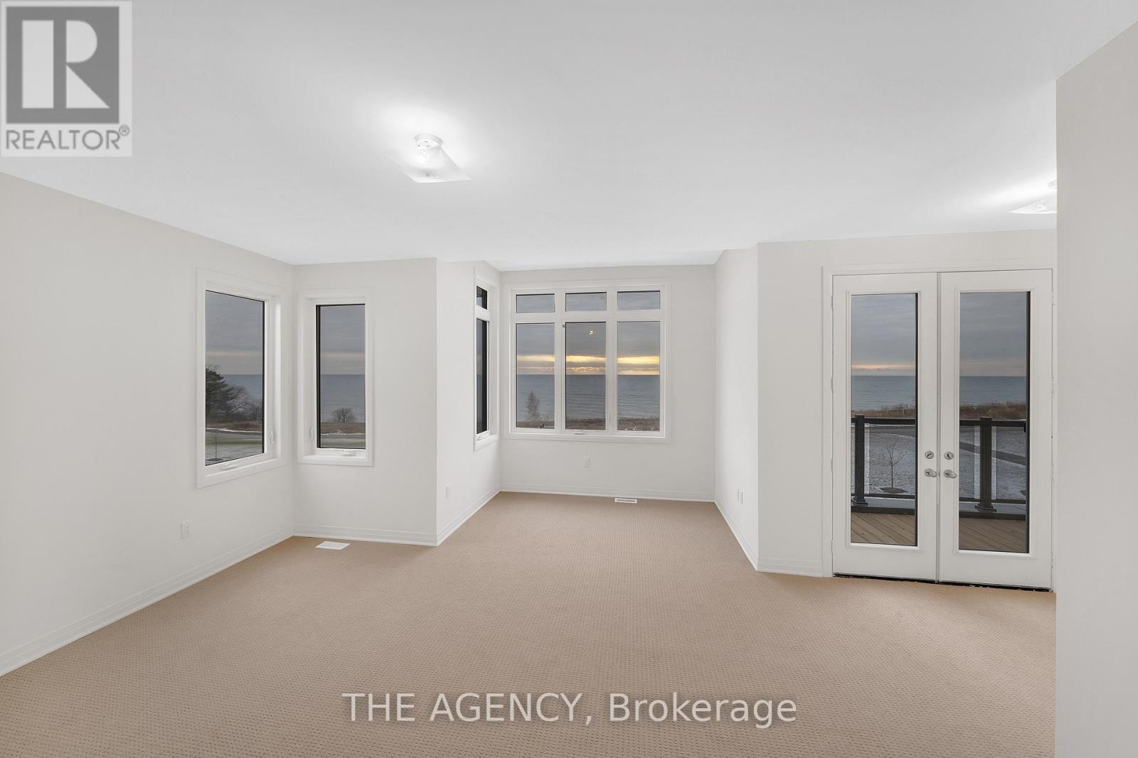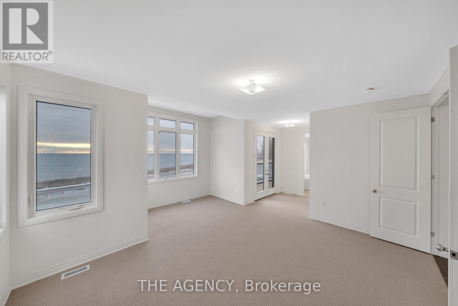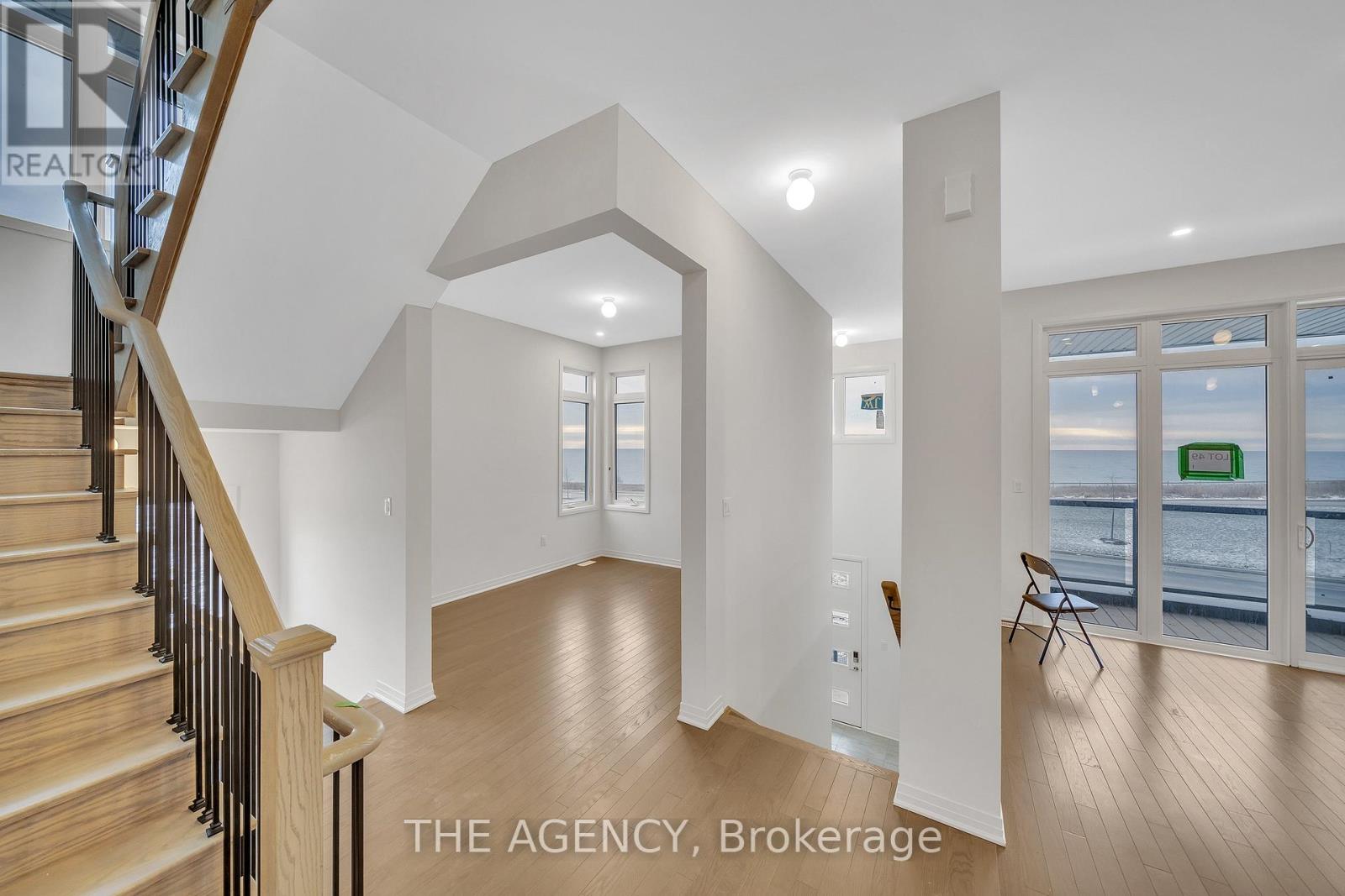 Welcome to 275 Port Darlington Road--the most premium lot in the neighbourhood! A rare corner location with breathtaking, unobstructed views of Lake Ontario from your private rooftop terrace and tranquil pond views from the side. This luxurious, beach-inspired, fully detached waterfront home offers over 4,100 sq. ft. of beautifully designed living space with 4+2 bedrooms, 6 bathrooms, a private in-home elevator, and 6 parking spots making it comfortable for everyday living and effortless entertaining. The open-concept main floor impresses with soaring 10'6" ceilings, creating an airy, sun-filled atmosphere perfect for relaxing, while the modern kitchen is equipped with built-in stainless steel appliances and blends seamlessly into the stylish living and dining areas. Each bedroom upstairs enjoys its own ensuite bath, with 9' ceilings adding to the sense of space and comfort. A convenient second-floor laundry room adds everyday ease. The finished walk-out basement includes a bedroom, full bath, and spacious recreational area--ideal for lounging with guests or a home gym. Located in a quiet, family-friendly community, you'll enjoy easy access to Port Darlington's scenic trails, beaches, parks, and marina, along with close proximity to HWY 401, shopping, and restaurants. This is a rare opportunity to own in one of GTA's final waterfront developments and enjoy the best of lakeside living. **Previous Photos Used; Sod Already Installed** (id:4555)