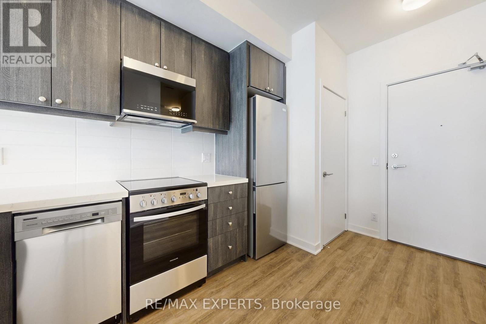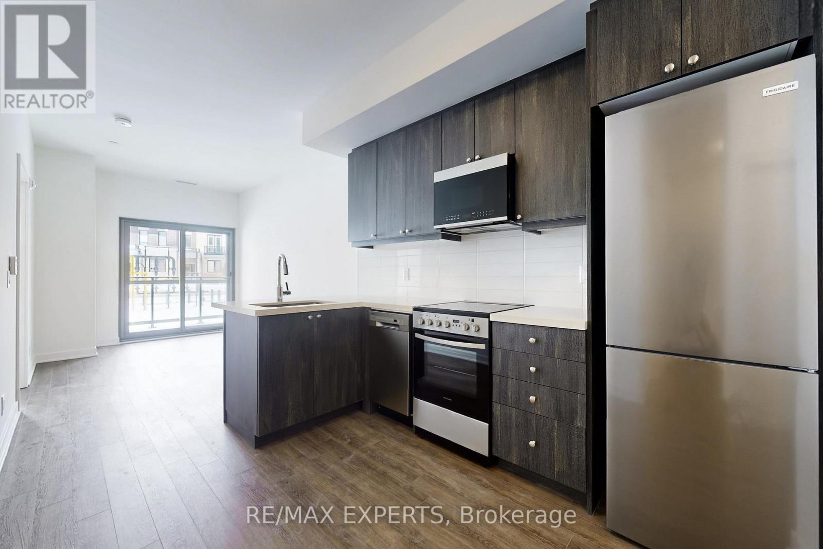 Be the first to enjoy this brand-new 1-bedroom plus den suite at MODO Condominiums, ideally located in the heart of Bowmanville. This well-designed unit offers a bright, open-concept layout with large windows and a private balcony that allows for plenty of natural light, creating a comfortable and inviting atmosphere throughout the living space. The contemporary kitchen is equipped with quartz countertops and stainless steel appliances, providing both style and functionality while seamlessly connecting to the main living and dining area-perfect for everyday living or entertaining. Vinyl flooring runs throughout the suite for a clean, modern look, and the convenience of in-suite stacked laundry adds to the practicality of the home. The separate den offers excellent flexibility and can easily be used as a home office, reading nook, or additional sitting area depending on your needs. Residents of the building have access to a variety of amenities, including indoor and outdoor lounge spaces, a fully equipped fitness centre, and a residents' boardroom suitable for meetings or remote work. The unit also comes complimentary rooftop barbeque internet service for added value. Located just steps to shops, cafes, parks, everyday conveniences, Highway 401, and the future Bowmanville GO Station, this suite offers an excellent opportunity to lease in a growing and well-connected community. A fantastic option for anyone looking for modern living in one of Bowmanville's newest developments. (id:4555)
