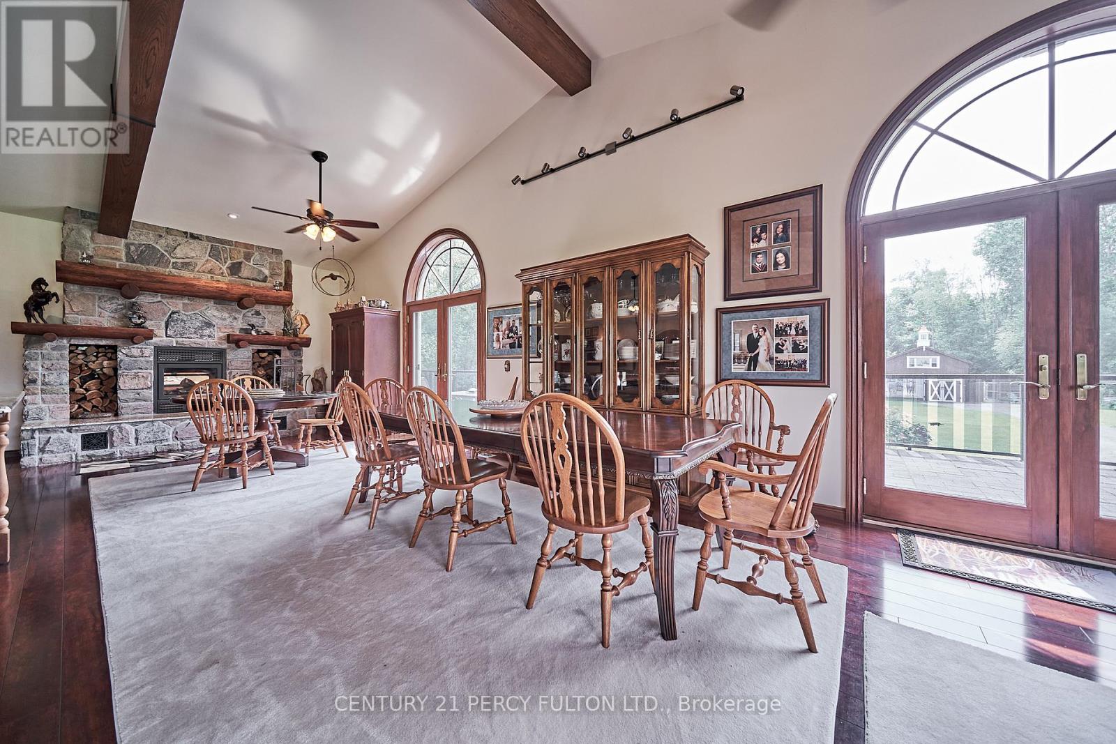 Experience rural charm in this spaciuos bungalow, just 40 minutes east of Toronto via 401 and 407. The open-concept design with three wood-burning fireplaces creates a warm ambiance. The estate offers versatile living space suitable for accommodating multiple generations under one roof. Enjoy flower and vegetable gardens, a stream on the east side of the property and two ponds fed by the artesian well. Outdoor spaces invite you to savour the gorgeous environment, ideal for creating lasting memories with your loved ones. Ample parking for many vehicles, a two-storey barn with a custom built-in garage and five out buildings cater to storage and hobby farm needs. New propane furnace, air conditioner, septic system and upgraded 200 amp electrical service ensure modern comfort and functionality for all family members. Large laundry and tool rooms enhance daily functionality, making household tasks easier to manage. The four spacious bedrooms provide the convenience for a multi-generational household. (id:4555)