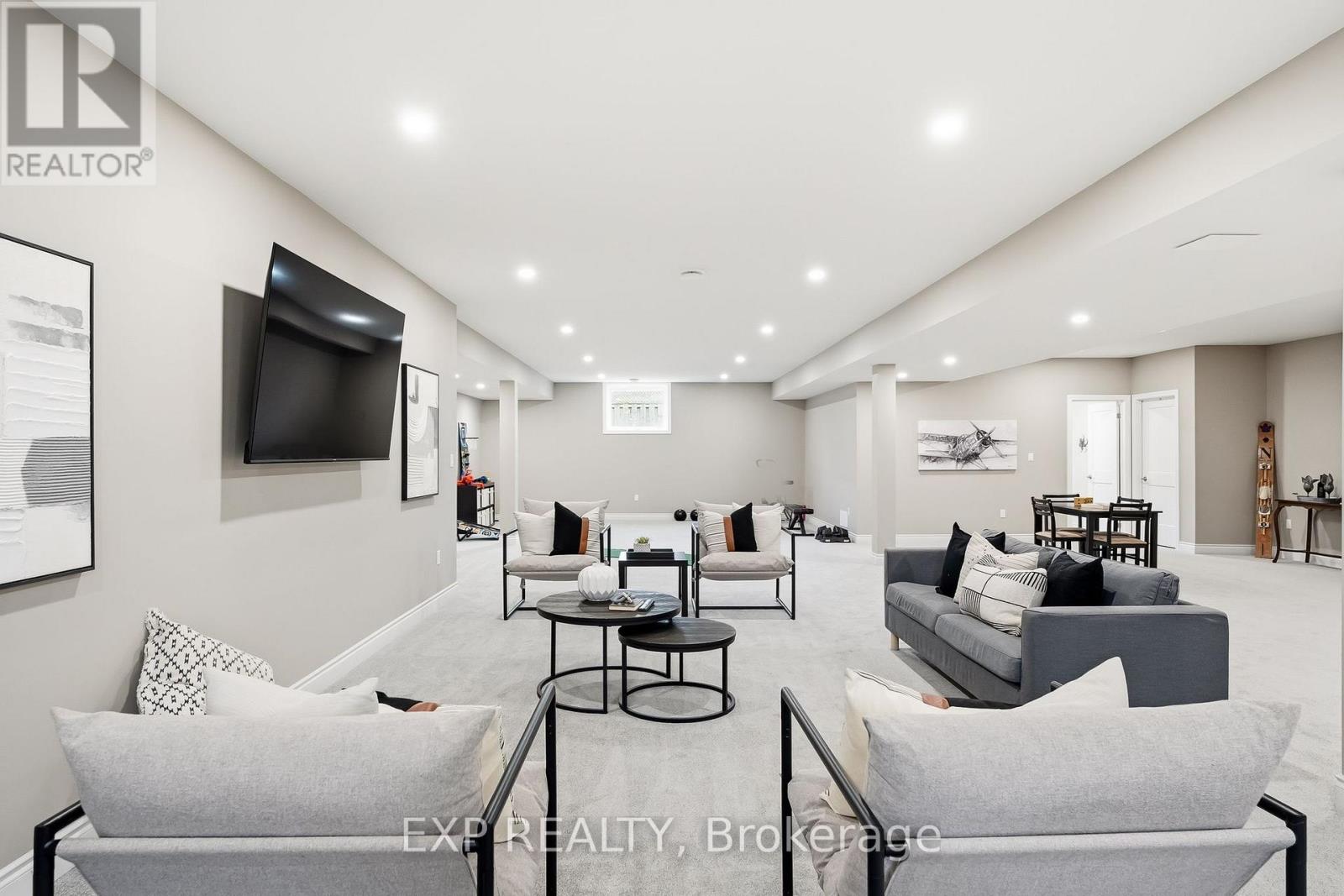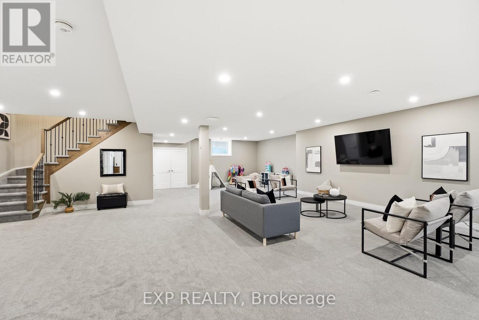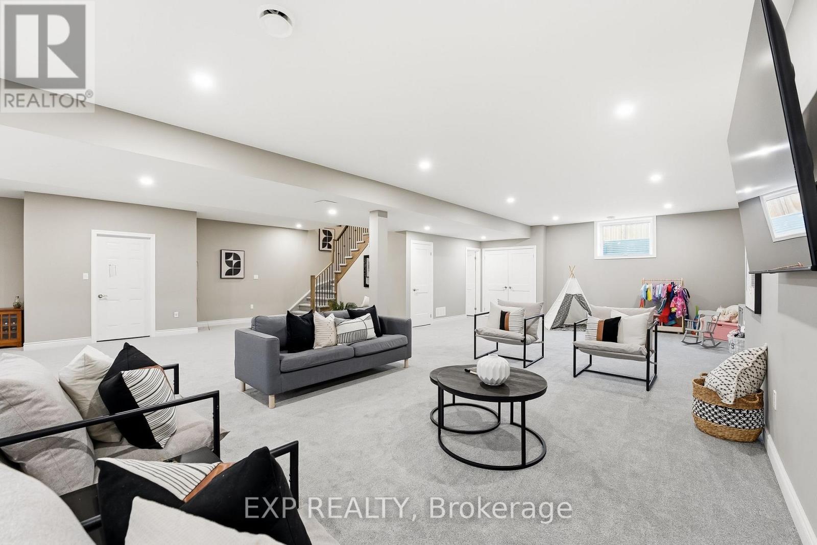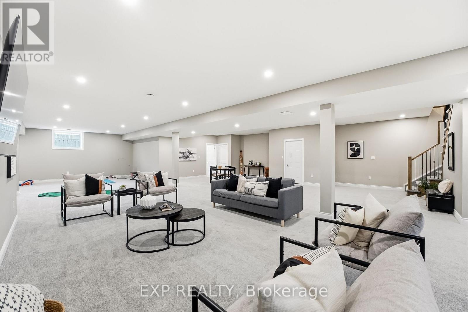 Set on a large fenced corner lot with a quiet rural feel just minutes to town, this brick bungalow offers 3+1 bedrooms, 4 baths, and the breathing room, finish level and flexibility buyers rarely find in one package. The main floor offers approx. 2,483 sq ft per MPAC, soaring vaulted ceilings, a stunning open-concept living room, a gas fireplace with stone surround and built-ins, and a showpiece kitchen with quartz counters, an oversized island for four, stainless steel appliances, a beverage station and walkout to the covered back porch. The primary suite feels like a retreat with porch access, dual walk-in closets and a spa-like ensuite with double vanity and glass shower. Two additional bedrooms, a 5-piece main bath, dedicated office/flex room, main-floor laundry/mudroom and a 2-piece powder room complete the level. Downstairs, the fully finished basement with 9-ft ceilings adds a huge rec room, fourth bedroom and full bath. Outside, enjoy the expansive covered rear concrete porch, oversized double garage, parking for approx. 10 in the driveway, a garden shed and a wide backyard with room to host, play and unwind. Built in 2024 with updated septic and landscaping sod. Do not miss out on this stunner of a home! (id:4555)