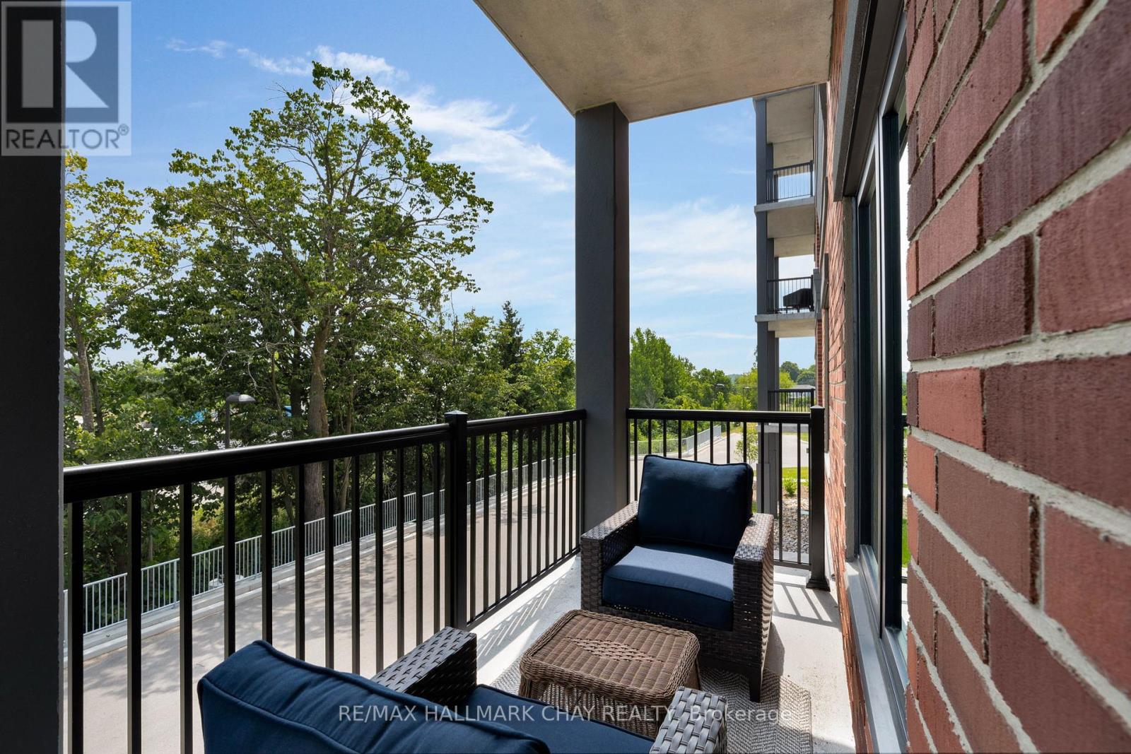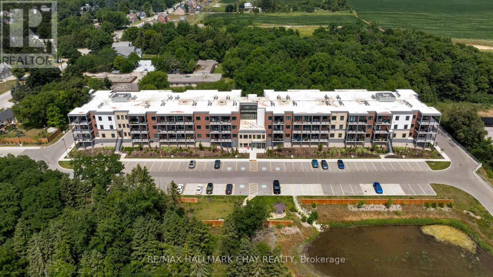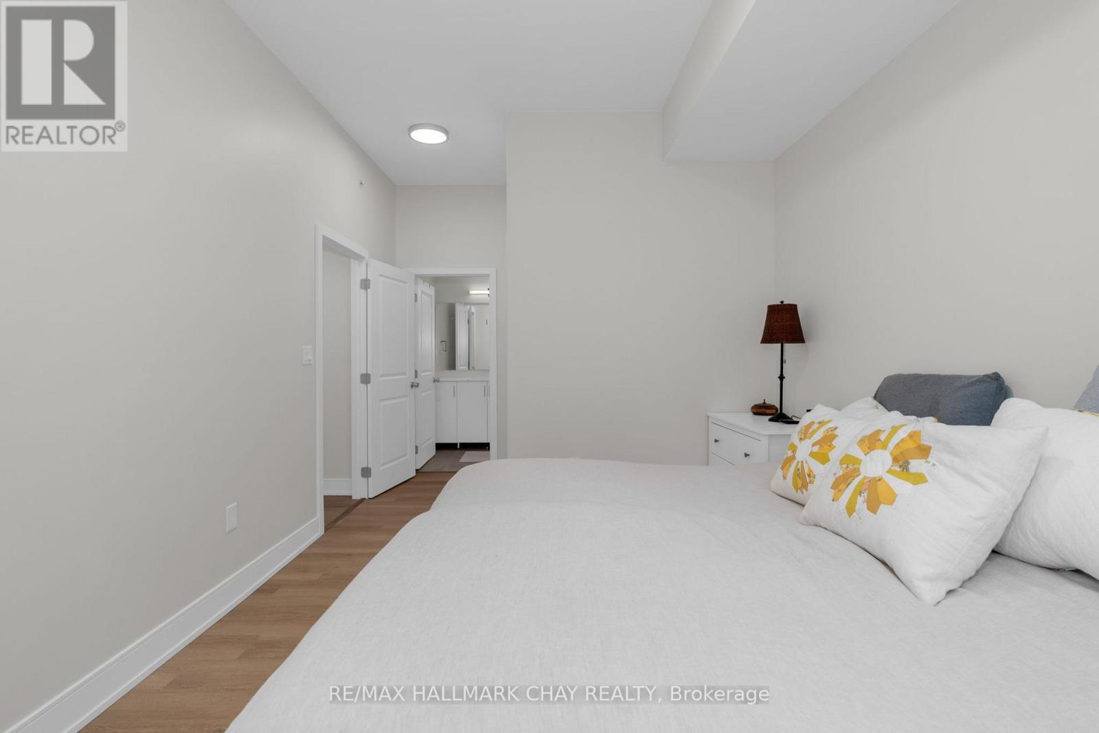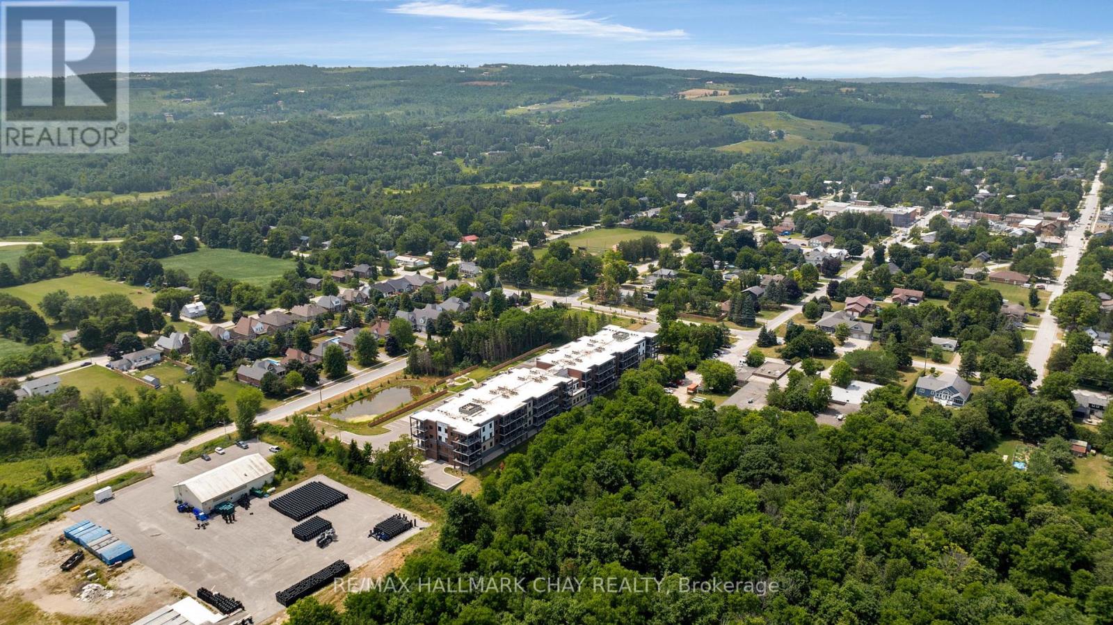 Enjoy the ease of condo living in the heart of Creemore, a vibrant four-season village known for its charm, trails, golf, and ski hills. This premium 3-bed, 2-bath corner unit at The Brix offers nearly 1,400 sq ft, one of the largest floor plans in the building, complete with an oversized nearly 300 sq ft private balcony overlooking a peaceful forest backdrop. Bright and beautifully designed, this suite features luxury vinyl plank flooring, a chef-inspired kitchen with an oversized island, and an open-concept layout ideal for entertaining. The primary bedroom includes a walk-in closet and private ensuite, while a second full bathroom offers semi-ensuite access for guests or family. Two owned parking spaces are included, along with access to modern amenities such as a fitness room and a stylish party space for gatherings. Whether you're looking to downsize in style or enjoy a weekend retreat, this move-in ready suite offers the perfect blend of space, comfort, and low-maintenance living in one of Ontarios most desirable small towns. (id:4555)