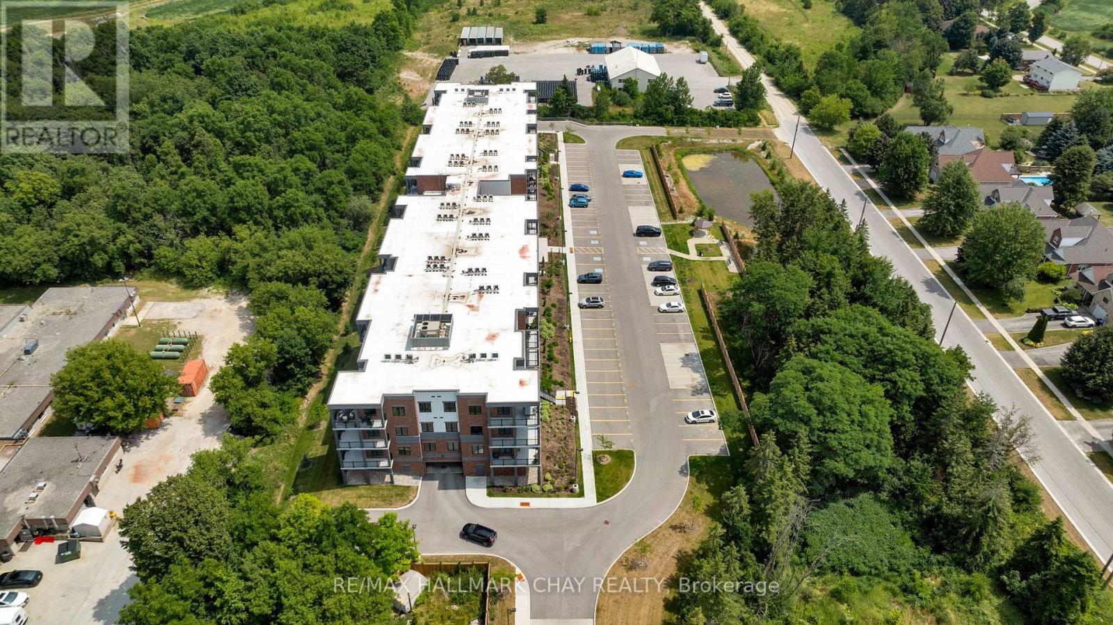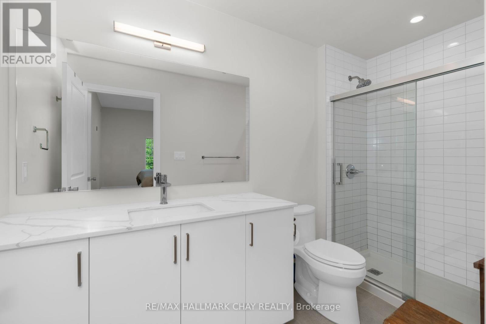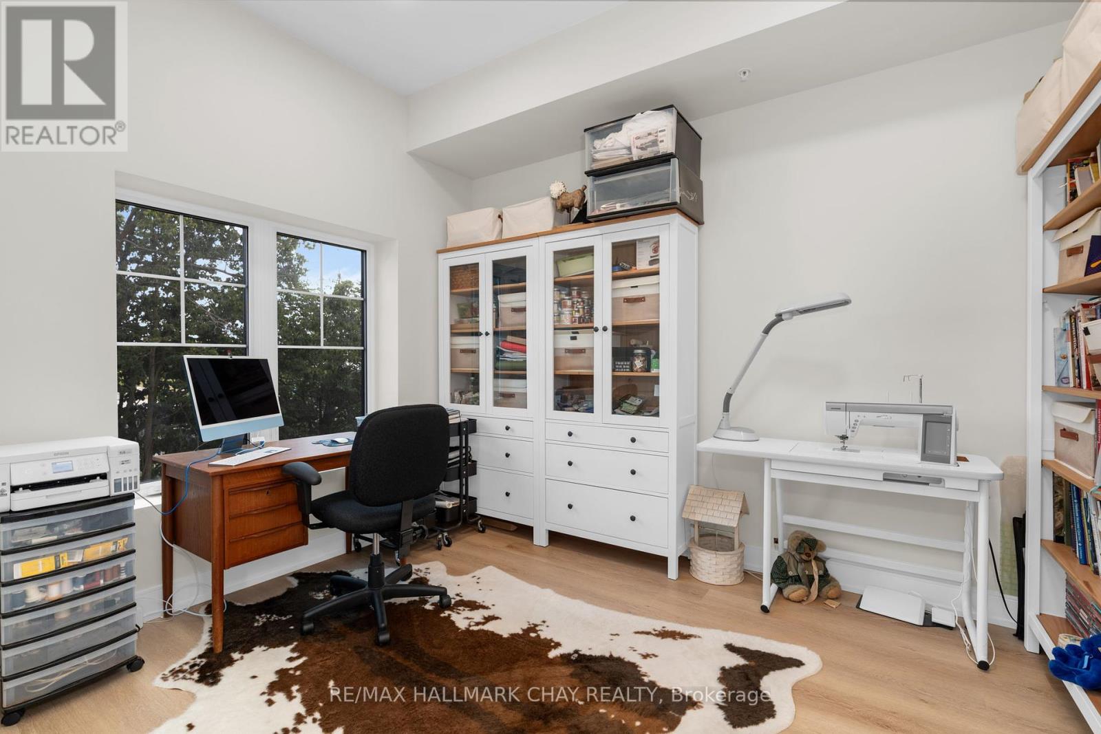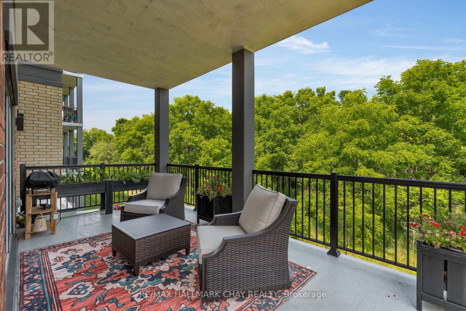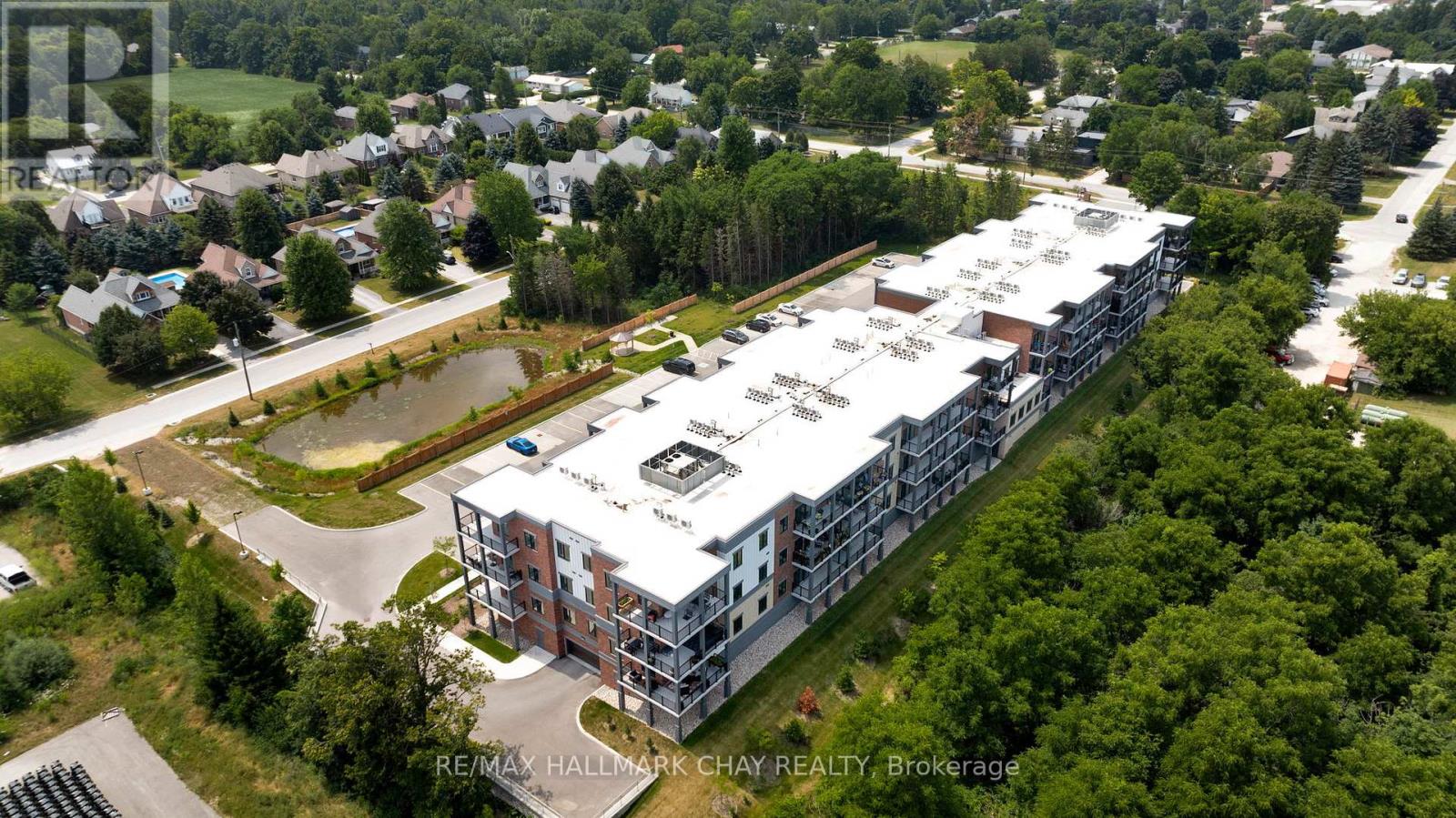Enjoy the ease of condo living in the heart of Creemore, a vibrant four-season village known for its charm, trails, golf, and ski hills. This premium 3-bed, 2-bath corner unit at The Brix offers nearly 1,400 sq ft, one of the largest floor plans in the building, complete with an oversized nearly 300 sq ft private balcony overlooking a peaceful forest backdrop. Bright and beautifully designed, this suite features luxury vinyl plank flooring, a chef-inspired kitchen with an oversized island, and an open-concept layout ideal for entertaining. The primary bedroom includes a walk-in closet and private ensuite, while a second full bathroom offers semi-ensuite access for guests or family. Two owned parking spaces are included, along with access to modern amenities such as a fitness room and a stylish party space for gatherings. Whether you're looking to downsize in style or enjoy a weekend retreat, this move-in ready suite offers the perfect blend of space, comfort, and low-maintenance living in one of Ontarios most desirable small towns. (id:4555)