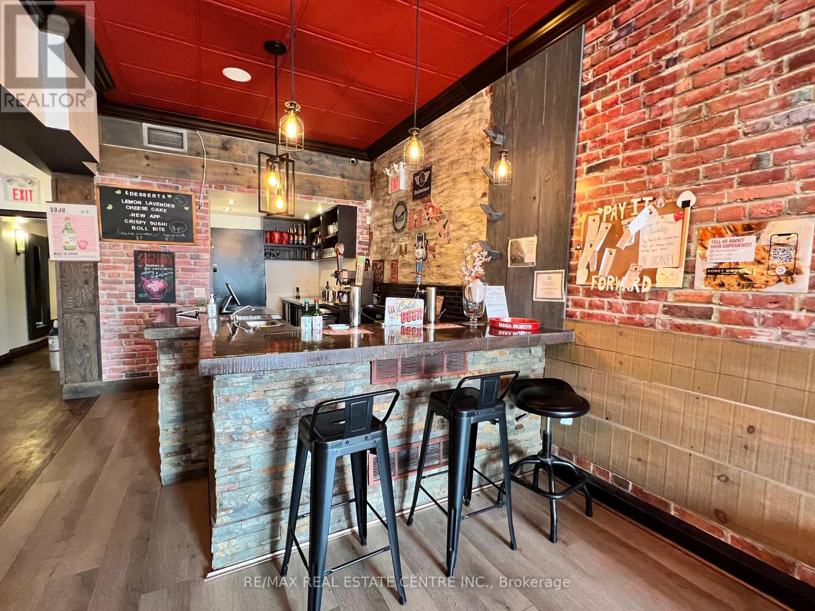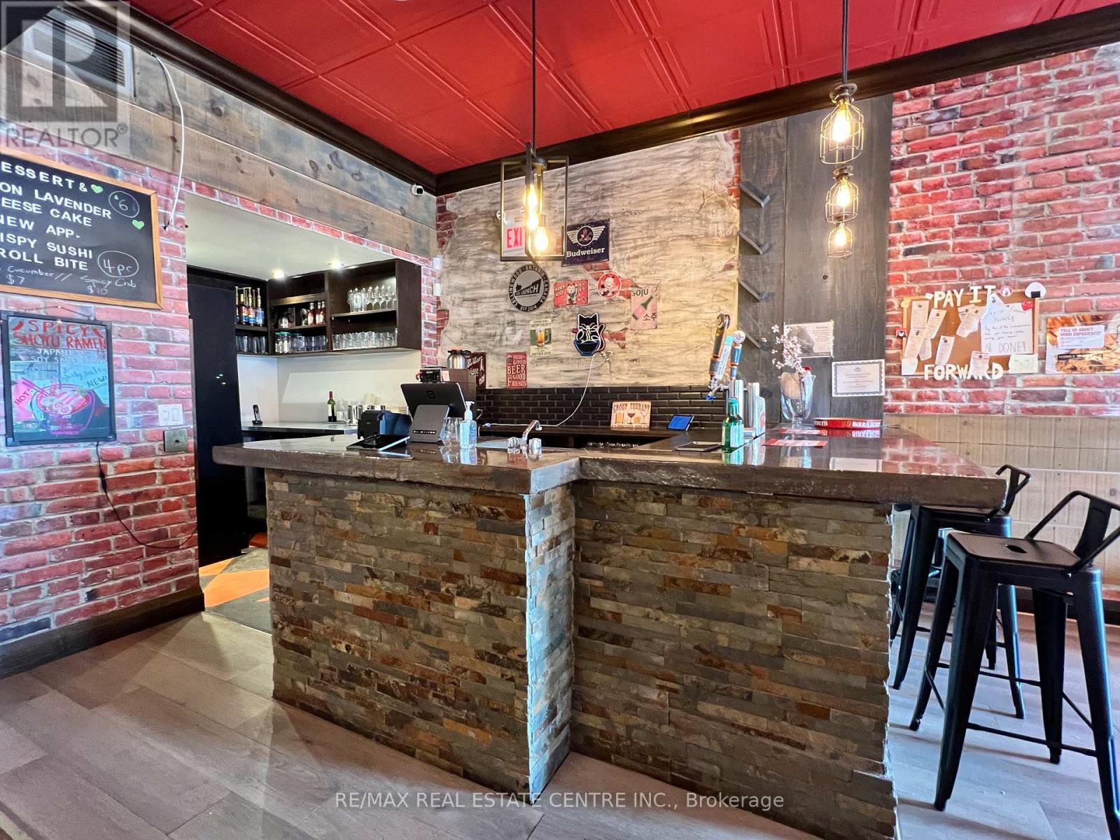 Ever dreamt of being your own boss and owning your own RESTAURANT? Well this fantastic turnkey restaurant facility awaits in the heart of downtown Stayner! Perfectly situated in the center of town, your signage becomes a full-time BILLBOARDlocated on a high-traffic main street with nonstop visibility. This fully equipped and furnished restaurant is just minutes from Blue Mountain, Collingwood, and Wasaga Beach, making it a popular stop for both locals and tourists alike. The 2,081 sq/ft space includes seating for 53 guests, a custom bar, an exterior walk-in cooler, basement storage, and a 1.5-car garage for extra storage. The stunning, chef-designed kitchen is built for efficiency, featuring an 11-ft hood with fire suppression system, fryers, griddle, pasta cooker, walk-in fridge, gas stove, dishwasher, and more.Includes a full list of chattels to cover all your startup needs. Now is the perfect time to make your dream a reality and become part of a fast-growing, vibrant community before the town really takes off! ($4000 Lease + $800 TMI monthly) Tenant will be responsible for utilities power, water, gas and communication and snow removal (id:4555)