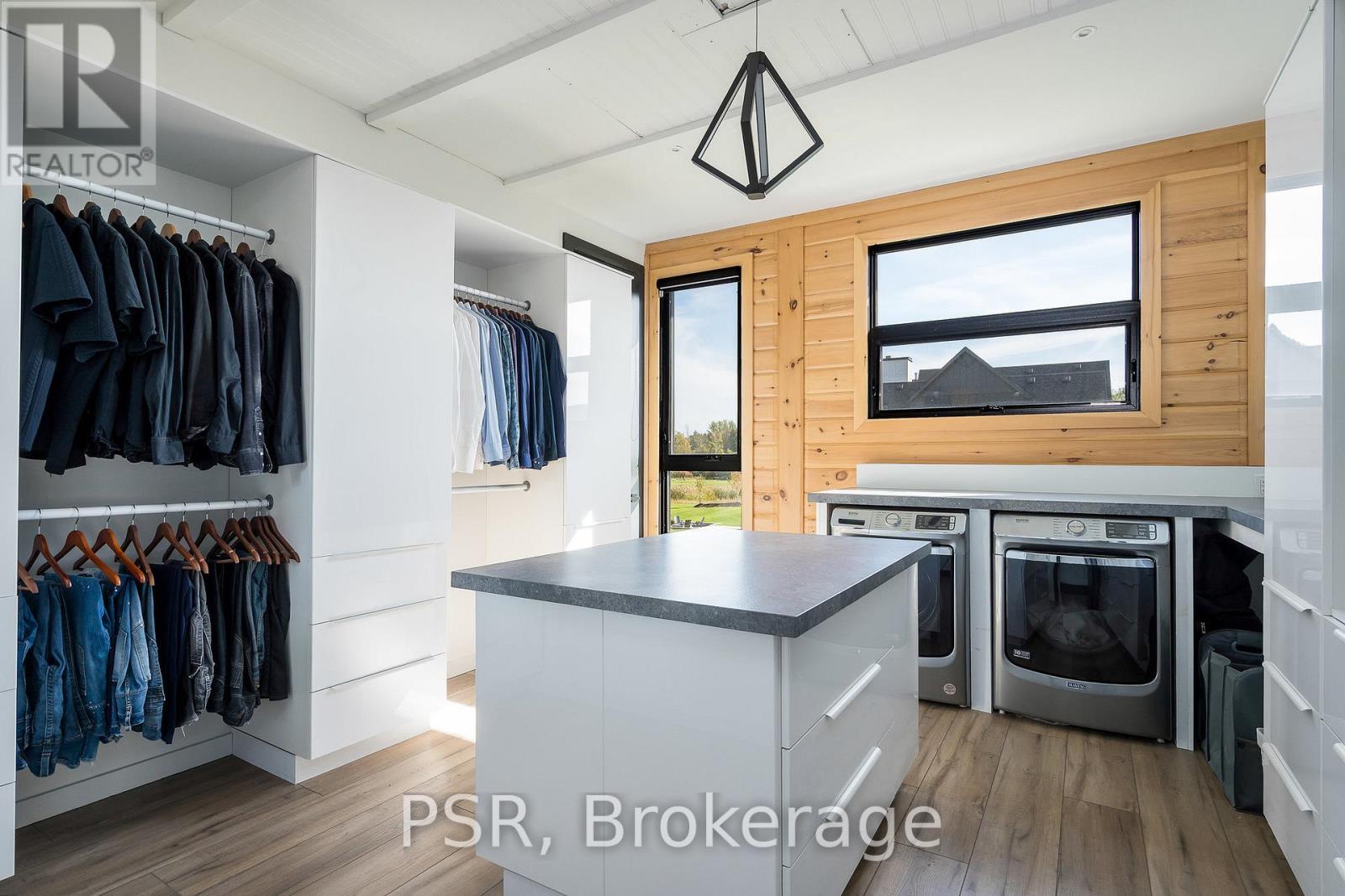 Welcome to the extraordinary living experience offered by 4 Raintree Court, nestled in the heart of Ontario's ski country. This luxurious home in the exclusive Windrose Estates combines elegance and sophistication with functional amenities for today's modern families. This custom-built home offers five spacious bedrooms, seven bathrooms, a home theatre, fully equipped gym, sauna, hot tub and heated pool over 8,600 square feet of interior space on a one-acre lot. High ceilings, custom lighting design, multiple skylights and walls of windows work with the wood accent walls to create a contemporary space that is flooded with light. In-floor radiant heating keeps the space cozy and warm throughout ski season as you sit by the fireplace watching the snow fall. The grand kitchen and dining area serve as the heart of this home, with soaring 23ft ceilings and the 10ft high by 16 ft wide sliding doors overlooking the backyard and 10-acre parkland beyond. Equipped with top-of-the-line appliances and designer counters and finishes, the kitchen is a perfect space for those who love to cook and entertain. The outdoor entertainment area includes a new outdoor kitchen, conversation area featuring patio heaters, heated pool and a waterfall that cascades from the upper roof into the pool. The property offers stunning mountain views of Osler Bluffs and Blue Mountain which can be enjoyed from throughout the home. Both resorts are less than ten minutes from the estate, as is downtown Collingwood. Simcoe County is known for its vibrant community atmosphere and natural beauty. From hiking trails to farmers' markets and local festivals-there's always something to see or do here. Notably, Clearview Township allows you to snowmobile or side by side directly out of your own property to the trails located right in the neighbourhood. 4 Raintree Court is more than just a house-it's a lifestyle destination that combines stylish luxury living within your own personal sanctuary. (id:4555)