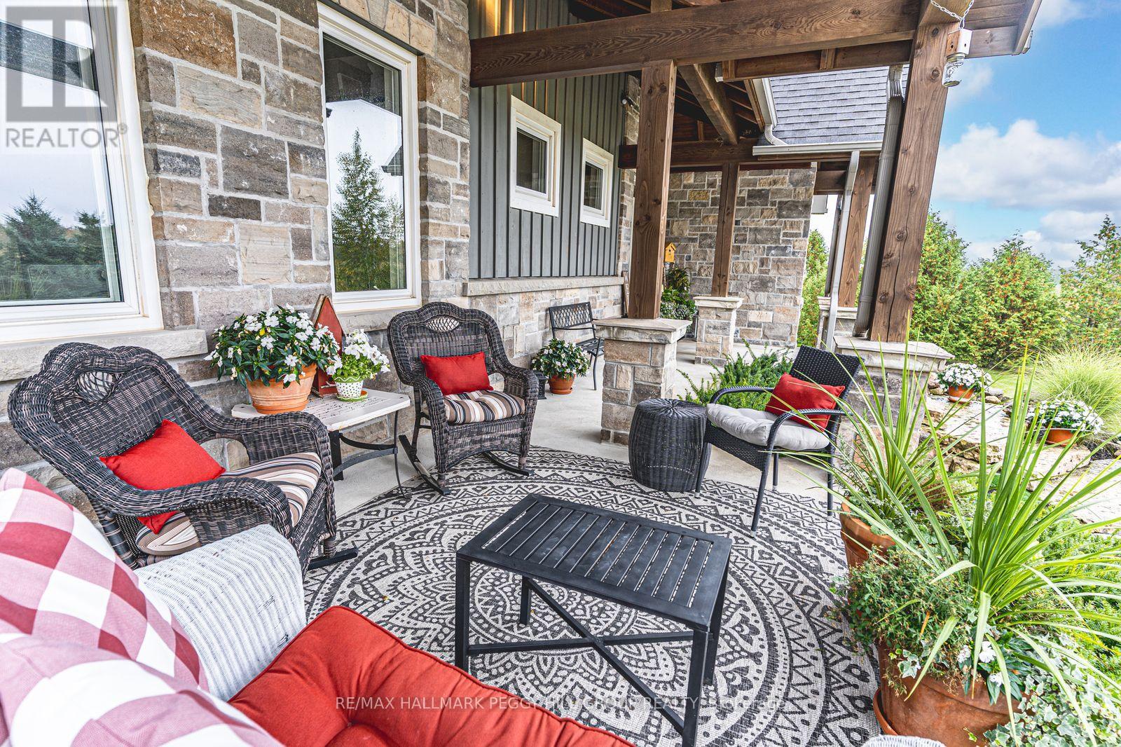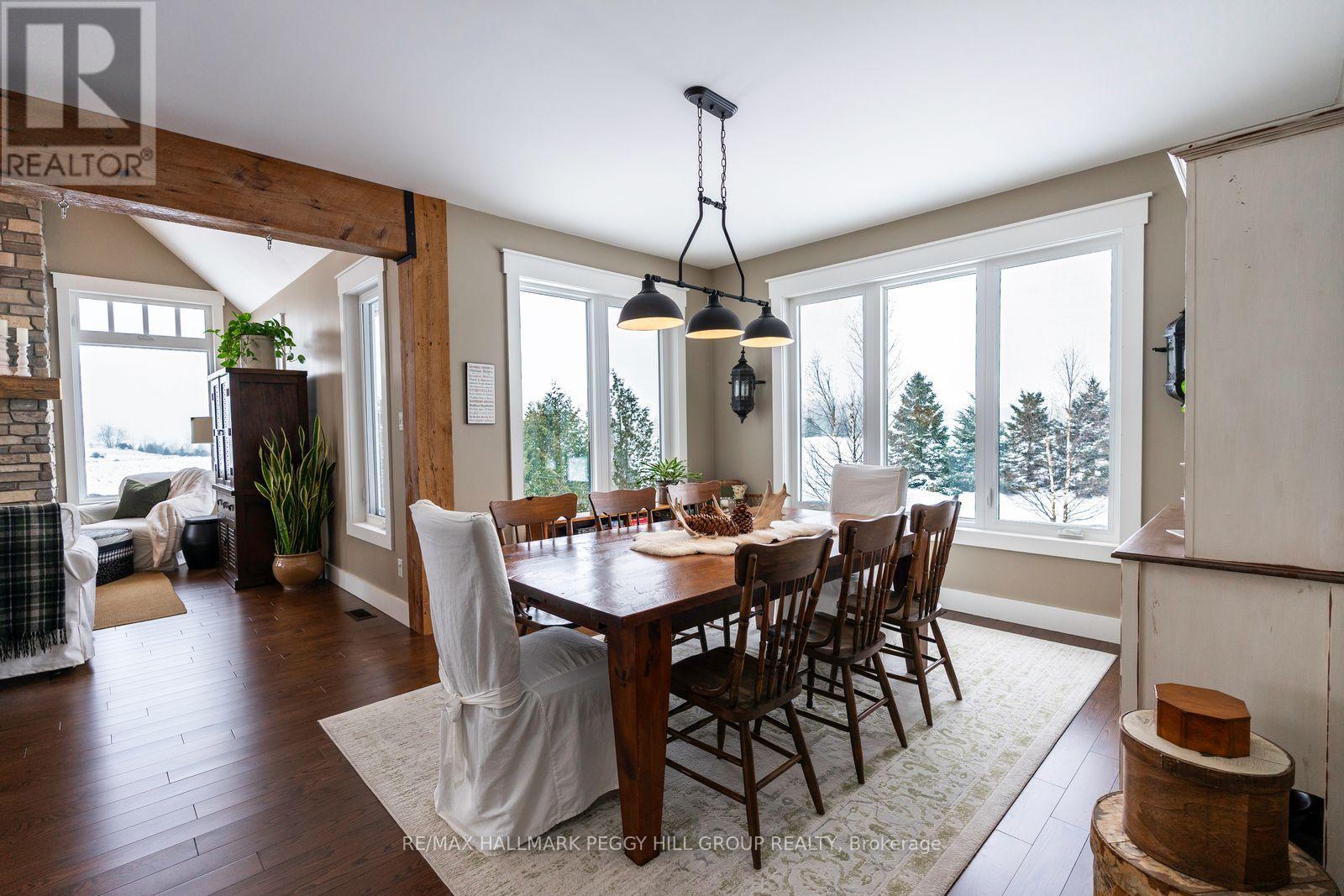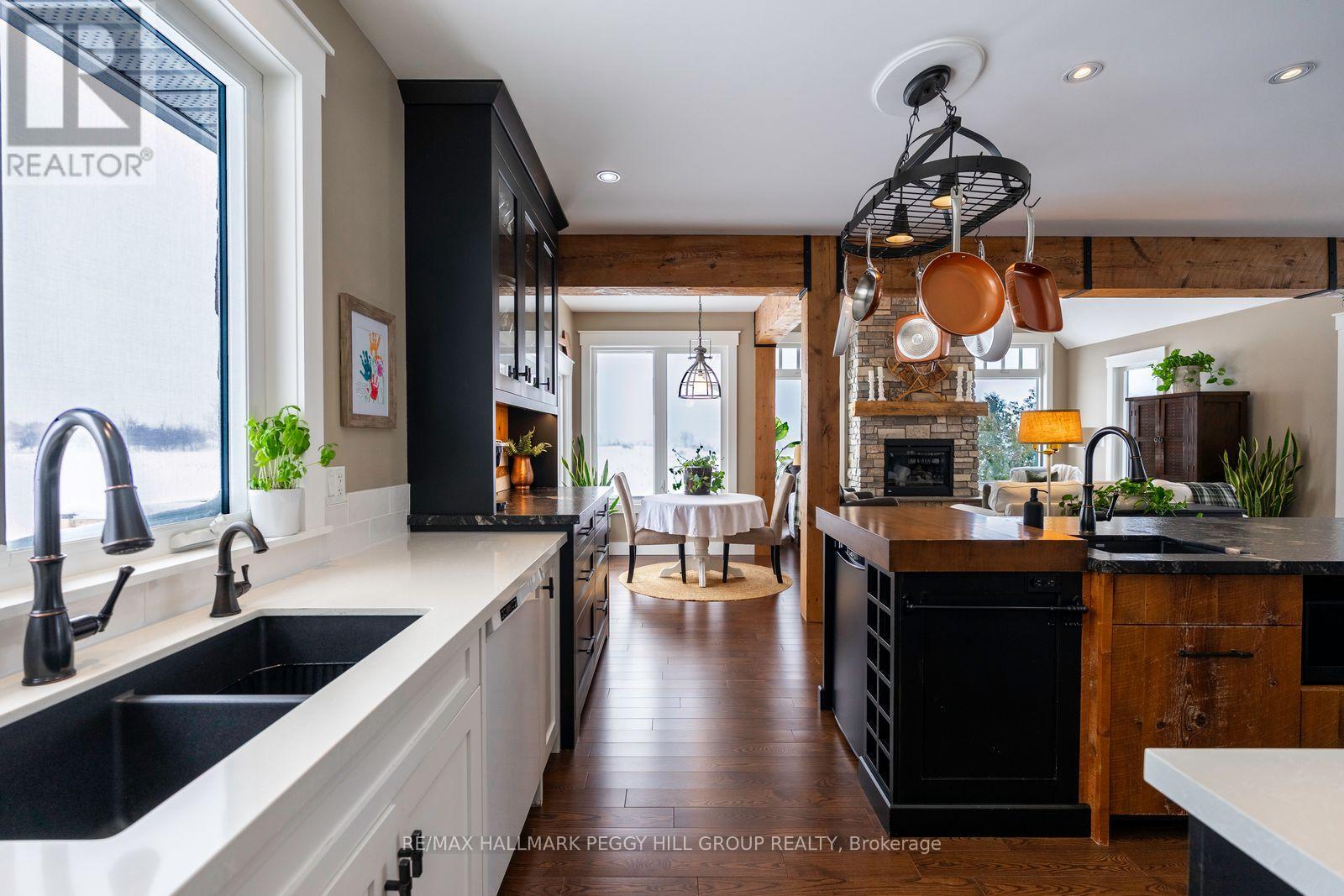 SOPHISTICATED COUNTRY LIVING IN A CUSTOM HOME IN SOUGHT-AFTER LOCATION ON SPRAWLING ACREAGE WITH A SEPARATE DETACHED SHOP, & A 2-BEDROOM INDEPENDENT SECOND LIVING AREA FOR MULTIGENERATIONAL LIVING! At the end of a long private driveway, you'll find a 2.47-acre estate offering over 4,300 fin sq ft, an attached 2 car garage, a 3 car shop, and a separate self-contained living area. The secondary living space offers a kitchen, living room with a fireplace, 2 bedrooms, bathroom, laundry, and heated floors, making it ideal for multigenerational living. This custom bungalow showcases a stone and board-and-batten exterior with timber beams, and a covered porch, while the 30 x 50 ft shop provides 100 amp service, 3 oversized bay doors, including a 12 x 12 ft door, and a 855 sq ft unfinished loft above. Inside the main residence, solid ash hardwood floors lead through an open concept layout featuring a magazine-worthy kitchen with an Aga 6-burner range and statement hood, open shelves, contrasting cabinets, an island, and a walk-in pantry. A dining room and bright breakfast area overlook the property, with the breakfast nook offering a walkout to the stone patio. The great room stands out with 16 ft vaulted ceilings and a floor-to-ceiling stone fireplace, plus an approx 750 sq ft unfinished loft above with potential for extra bedrooms or a family room. The primary suite features a barn door leading to 2 walk-in closets and an ensuite with a freestanding tub, dual vanity, shower with built-in niches, and a separate water closet. The finished lower level feels open and bright, with radiant in-floor heating, vinyl plank flooring, a large recreation room with a wood stove and wet bar, and 2 bedrooms connected by a shared ensuite. Located near Devil's Glen Country Club and Bruce Trail access, with Collingwood and Wasaga Beach approximately 25 mins away, and Blue Mountain under 30 mins, this #HomeToStay captures everything people imagine when they envision elevated country living. (id:4555)
