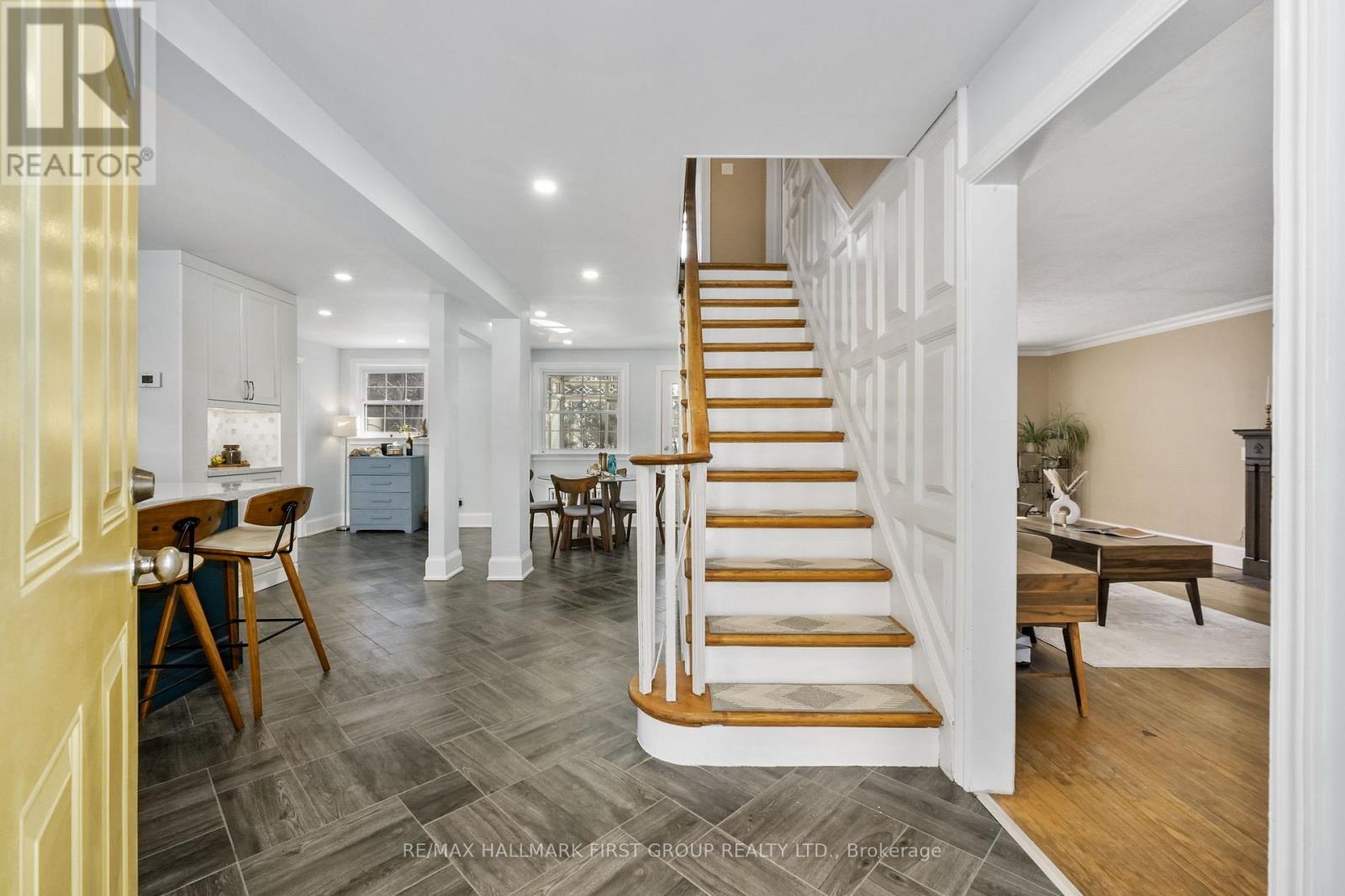 Just steps from Cobourg Beach and Victoria Park, this spacious family-friendly home perfectly combines modern design, classic charm, and an unbeatable location. The bright, carpet-free main level showcases a stunning open-concept layout with large windows at both ends, flooding the space with natural light. The inviting living room features an elegant fireplace with an ornate mantel. The updated kitchen offers a large island with sleek countertops, an undermounted sink, breakfast bar, stainless steel appliances, tile backsplash, ample cabinetry, and a coffee bar. The dining area shines with built-in cabinetry, detailed trim work on the stairs, and plenty of room for entertaining. A sunlit solarium extends your living space, blurring the lines between indoors and out, and creating a tranquil retreat to unwind. Upstairs, the serene primary suite offers a private ensuite, while three additional bedrooms and a full bath provide comfort for the whole family. The finished lower level adds even more versatility with a large rec room featuring crown moulding and recessed lighting, a bathroom, and a laundry room. Step outside to a fully fenced backyard designed for outdoor enjoyment. Surrounded by mature trees and lush gardens, it's a private haven perfect for summer barbecues, playtime, or quiet evenings under the stars. There's space to garden, entertain, or simply relax in your own green oasis. Enjoy the best of Cobourg living, steps from the beach, schools, parks, markets, and the incredible restaurants and shops of downtown. Don't miss this rare opportunity to own a home that blends old-world charm with modern comfort in one of Cobourg's most sought-after locations. (id:4555)