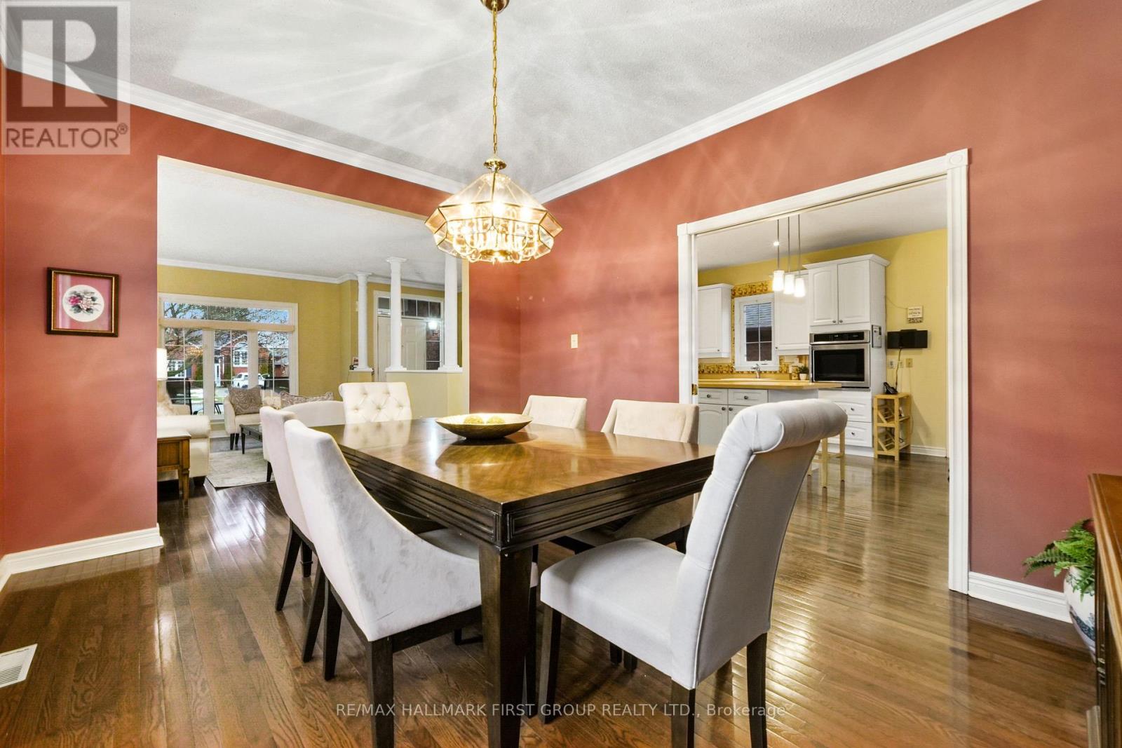 Situated just steps to Lake Ontario in a quiet, family-friendly neighbourhood, this meticulously maintained backsplit offers generous living spaces and a tranquil primary suite designed for everyday comfort. An open foyer leads into a sun-soaked living room featuring a wall of windows, a carpet-free layout, and elegant crown moulding. The large dining room provides ample space for family gatherings and entertaining, connecting seamlessly to the kitchen through glass pocket doors. The kitchen boasts a spacious layout with island prep space and storage, a separate cooktop and stainless steel wall oven, pendant and recessed lighting, and a bright breakfast room with a walkout to the side deck-perfect for BBQs and al fresco dining. Upstairs, the expansive primary bedroom includes a walk-in closet and a serene ensuite complete with a jetted soaker tub and separate shower. Adjacent to the primary bedroom is an additional 2-piece bathroom with convenient laundry facilities. The lower level features a comfortable family room with a cozy gas fireplace, recessed lighting, and a walkout to the back deck. The home also includes two additional bedrooms and two bathrooms, offering flexibility for family, guests, or home office needs. Outdoors, enjoy two decks, mature gardens, and green space framed by established trees. Conveniently located near Cobourg Beach and downtown amenities, with easy access to the 401, this home truly has it all. (id:4555)