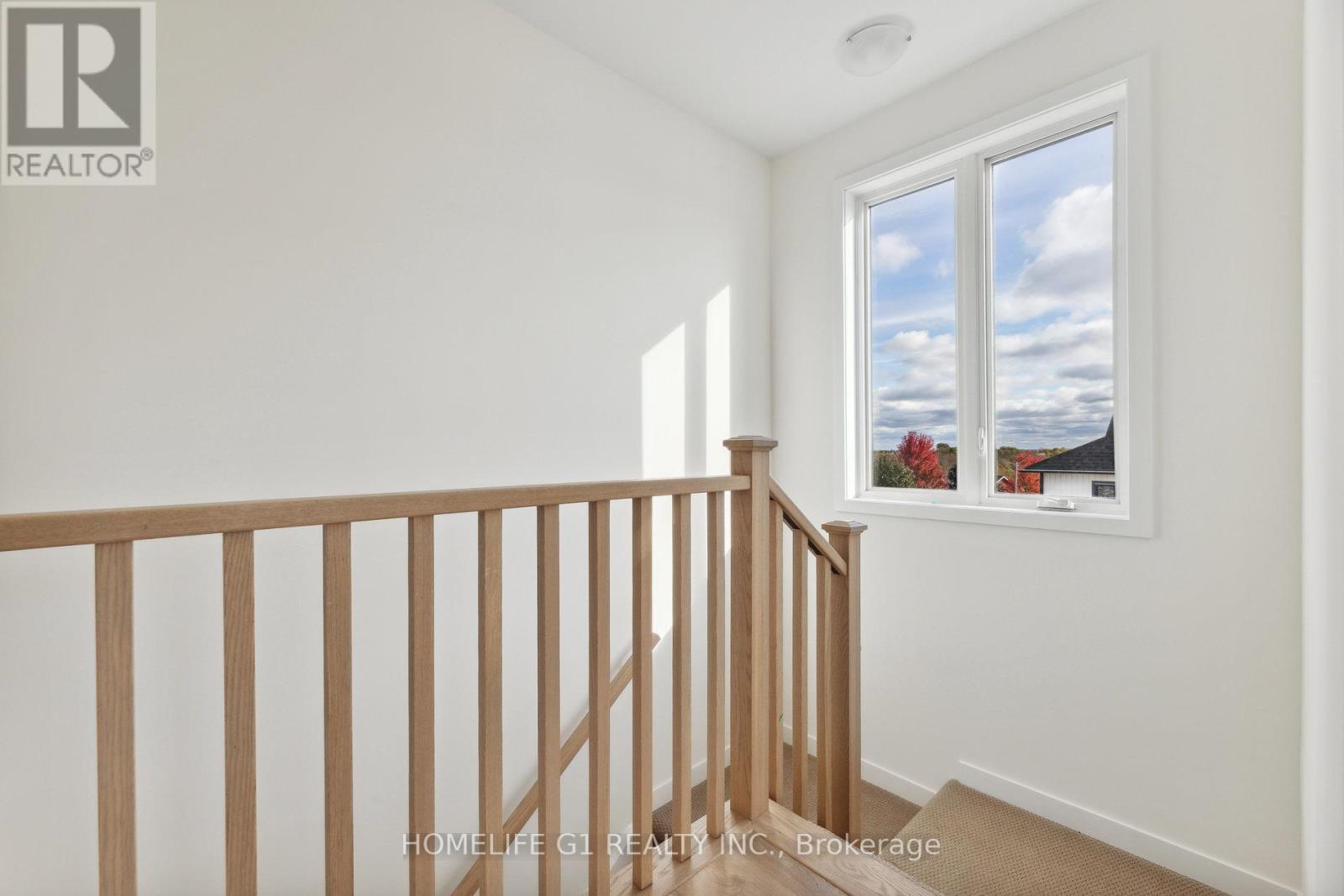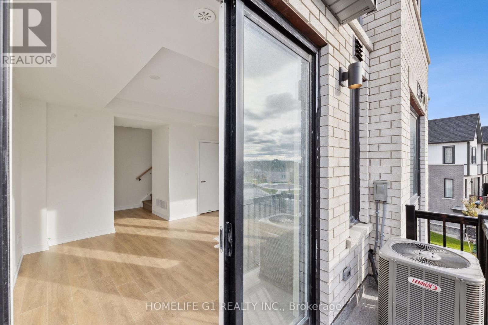 This stylish 1-year-old end-unit condo townhouse offers modern living in the heart of Cobourg, just minutes from the beautiful Cobourg Beach. With 1,124 square feet of bright, open-concept space, this 2-bedroom, 2-bathroom home features 9 ft smooth ceilings, large windows, luxury laminate flooring, and upgraded lighting throughout. The main level flows effortlessly to a walkout balcony with near floor-to-ceiling doors that create a seamless indoor-outdoor feel. The contemporary kitchen is equipped with stainless steel appliances, quartz countertops, and upgraded cabinetry. Both bedrooms are generously sized and filled with natural light, while the primary bedroom includes a private ensuite and ample closet space. Located close to Hwy 401, parks, shopping, and Cobourg's vibrant waterfront, this nearly new townhouse blends comfort, convenience, and modern design. Book your showing today to experience this beautiful home in person. (id:4555)