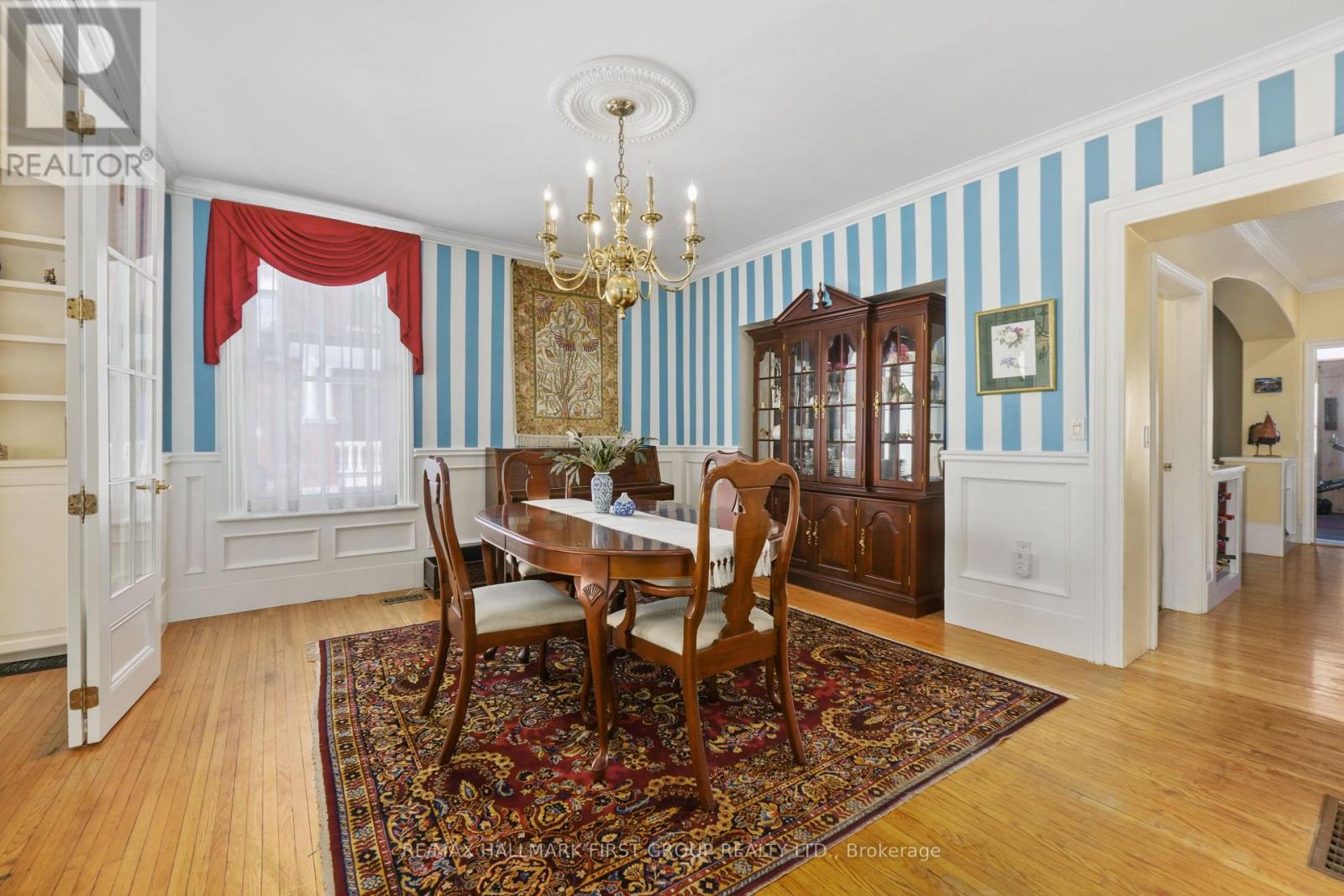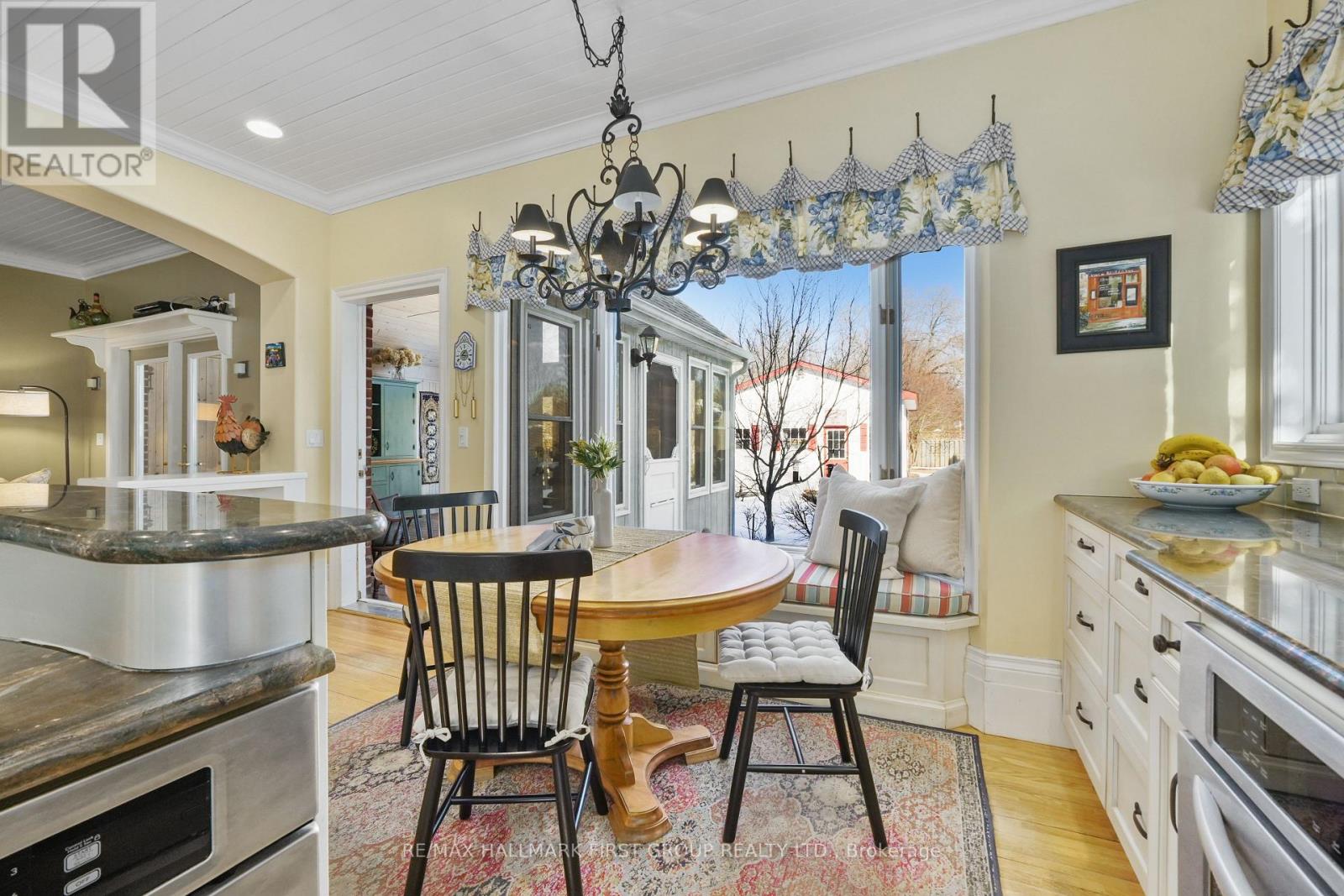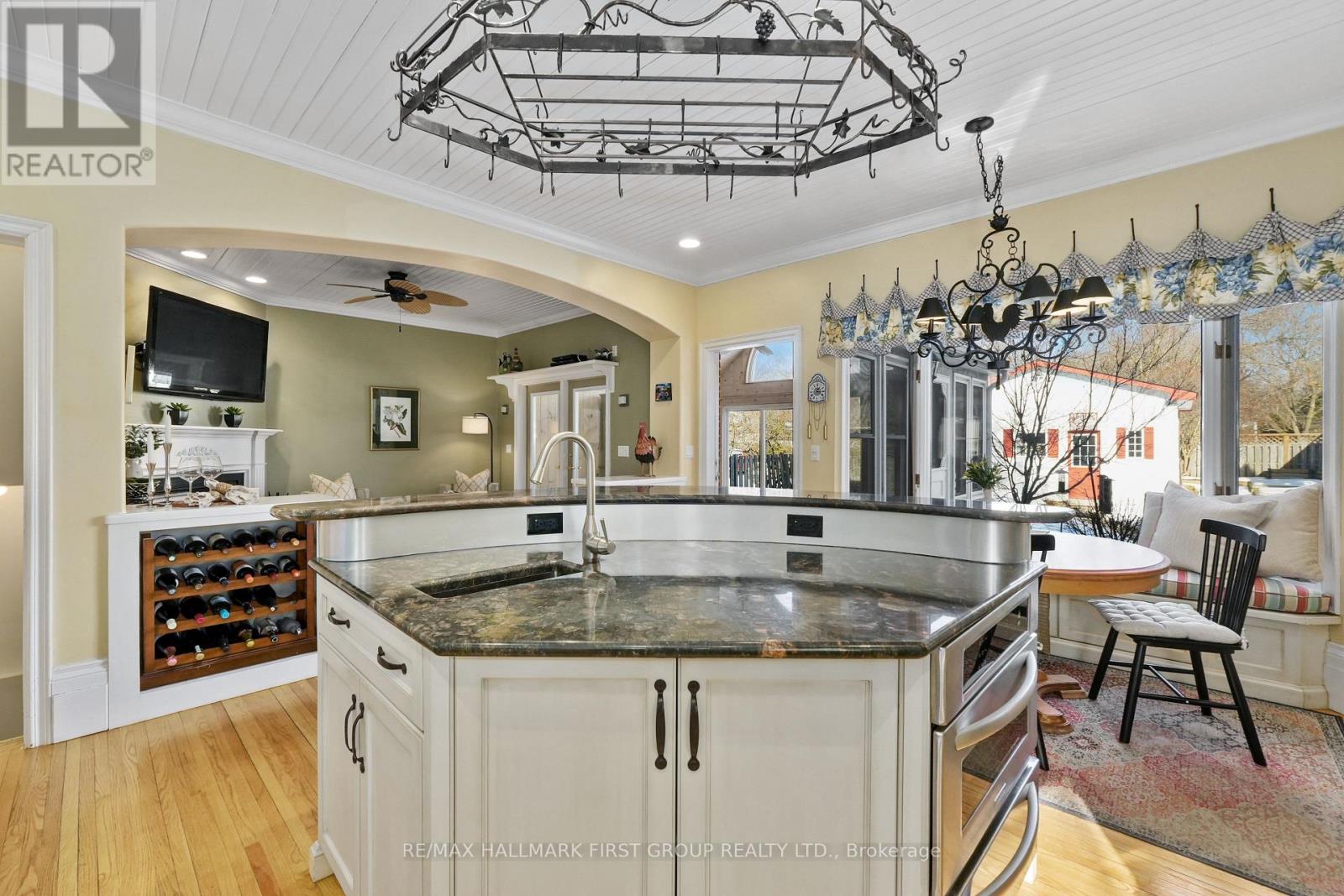 The best of both worlds, modern convenience and historic character, come together in this impeccably maintained home just steps from Cobourg Beach. Rich with original charm, the home showcases beautiful period details including extra-wide trim and baseboards, crown and cove moulding, and thoughtfully preserved architectural features throughout. French doors open into a sun-filled living room framed by a wall of windows. A gas fireplace with an intricate mantle creates a striking focal point, complemented by built-in shelving and classic wall sconces. The spacious dining room is ideal for gatherings, featuring a large window, elegant wainscotting, ceiling coin, and glass doors that create an intimate setting for formal dining. The open-concept kitchen and family room form the heart of the home. The modern kitchen features stainless steel appliances, recessed lighting, two sinks, a large island, and generous cabinet and counter space. A bright breakfast area with a bay window and built-in window seating offers a cozy place to start the day. The adjoining family room features an arched entry, fireplace, and walkout to a spectacular sunroom with a wood-clad cathedral ceiling, exposed beams, skylights, and direct access to the back deck. A main floor powder room with an intricate stained glass window and a convenient laundry room complete this level. The second floor offers a spacious primary bedroom with a charming reading or dressing nook, dual closets, and a private ensuite featuring a glass shower enclosure and large frosted window. Three additional bedrooms and a full bathroom with skylight and double vanity provide comfortable space for family and guests. The lower level includes a recreation room and office area, adding flexibility for work or play. Outside, the fully fenced backyard features landscaped garden beds and a stone path leading to the garage. Located moments from downtown Cobourg amenities, the waterfront, schools, and easy access to Highway 401. (id:4555)