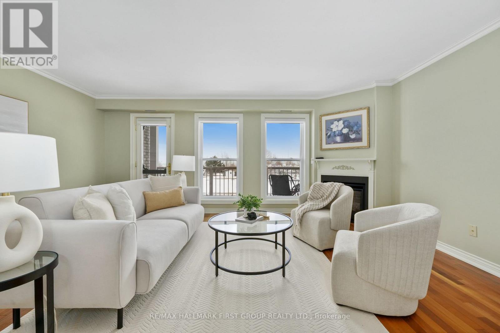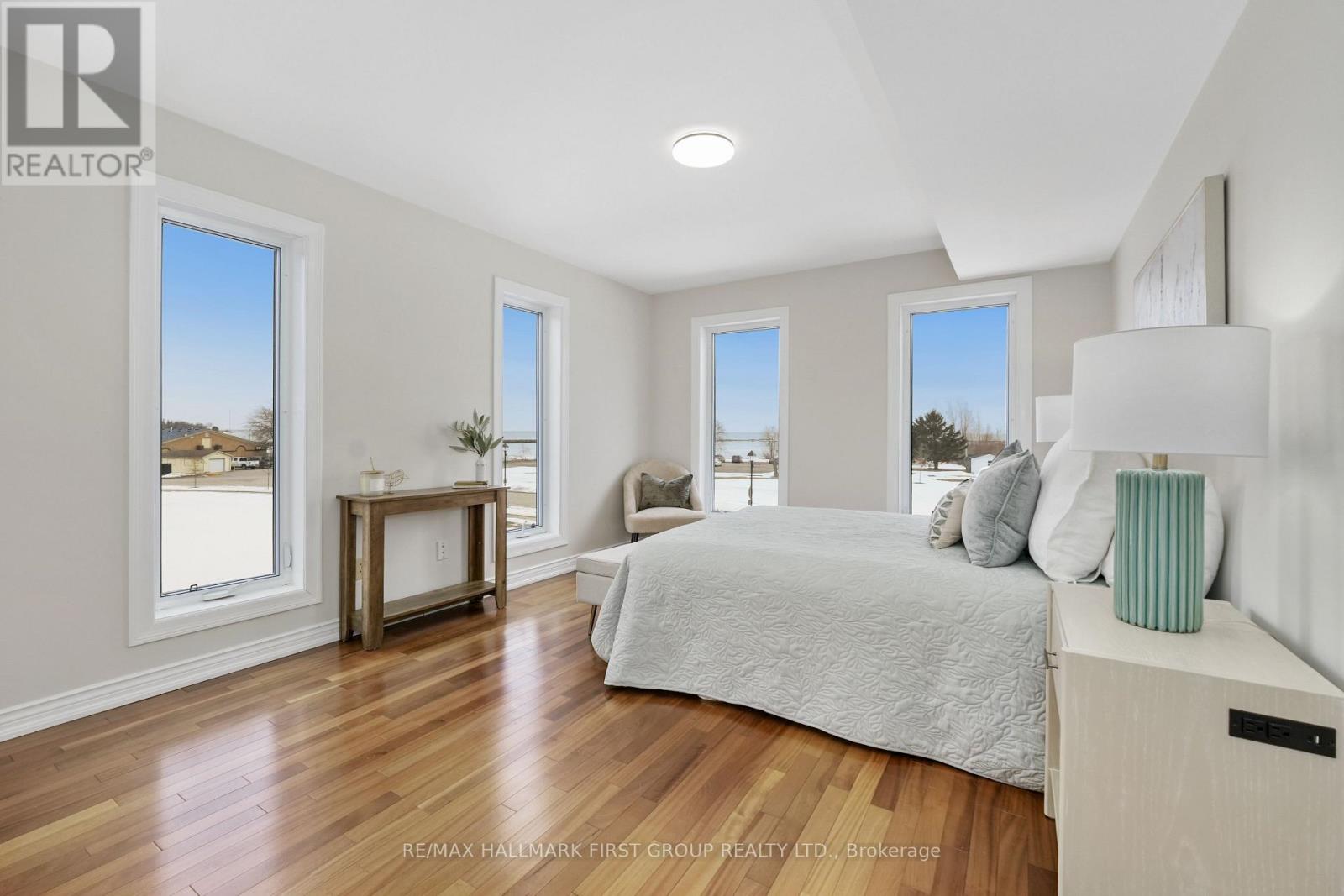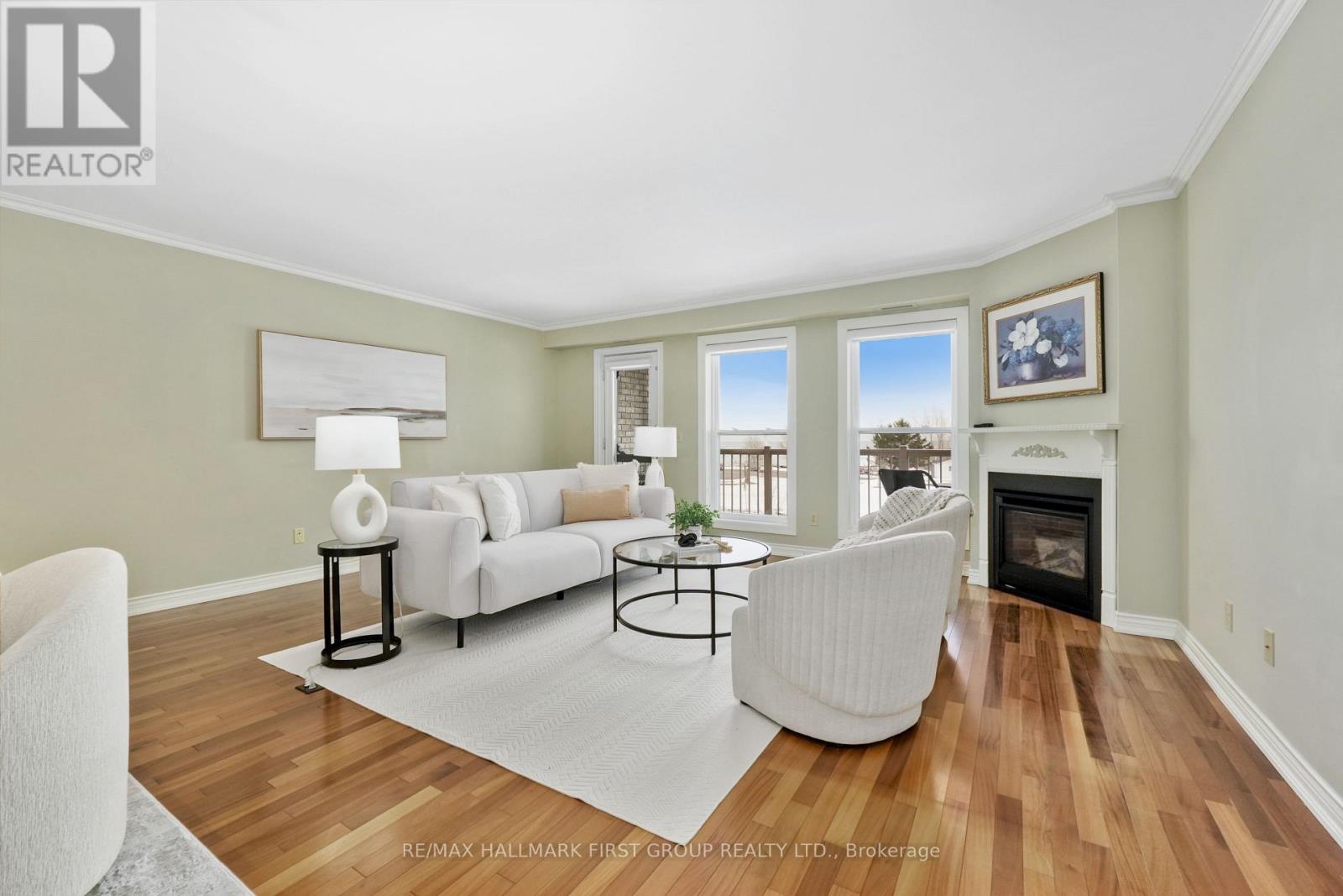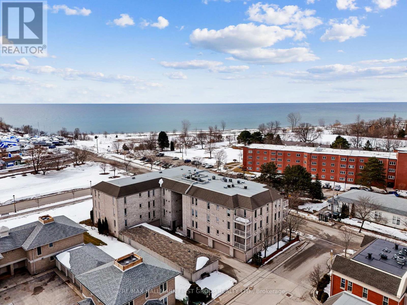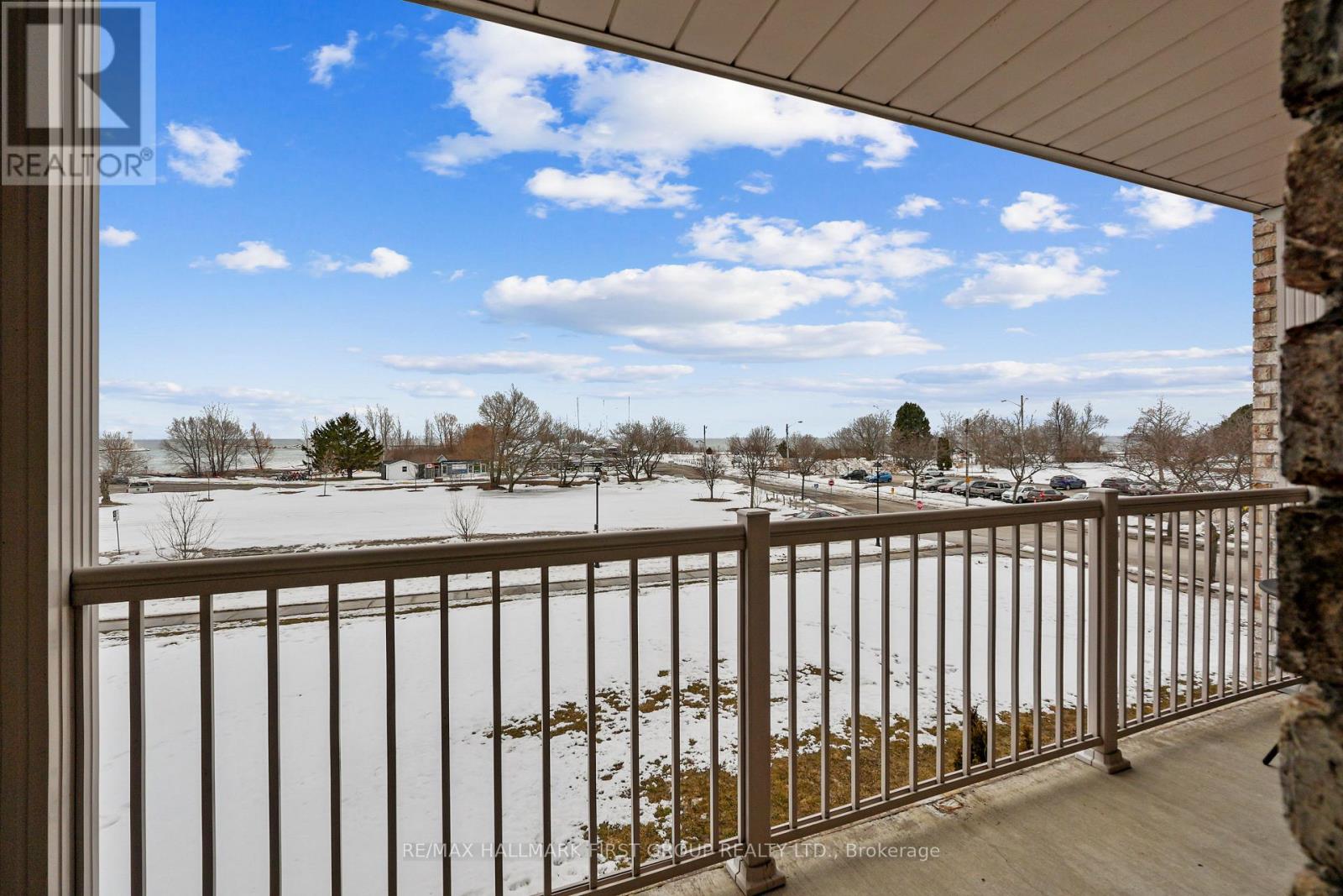 Waterfront living with breathtaking views of Lake Ontario and over 1,350 square feet of bright, comfortable space. This two-bedroom condo showcases full waterfront views and an open living and dining area featuring a carpet-free layout, crown moulding, a cozy fireplace, and a walkout to a private balcony overlooking the water. The kitchen is both functional and inviting, complete with a window over the sink, ample counter and cabinet space, and matching appliances. The spacious primary bedroom is a peaceful retreat, featuring multiple oversized windows that capture the stunning waterfront views, an incredible way to start each morning, and a private ensuite bathroom. A guest bedroom and full guest bathroom provide a comfortable space for visitors. In-suite laundry adds everyday convenience. Step outside to enjoy the patio with beautiful views of Lake Ontario. Located just steps from downtown amenities, the marina, and Cobourg Beach, with easy access to Highway 401, this condo offers stylish, carefree coastal living in an unbeatable location. (id:4555)