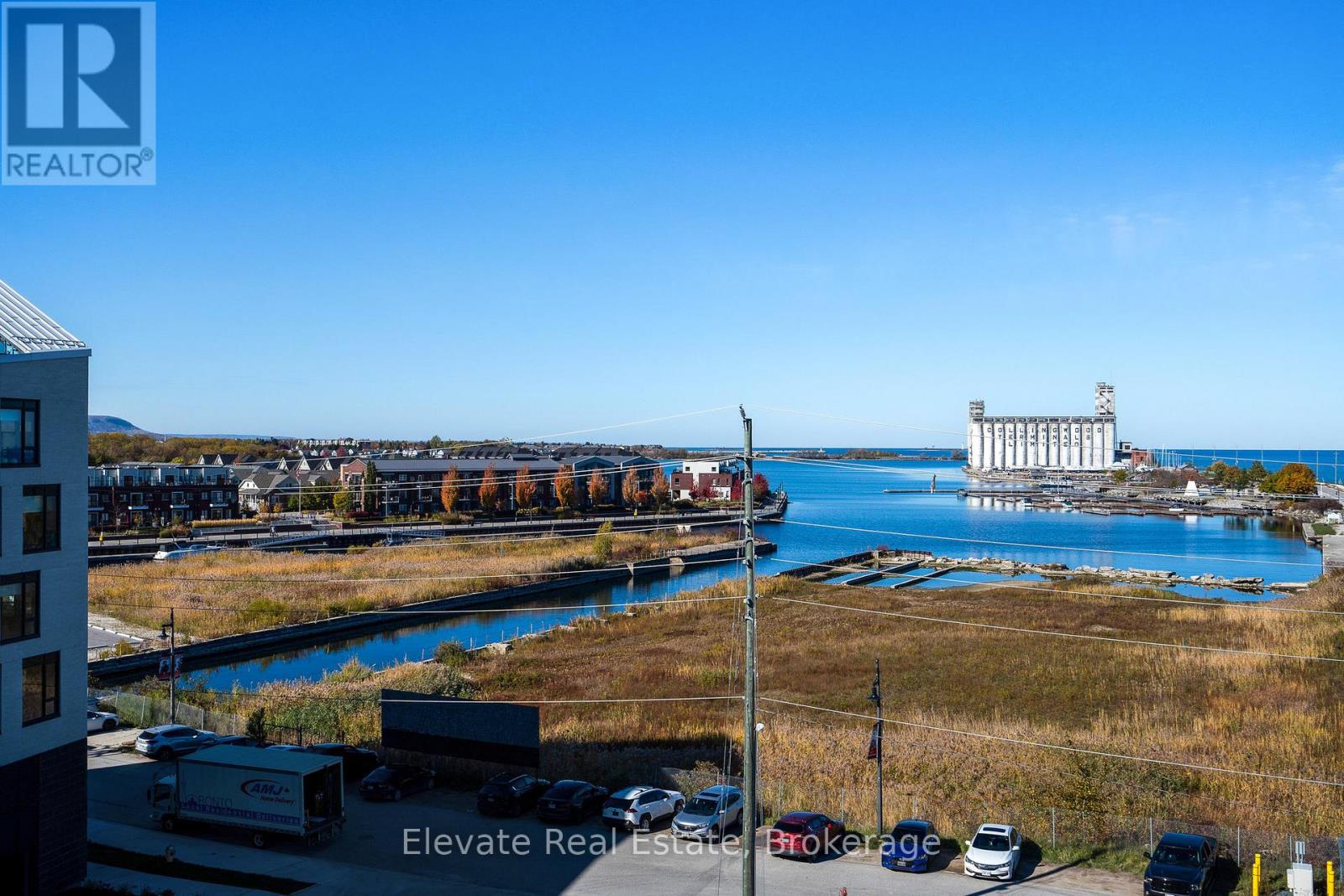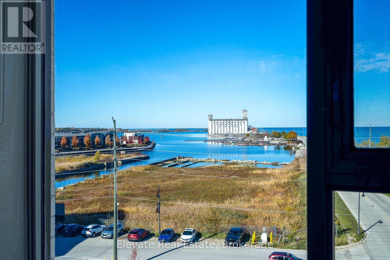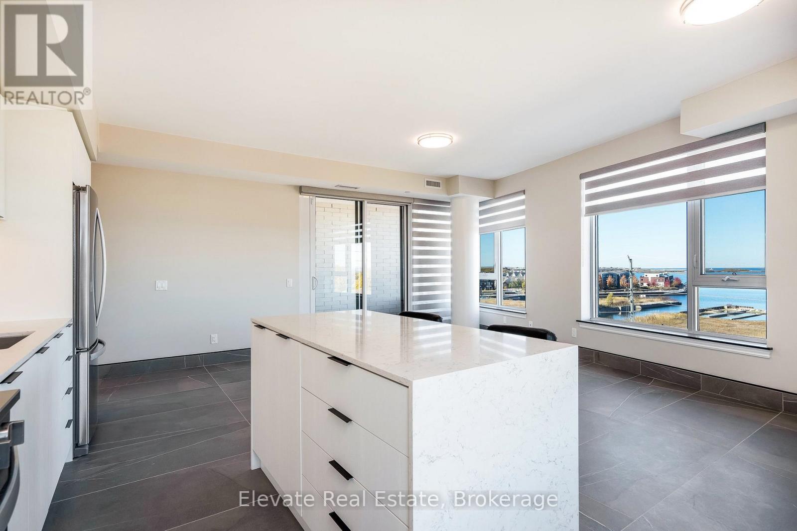 Experience refined luxury at Harbour House, Collingwood's most anticipated new waterfront residence. This brand-new fully upgraded corner suite showcases uninterrupted views of Georgian Bay, the historic Collingwood Terminals, and the Blue Mountain Escarpment. Offering 930 sq. ft. of elegant living space plus a 100 sq. ft. balcony, this 2-bedroom, 2-bath suite blends modern coastal design with exquisite craftsmanship. Features include 9-ft ceilings, a quartz waterfall island with matching backsplash, 2'x 3' stone tile flooring, custom built-ins, marble window sills, zebra blinds, a hidden dishwasher, and an integrated security system. Every element has been thoughtfully curated for the discerning resident seeking comfort, sophistication, and effortless style. Enjoy resort-inspired amenities including a fitness studio, guest suites, secure fobbed entry, heated underground parking, and a private storage locker. This professionally managed suite offers an elevated, worry free living experience for refined tenants. The building's Scandinavian-inspired architecture captures the essence of Collingwood's four-season lifestyle - where nature, design, and convenience meet. Located steps from fine dining, boutiques, trails, and the waterfront, and minutes from Blue Mountain, golf courses, and beaches, this is Collingwood's premier address for executive living. Perfect for professionals, retirees, or anyone seeking a sophisticated home base in Ontario's most vibrant four-season destination. (id:4555)