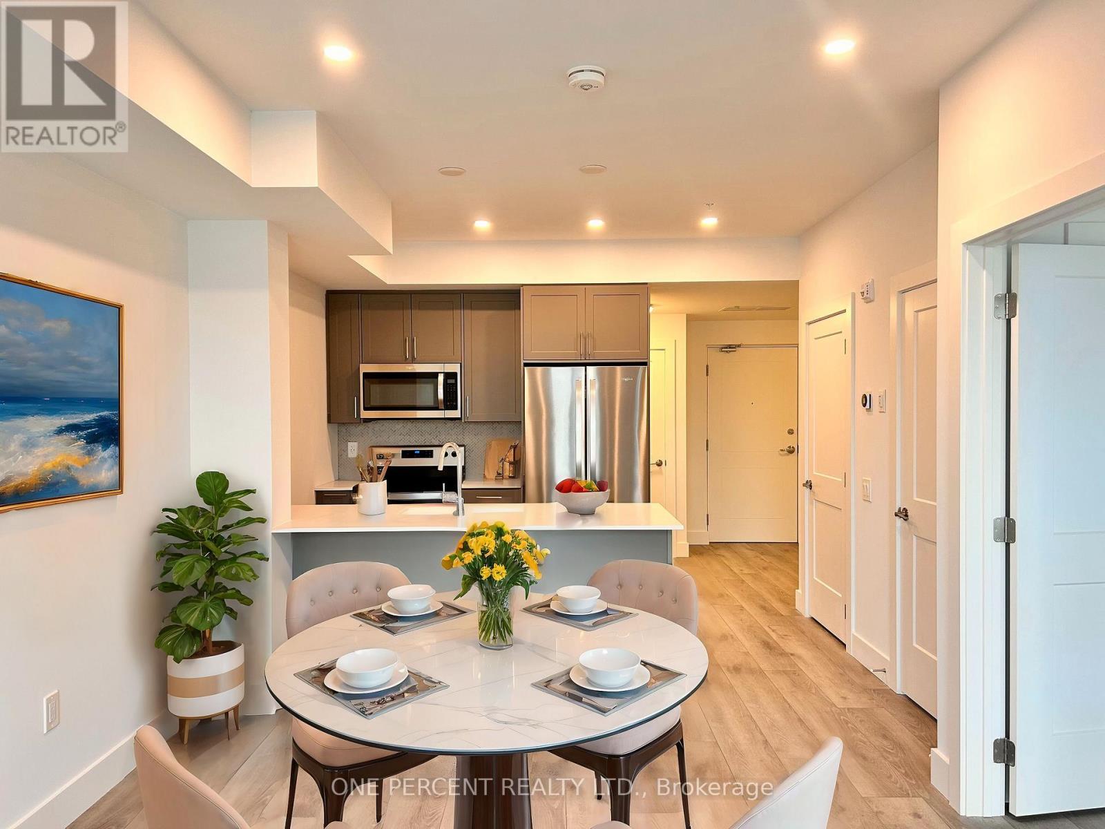 Discover the Perfect Blend of Luxury and Lifestyle. This rare ONE BEDROOM PLUS DEN condo offers exceptional value and a chance to embrace resort-style living in the heart of Collingwood. With 775 square feet of modern, open-concept design, this unit is thoughtfully crafted to provide both comfort and style. High-end finishes, including quartz countertops and stainless steel appliances, create a kitchen that any home chef will appreciate. The bright, south/east-facing views fill the living space with natural light, while the spacious walkout balcony is an inviting retreat for morning coffee or evening relaxation. The primary bedroom features a Jack-and-Jill 4-piece ensuite, offering convenience and privacy. The unit also includes a dedicated underground parking space, ensuring your vehicle remains protected and accessible year-round.This condo offers more than just a home its a lifestyle opportunity with amenities designed to enhance your day-to-day living. Entertain guests on the stunning rooftop terrace, complete with barbecues and breathtaking views of the nearby ski hills. Stay active with access to an indoor pool, a fully equipped gym,and recreational spaces including a golf simulator, putting green, billiards room, and games room. Located just minutes from your front door, Collingwoods vibrant outdoor lifestyle awaits. Enjoy skiing, scenic trails,hiking, and pristine beaches, along with world-class golf courses and opportunities for kayaking and boating. This property is perfect for those seeking a full-time residence or a weekend retreat. With flexible closing date options, this condo makes it easier than ever to step into your dream property. Schedule your showing today and discover everything this exceptional home and its location have to offer. Some photos have been virtually staged. (id:4555)